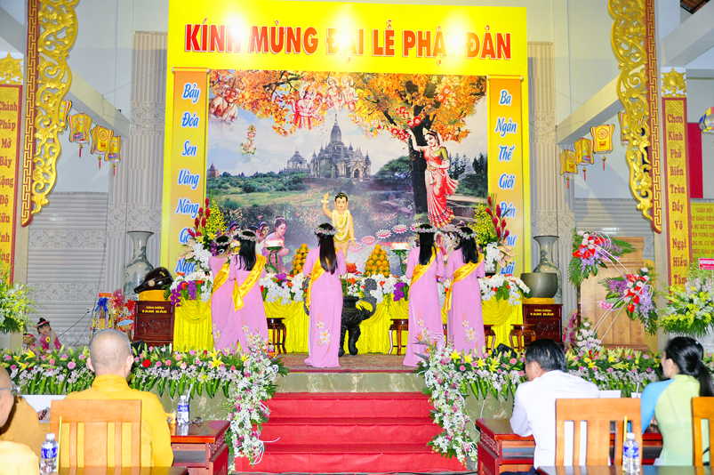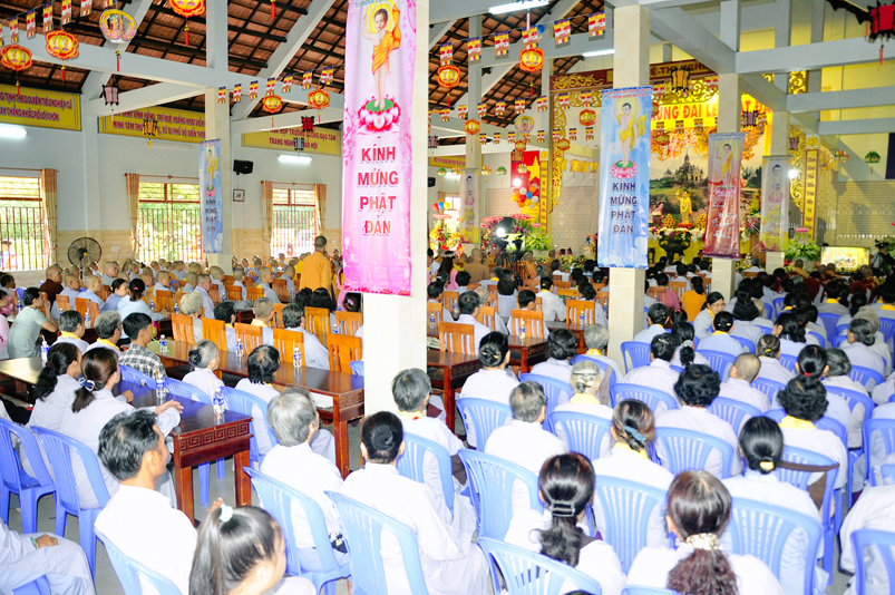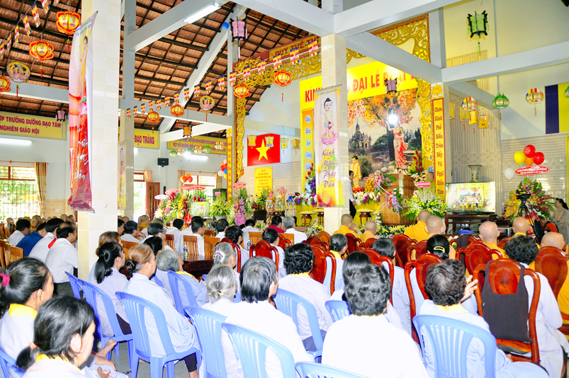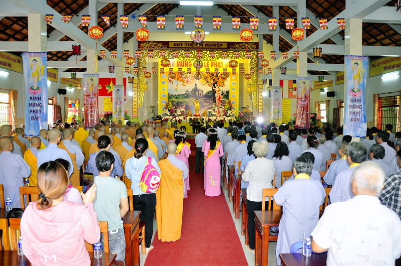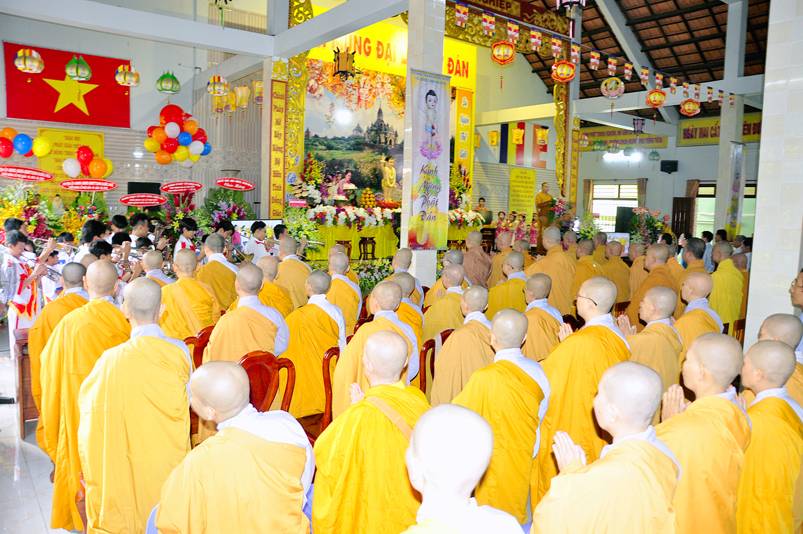 Từng hồi chuông trống Bát-nhã trầm hùng vang dội, buổi lễ Kính mừng Phật đản chính thức bắt đầu. Sau các phần nghi thức chào Quốc kỳ, Đạo kỳ, Ban tổ chức cung thỉnh HT. Thích Minh Thiện – Trưởng Ban Trị sự GHPGVN tỉnh Long An trân trọng tuyên đọc Thông điệp Phật đản PL. 2562 của Đức Pháp chủ GHPGVN. Nhân mùa Phật Đản, Đức Pháp chủ đã có thông điệp kính nhớ ân đức của Từ phụ Bổn Sư Thích Ca và ân cần nhắc nhở chư Tôn đức Tăng Ni chuyên cần tu tập, noi theo gương hạnh của bậc Thầy cao cả cùng nhau đoàn kết sách tấn tu hành, Giới luật nghiêm minh, Trưởng dưỡng Đạo tâm, Trang nghiêm Giáo hội.