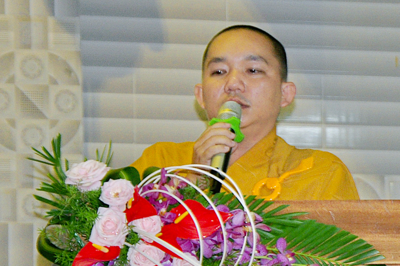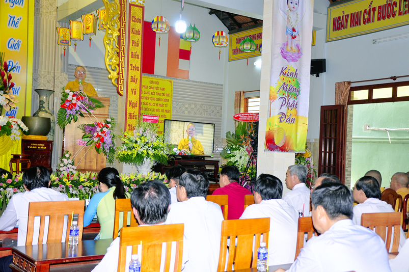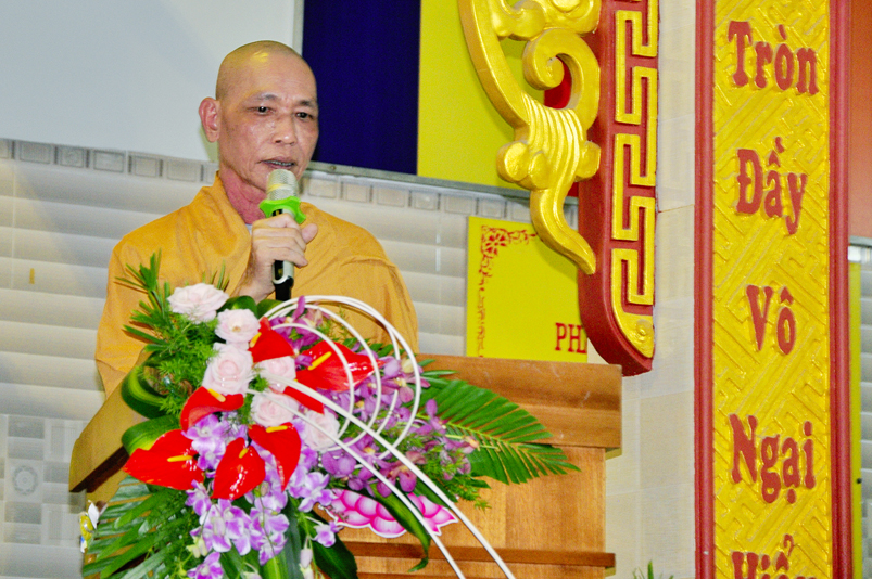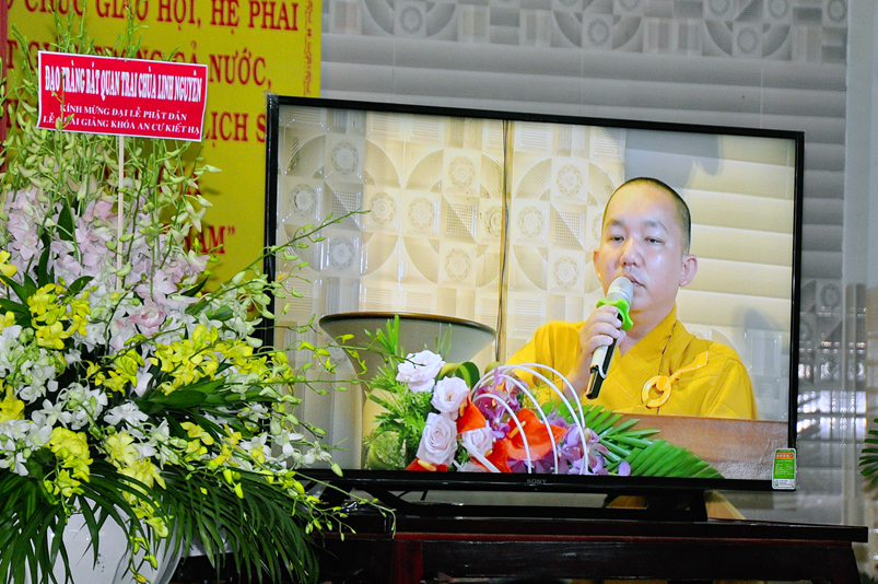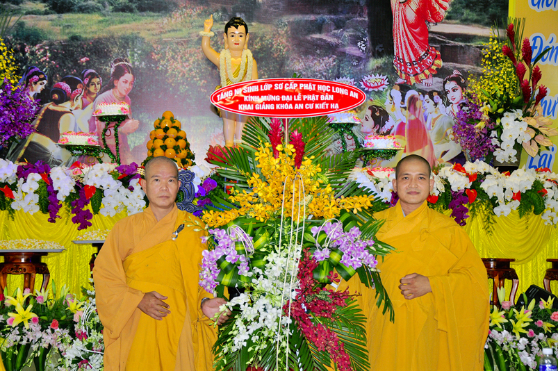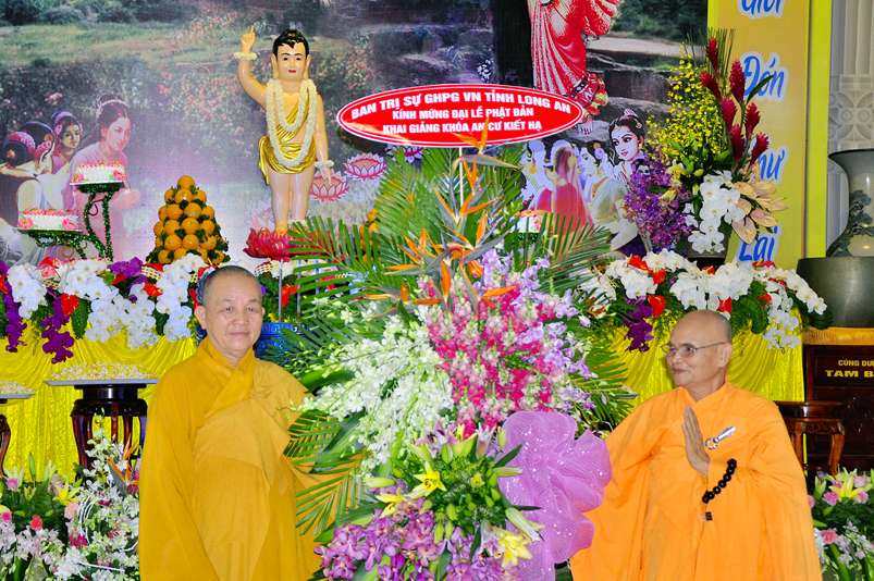 Với niềm hoan hỷ vô biên, Ban tổ chức cung thỉnh Hòa thượng Thích Thiện Huệ – chứng minh BTS GHPGVN tỉnh Long An ban lời đạo từ cho buổi lễ. Hòa thượng mong rằng Chư Tôn đức Ban Chức sự trường hạ huyện nên quan tâm, tạo điều kiện cho Tăng Ni sinh lớp Sơ cấp Phật học Long An được tu học tại 2 điểm an cư kiết hạ chùa Pháp Minh dành cho Tăng sinh và chùa Long Thành dành cho Ni sinh. Hòa thượng Chứng minh thiết nghĩ “cần đạo tạo thế hệ Tăng Ni làm sao có đủ tài, đức, oai nghi cốt cách trở thành vị tu sĩ chân chính để tiếp bước truyền thừa mạng mạch Phật Pháp. Và đồng thời, nhân ngày kính mừng Đức Từ phụ Thích Ca Mâu Ni đản sinh, Ngài nhấn mạnh rằng: “Giáo hội cấp tỉnh cũng như huyện nhà cần quan tâm, hướng dẫn tín đồ Phật tử hiểu rõ và có niềm tin đúng đắn hơn về Phật giáo. Chúng ta không nên để những hình thức tín ngưỡng có tư tưởng sai lệch mang hình ảnh Tôn giáo Phật giáo hoạt động không đúng với Hiến chương Giáo hội, Pháp luật nhà nước quý định hiện hành”.