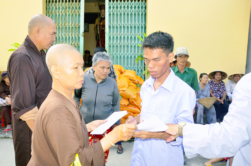 Nhân buổi lễ này, Ban trị sự phát hơn 300 phần quà tổng trị giá hơn 90 triệu đồng cho bà con có hoàn cảnh khó khăn.