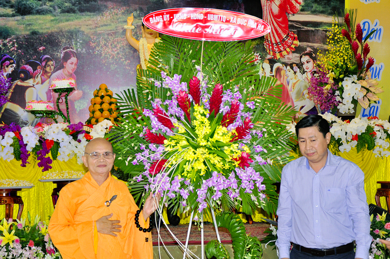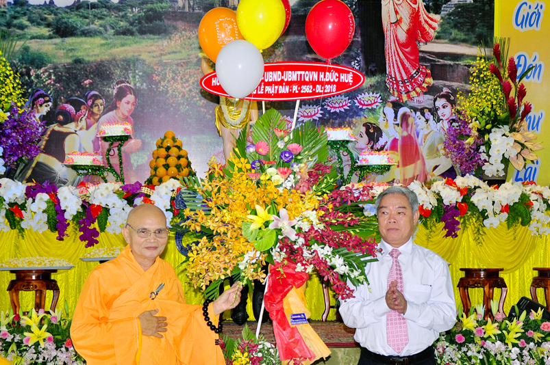Chào mừng buổi lễ thiêng liêng đầy ý nghĩa nhân văn này, Quý vị lãnh đạo Tỉnh ủy – Hội đồng nhân dân- Ủy ban Nhân dân- Ủy ban Mặt trận Tổ quốc VN tỉnh Long An cũng đã kính thư chúc mừng Đại lễ, chia sẻ niềm vui cùng chư Tăng Ni Ban Trị sự Phật giáo liên huyện Đức Hòa – Đức Huệ, do Ông Lê Văn Tư tuyên đọc.