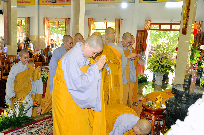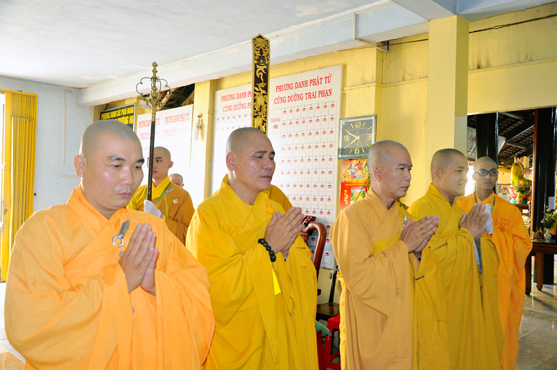 Vào lúc 7 giờ 00’, cung thỉnh Chư tôn đức Tăng Ni và hơn 300 Phật tử đồng về tham dự.