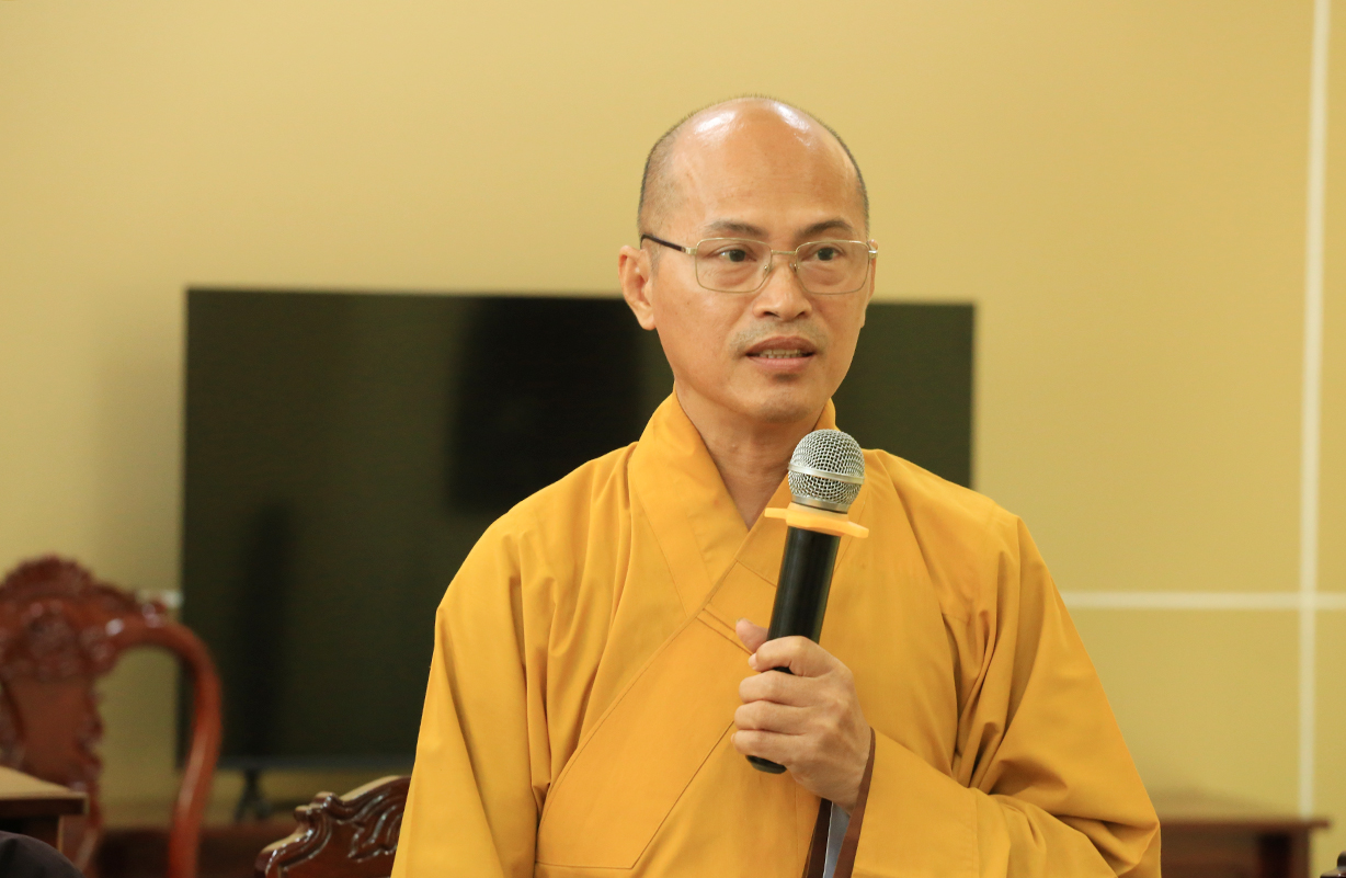 ĐĐ. Thích Huệ Thông – Trưởng ban Thông tin Truyền thông GHPGVN tỉnh đã trình bày ý kiến chỉ đạo của chư tôn đức tại phiên họp Ban Thông tin Truyền thông TW với các tỉnh thành phía Nam về công tác truyền thông trong thời điểm hiện tại.