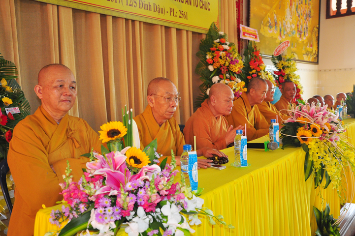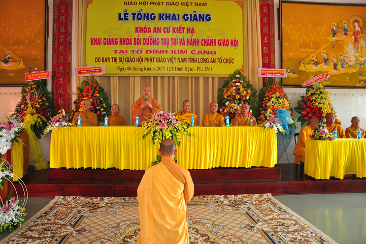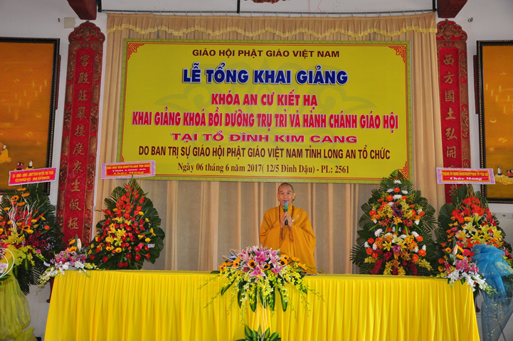 Sau nghi thức niệm Phật cầu gia hộ, Đại đức Thích Lệ Trí báo cáo qua tình hình an cư tu tập của Tăng, Ni Phật giáo tỉnh Long An, những thành tựu đem lại trong suốt 22 khóa an cư kiết hạ và kế hoạch tổ chức Khóa An cư Kiết hạ, Khóa Bồi dưỡng nghiệp vụ trụ trì, Khóa nghiệp vụ hành chính trong năm 2017.