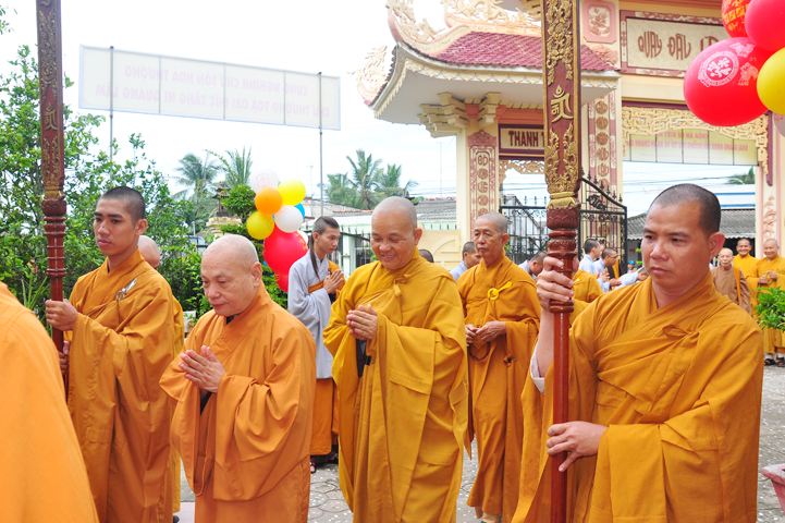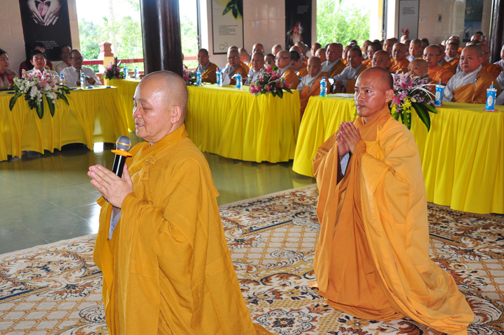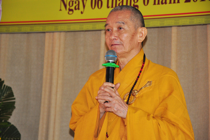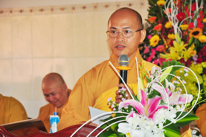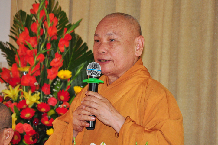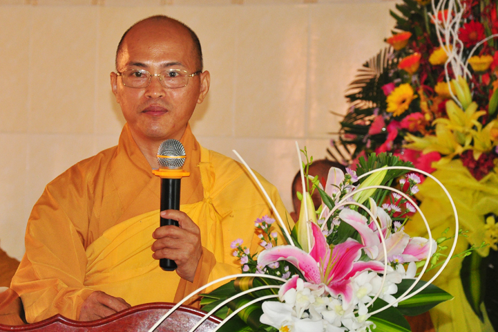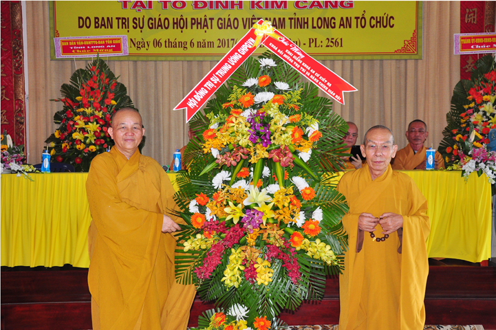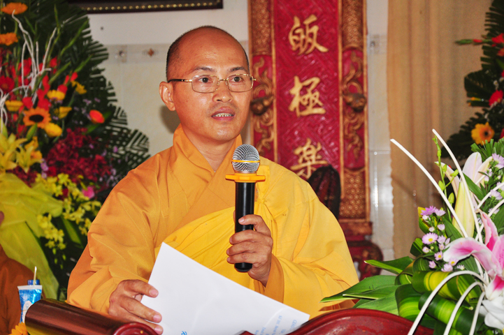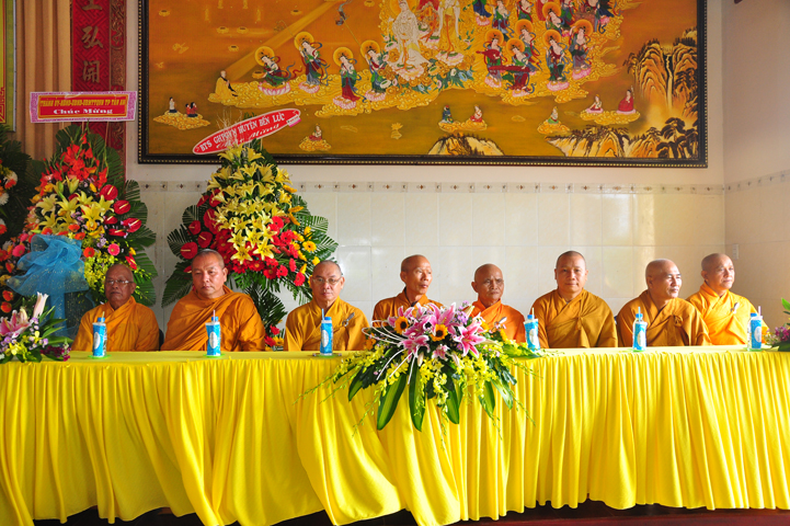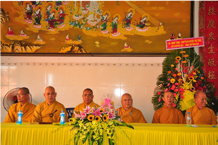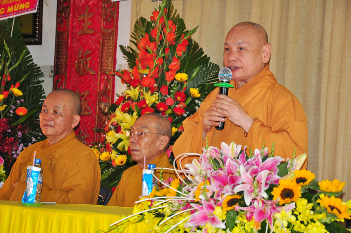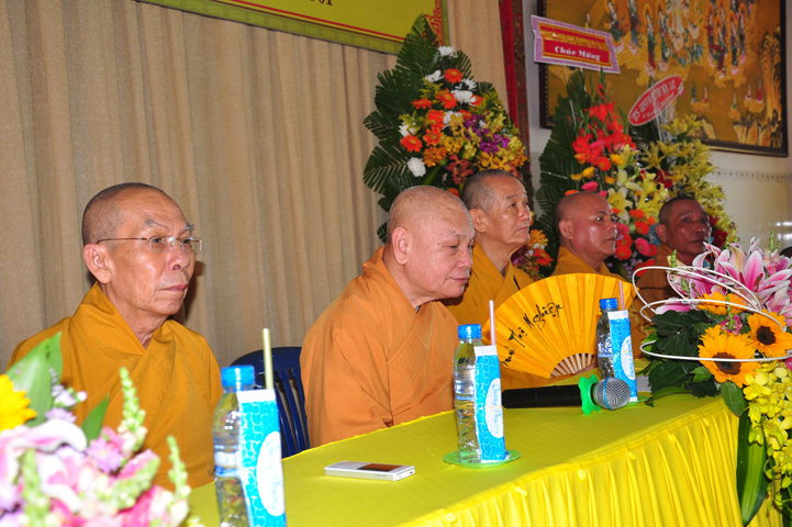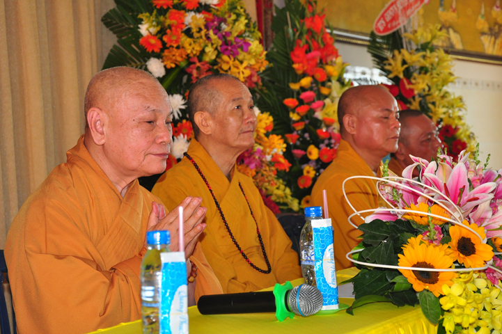 Được sự ân cần ban đạo từ của Hòa thượng Chủ tịch và sự quang lâm chứng minh chư Tôn giáo phẩm TW, thay mặt đại chúng, Hòa thượng Thích Minh Thiện cảm kích đã kính lời tri ân đến Hòa thượng Chủ tịch, chư Tôn giáo phẩm TW , quý vị khách quý các cấp lãnh đạo tỉnh, huyện, thị, thành phố Tân An đã dành nhiều thời gian quý báu đến tham dự chúc mừng buổi lễ thành công tốt đẹp.