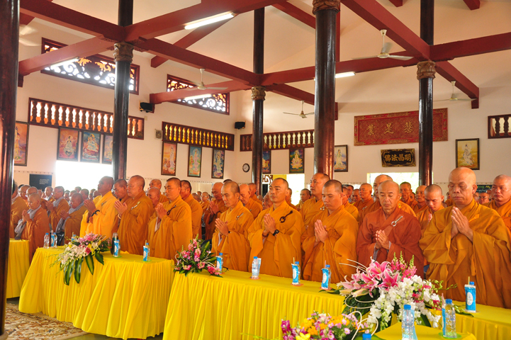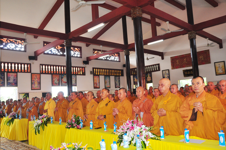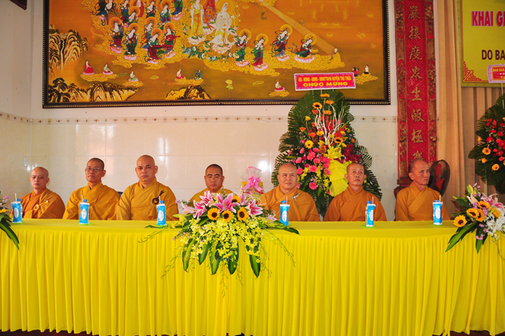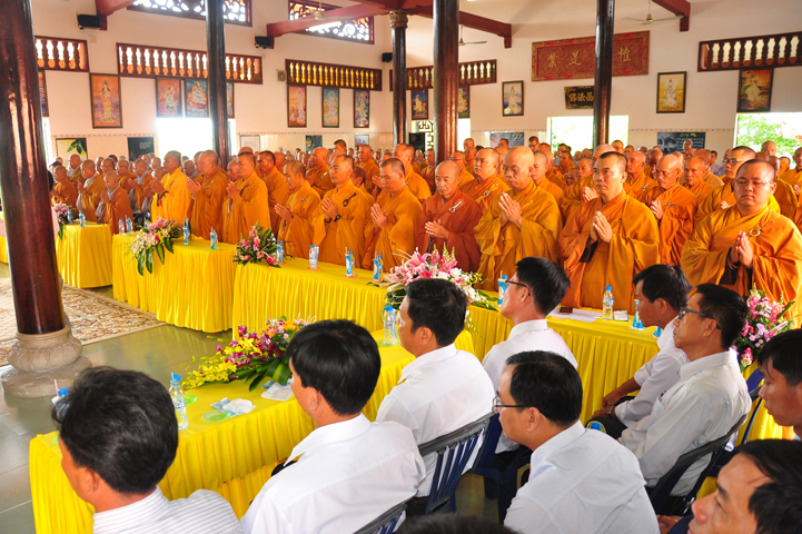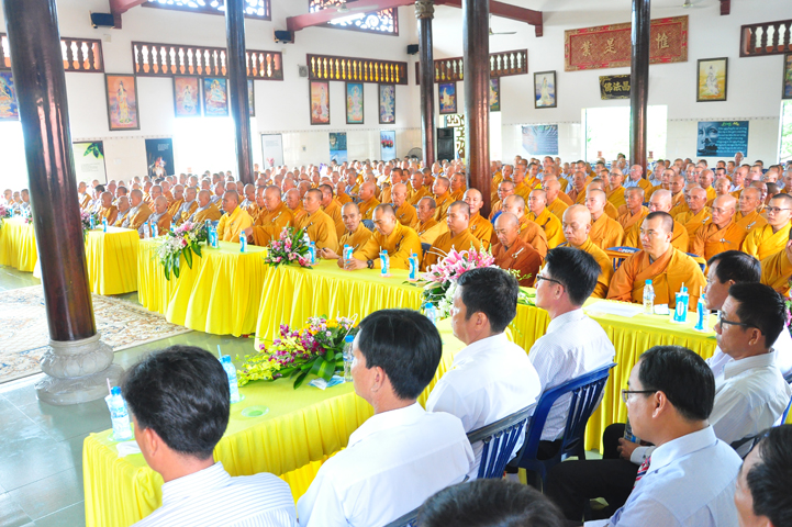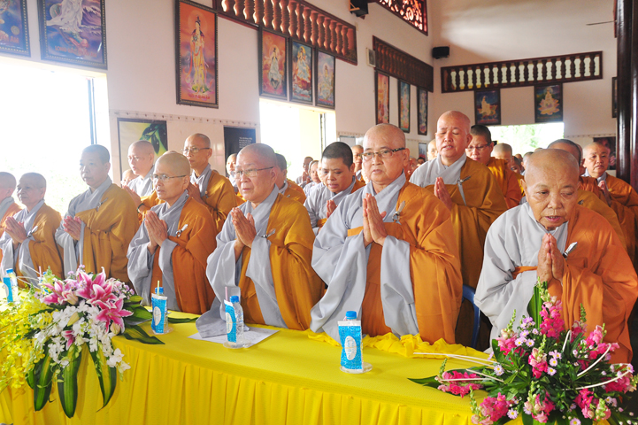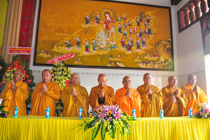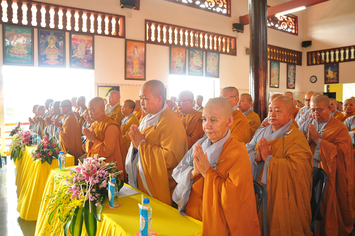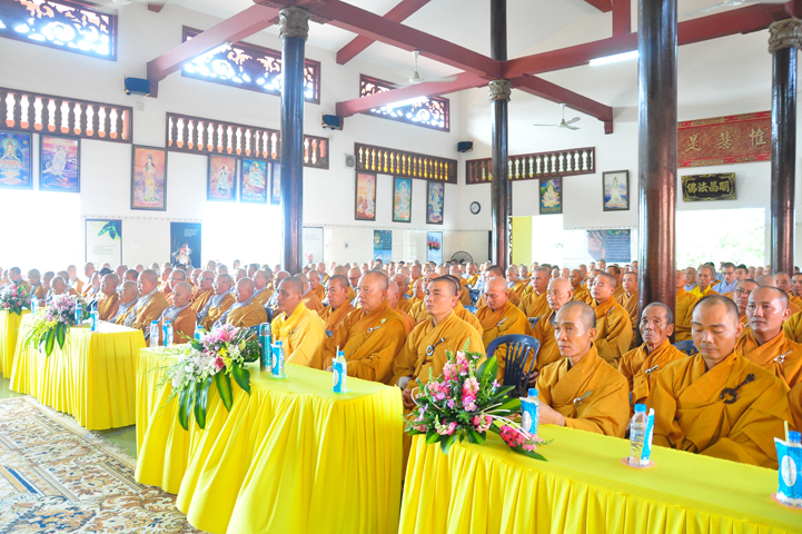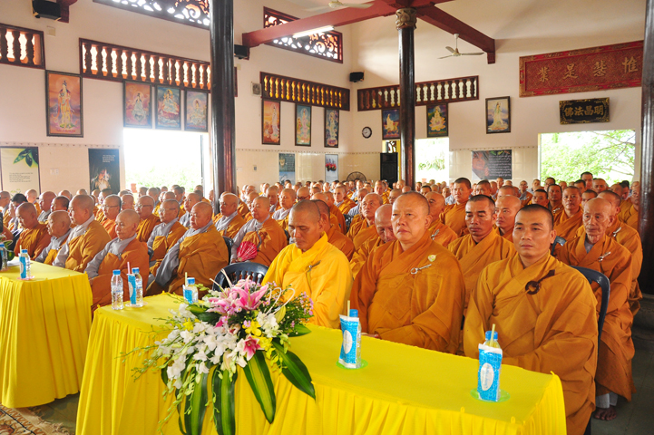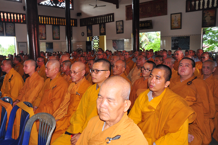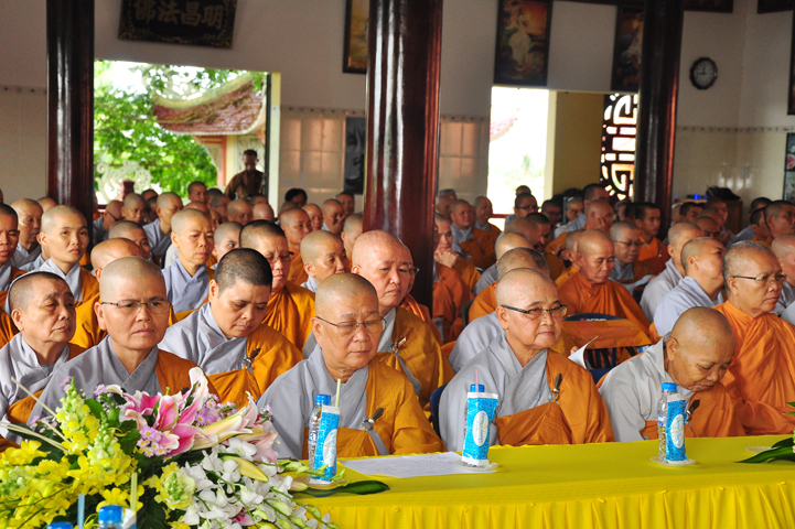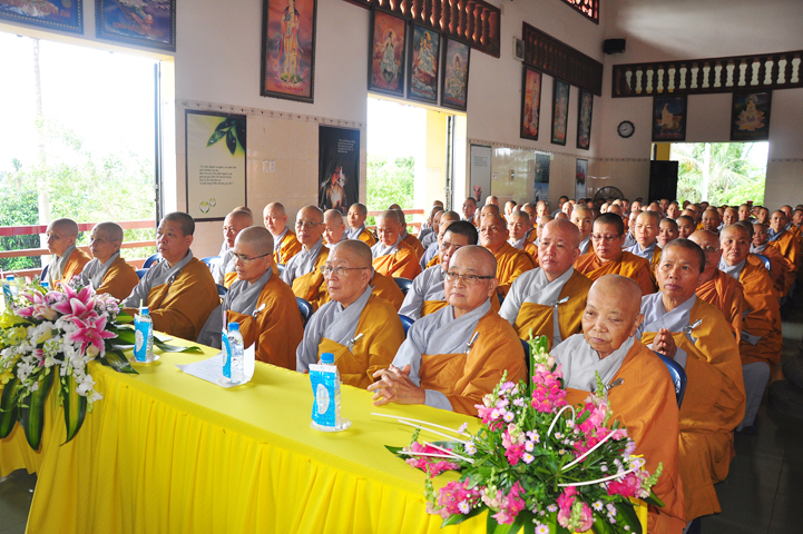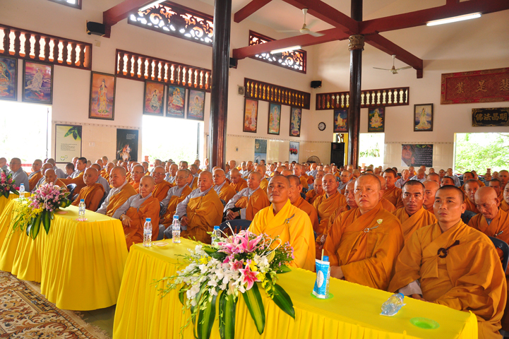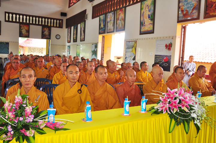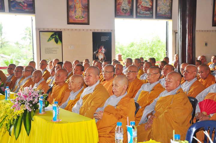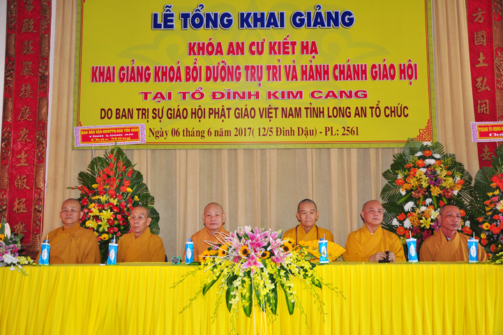 Chứng minh tham dự buổi lễ có chư tôn đức giáo phẩm: HT. Thích Thiện Nhơn- Chủ tịch Hội đồng trị sự Trung ương GHPGVN; HT. Thích Thiện Đức- Ủy viên TT HĐTS TW, Phó trưởng Ban kiểm soát trung ương GHPGVN; HT. Thích Thanh Hùng– Ủy viên TT HĐTS, Phó ban thường trực Ban Hướng dẫn Phật tử TW, Phó ban Hoằng pháp TW; HT Thích Tấn Đạt – Ủy viên TT HĐTS, Phó ban thường trực Ban Hoằng pháp TW, Phó văn phòng 2 TW, Phó ban thường trực Ban tổ chức 2 lớp đào tạo Cao – Trung cấp giảng sư thuộc Ban Hoằng pháp TW; HT Thích Thiện Huệ – Chứng minh BTS GHPGVN tỉnh Long An; HT Thích Minh Thiện – Ủy viên HĐTS, Phó ban Hoằng pháp TW kiêm trưởng Giảng sư đoàn Ban Hoằng pháp TW, Trưởng ban BTS GHPGVN tỉnh Long An cùng chư tôn đức trong thường trực Ban trị sự tỉnh, huyện, thị thành phố trong tỉnh và hơn 500 hành giả an cư về tham dự.