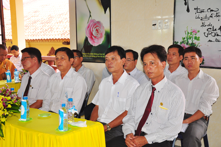 Về phía chính quyền có bà Phạm Ngọc Tiệp- Phó chủ tịch UBMTTQVN tỉnh Long An; Ông Nguyễn Hoàng Đạt- Phó phòng Dân tộc- Tôn giáo Ban Dân vận tỉnh Long An; Ông Nguyễn Thanh Tâm- Phó phòng nghiệp vụ Ban tôn giáo tỉnh Long An; Ông Nguyễn Văn Bên- Nguyên Phó giám đốc sở nội vụ- Trưởng ban Tôn giáo tỉnh Long An; Ông Phạm Văn Sự- Phó Bí thư huyện Uỷ huyện Thủ Thừa; Bà Lê Thị Hằng- Trưởng Ban Dân vận huyện Thủ Thừa; Ông Nguyễn Văn Hùng- Trưởng Ban Dân vận thành phố Tân An; Ông Nguyễn Hoài Phương- Phó phòng Nội vụ Tp. Tân An; Ông Nguyễn Văn Chính- Phó phòng Nội vụ huyện Cần Giuộc; Ông Nguyễn Thành Liêm- Chủ tịch UBMTTQVN xã Bình Thạnh cùng quý vị lãnh đạo cùng đi trong đoàn.