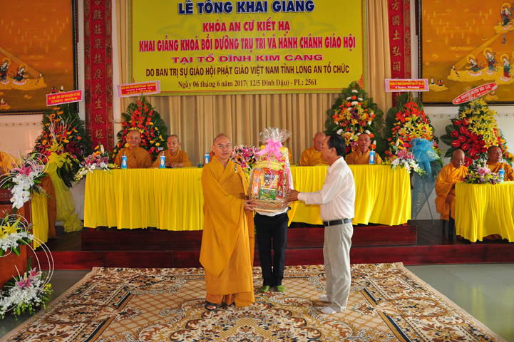 Trong buổi lễ ban tổ chức đón nhận nhiều lẳng hoa, phần quà từ Chư tôn đức trung ương Giáo hội, Chính Quyền sở tại trao tặng. Buổi lễ tổng khai giảng thành tựu tốt đẹp.