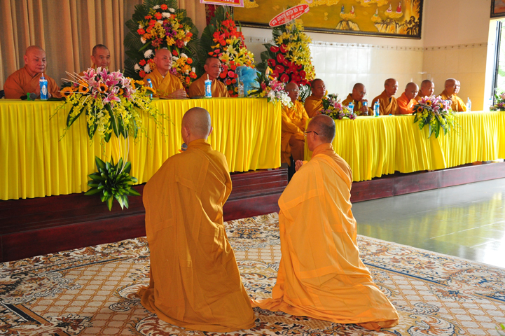 Tiếp theo đó, HT. Thích Minh Thiện đảnh lễ, cung thỉnh Hòa thượng Chủ tịch HĐTSTW, Hòa thượng Phó Chủ tịch thường trực kiêm Trưởng ban Tăng sự trung ương trong Ban chứng minh Khóa an cư kiết hạ, Khóa bồi dưỡng Trụ trì và Khóa hành chánh Giáo hội tỉnh Long An.