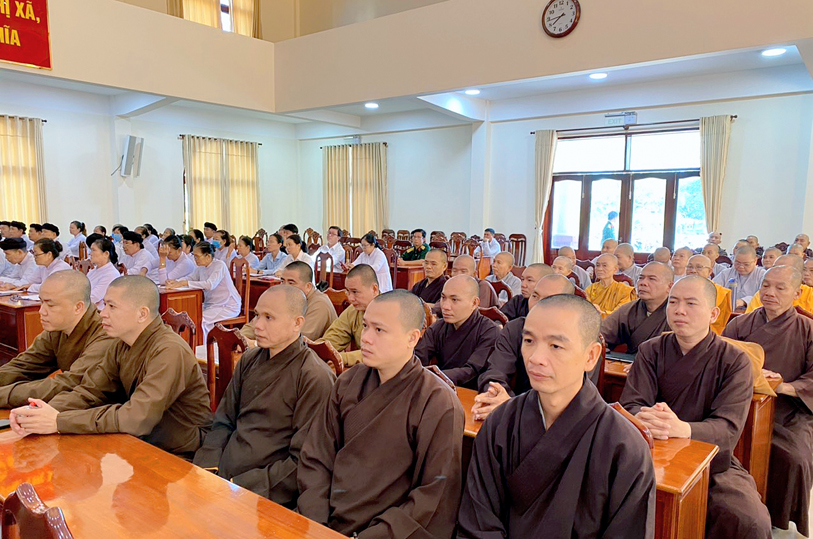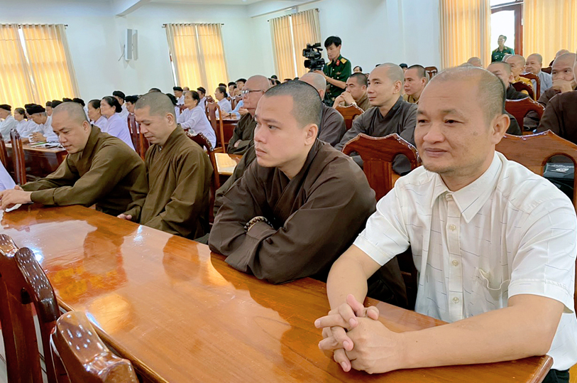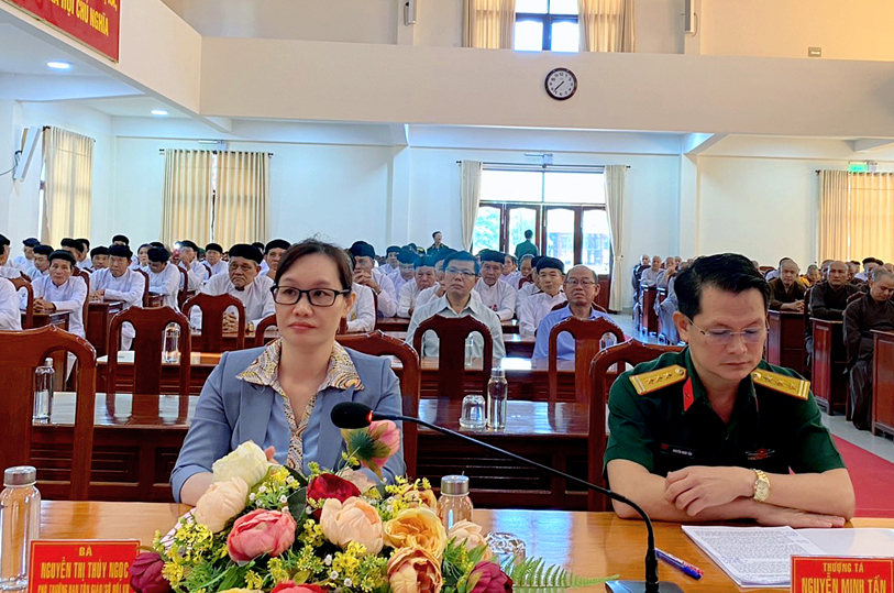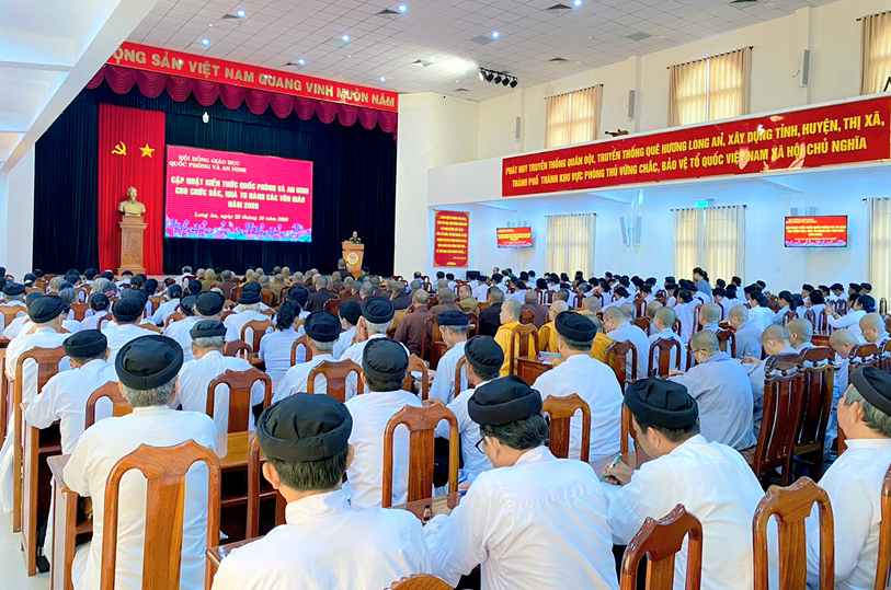 Phổ biến kiến thức Quốc phòng và an ninh cho các chức sắc, chức việc, nhà tu hành, Phật tử; thông tin tình hình, chủ trương, đường lối của Đảng, chính sách, pháp luật của Nhà nước, tình hình quốc phòng, an ninh, định hướng tư tưởng cho các chức sắc, chức việc, nhà tu hành, Phật tử hiểu, đồng thuận, chấp hành nghiêm các chủ trương, đường lối của Đảng; chính sách, pháp luật của Nhà nước.