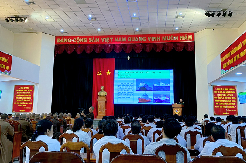 Trong buổi lễ ký kết, chư tôn đức Tăng Ni cùng các Tôn giáo bạn được Bộ CHHQS tỉnh chia sẻ các chuyên đề về kiến thức An ninh Quốc phòng như: “Cục diện mới trên biển đông đến nhiệm vụ bảo vệ tổ quốc Việt Nam XHCN hiện nay” để quý đại biểu hiểu rõ hơn tình hình an ninh quốc phòng về biển đông, tránh các thông tin xuyên tạc, sai sự thật v.v… Cùng nhau bảo vệ Tổ quốc trên mọi phương diện.