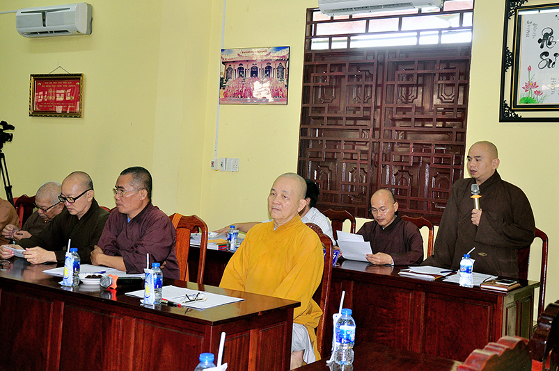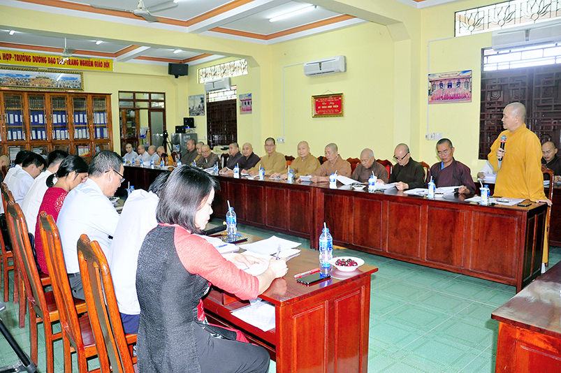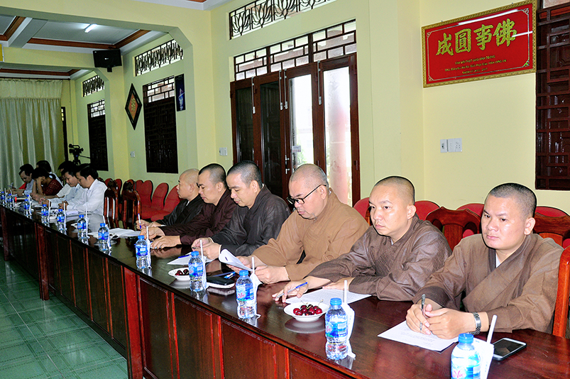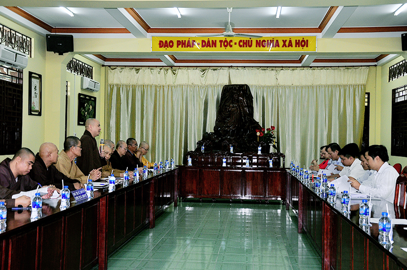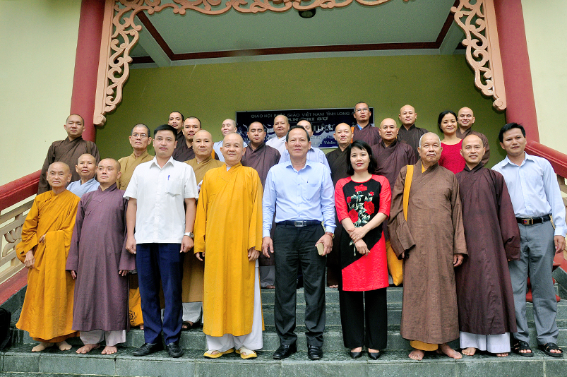 Hòa thượng Trưởng Ban trị sự GHPGVN tỉnh Long An phát biểu khái quát về sự hình thành và phát triển Phật giáo tại tỉnh nhà, qua đây bày tỏ sự vô cùng vinh dự và hoan hỷ được đón tiếp phái đoàn đại diện lãnh đạo Ban Tôn giáo chính phủ, cảm ơn sự quan tâm sâu sắc của Đảng và Nhà nước đối với Phật giáo cả nước và Phật giáo tỉnh Long An. Hòa thượng cảm kích lãnh đạo Chính quyền và khối Dân vận tỉnh nhà, ngay từ buổi ban đầu đã luôn tạo điều kiện thuận lợi cho các Tôn giáo chính thống trên địa bàn tỉnh Long An đoàn kết, cùng nhau phát triển tín đồ theo con đường chánh tin, xóa tan đi những hiềm khích, phân biệt và bài trừ mê tín dị đoan.