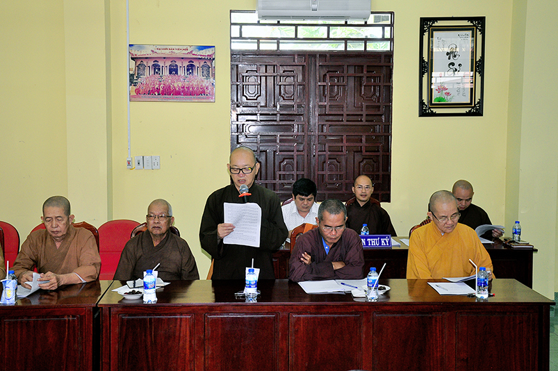 Hòa thượng trình bày về sự phát triển ổn định các tự viện của Giáo hội trên địa bàn tỉnh cùng với sự quan tâm sâu sắc đến các Tăng Ni đã thuyên chuyển và đang tham gia sinh hoạt trong Giáo hội cũng như sẽ quy hoạch cụ thể chặt chẽ đến Tăng Ni đang cư trú tại các huyện thị trên địa bàn tỉnh sinh hoạt đúng theo Luật tín ngưỡng Tôn giáo. Để Phật giáo Long An từng bước phát triển vững mạnh và ổn định hơn về mọi mặt. Ngài hoan hỷ khi Tăng Ni, Phật tử Phật giáo luôn ý thức cao mình là công dân của Đất nước có tìn ngưỡng Dân tộc là Phật giáo, đồng hành cùng Dân tộc, Phát huy truyền thống hộ quốc an dân, phụng đạo yêu nước mà Phật giáo đã vinh hạnh được Lãnh đạo Nhà nước ưu ái khen tặng. Hòa thượng nhắc lại lời dạy cao quý của vị Hòa thượng Chủ tịch đầu tiên GHPGVN “Những gì phục vụ cho Dân tộc chính là phục vụ cho Đạo pháp và những gì phục vụ cho Đạo pháp chính là phục vụ cho Dân tộc” và nhấn mạnh “dù Phật giáo có phát triển như thế nào đi chăng nữa dứt khoát phải là chỗ dựa đáng tin cậy của Đảng và Nhà nước”.