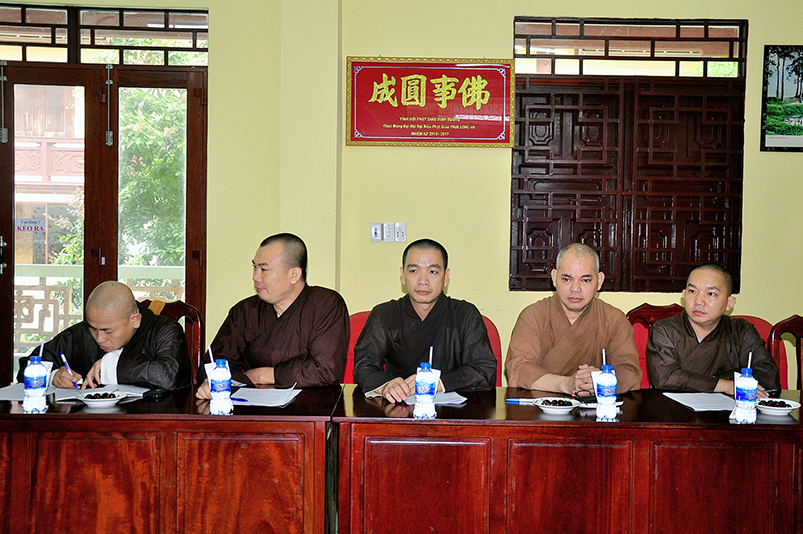 Đón tiếp phái đoàn có HT. Thích Minh Thiện- Ủy viên HĐTS, Phó Ban Hoằng Pháp GHPGVN- Trưởng Ban Trị Sự GHPGVN tỉnh Long An- Hiệu trưởng Trường Sơ-Trung cấp Phật Học tỉnh Long An; TT. Thích Quảng Tâm – Ủy viên HĐTS GHPGVN, Phó Thường trực BTSGHPGVN tỉnh Long An; cùng chư Tôn đức Thường trực BTS GHPGVN tỉnh.