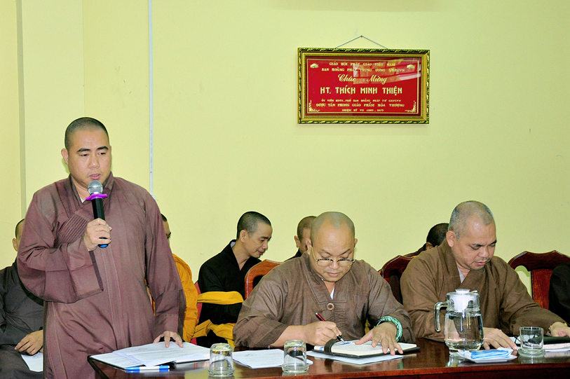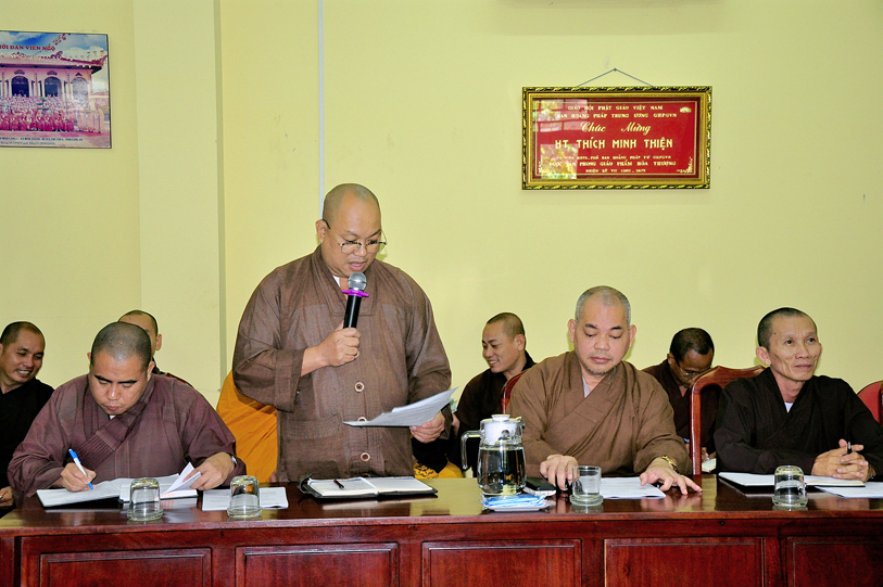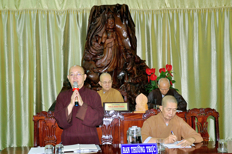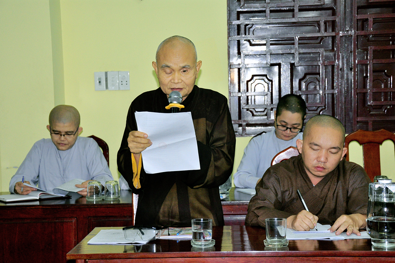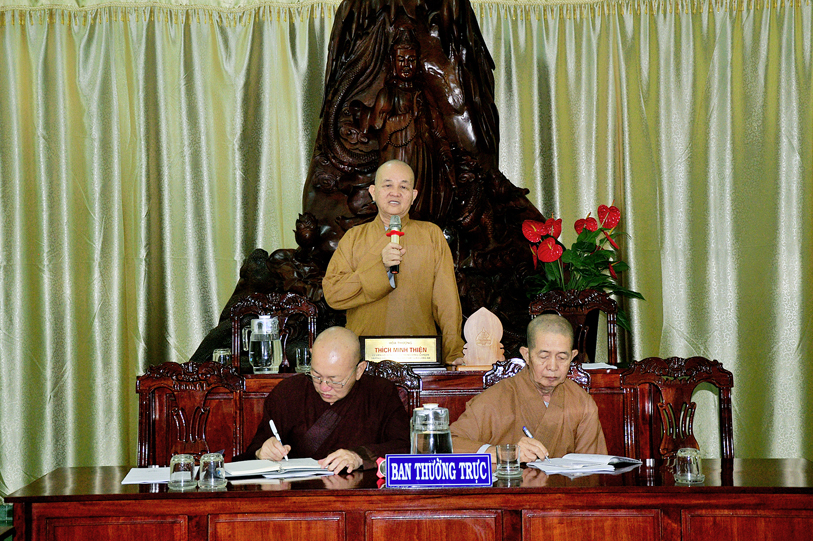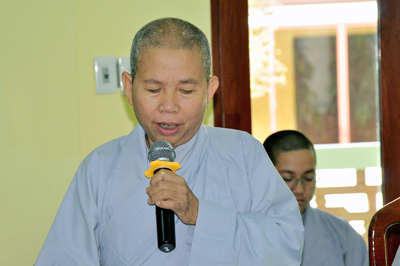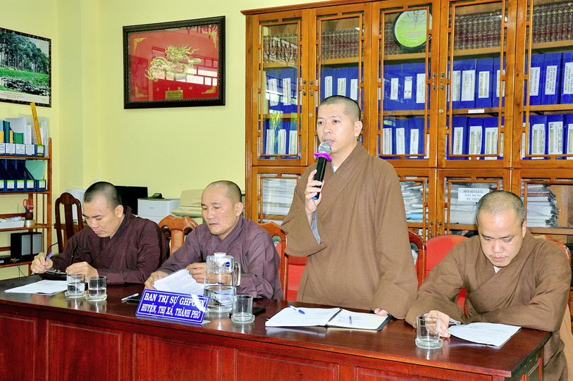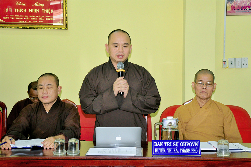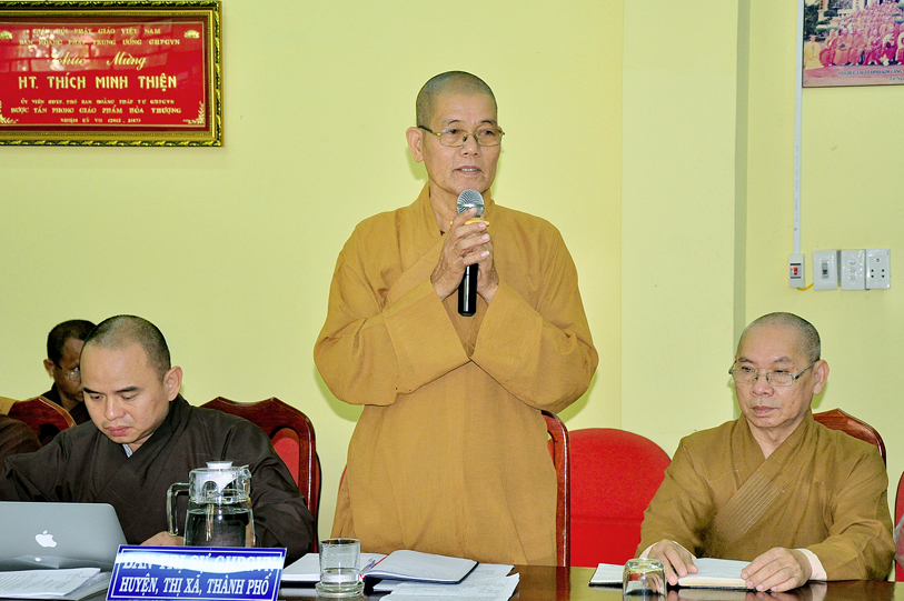 TT.Thích Quảng Tâm- Ủy viên HĐTS, Phó Trưởng ban thường trực Ban Trị sự GHPGVN tỉnh Long An thay mặt Thường trực BTS tỉnh có ý kiến hướng hoạt động trên cơ sở báo cáo của các huyện, thị, thành phố và các ban trực thuộc BTS tỉnh.