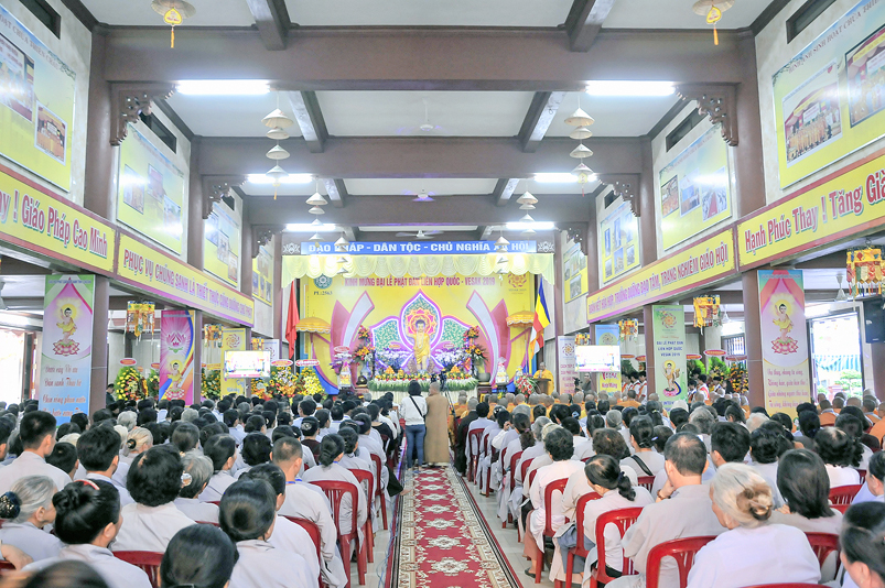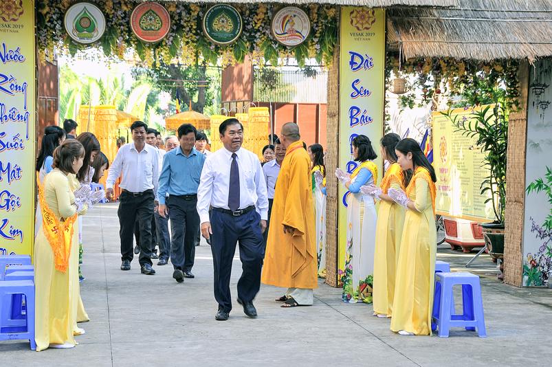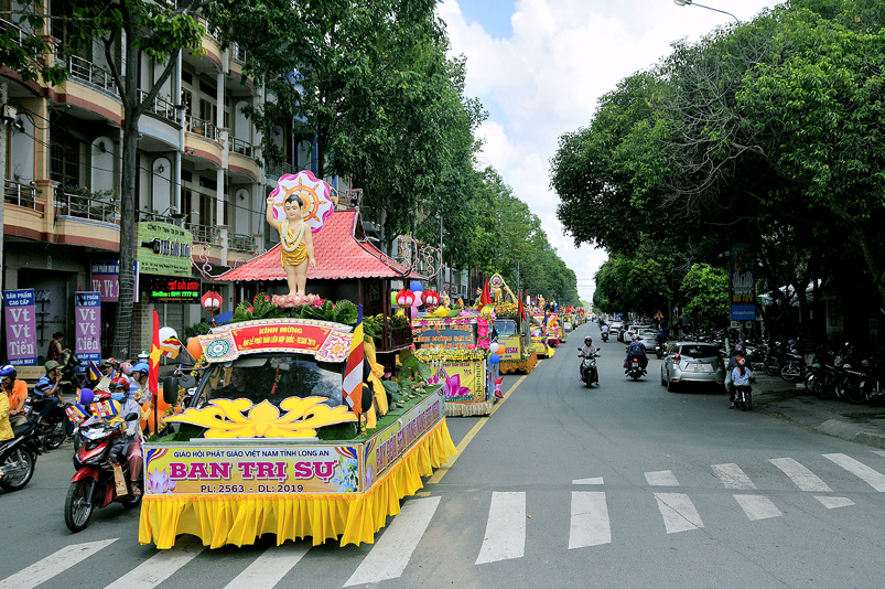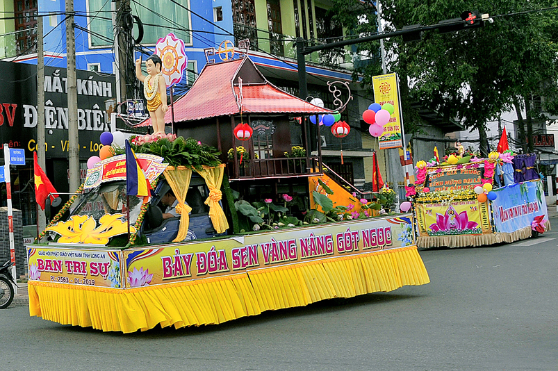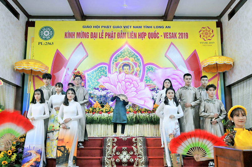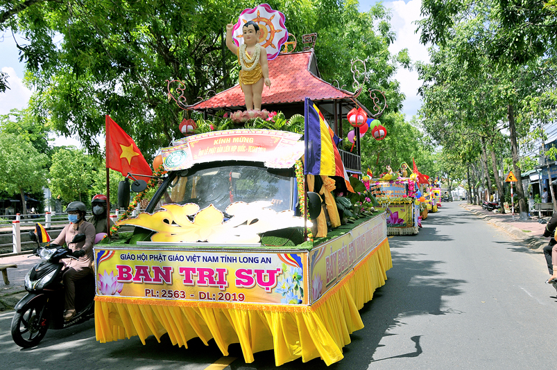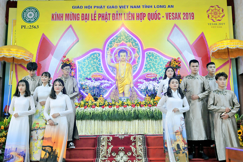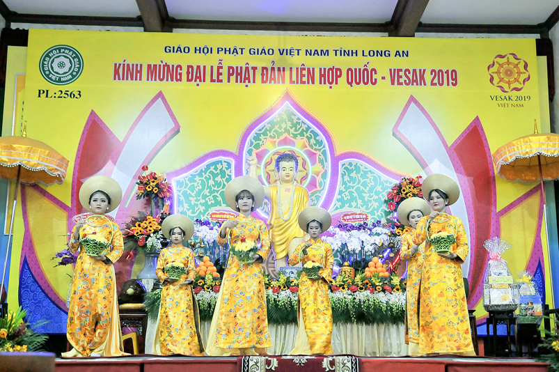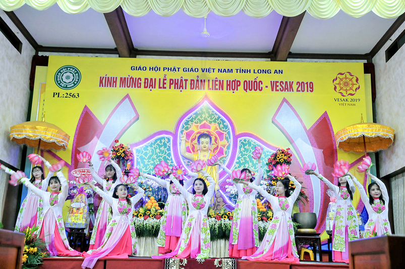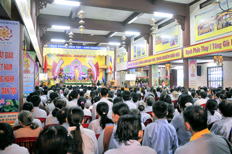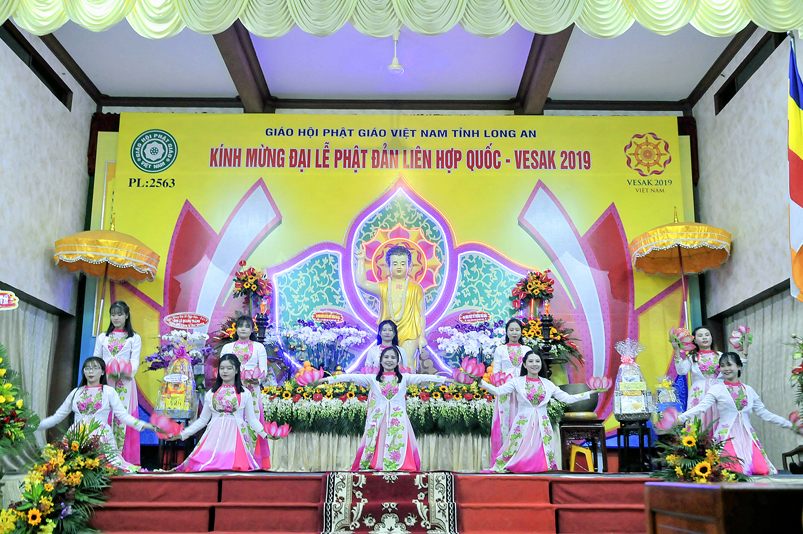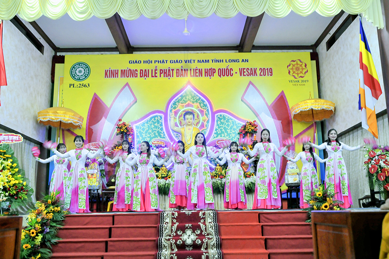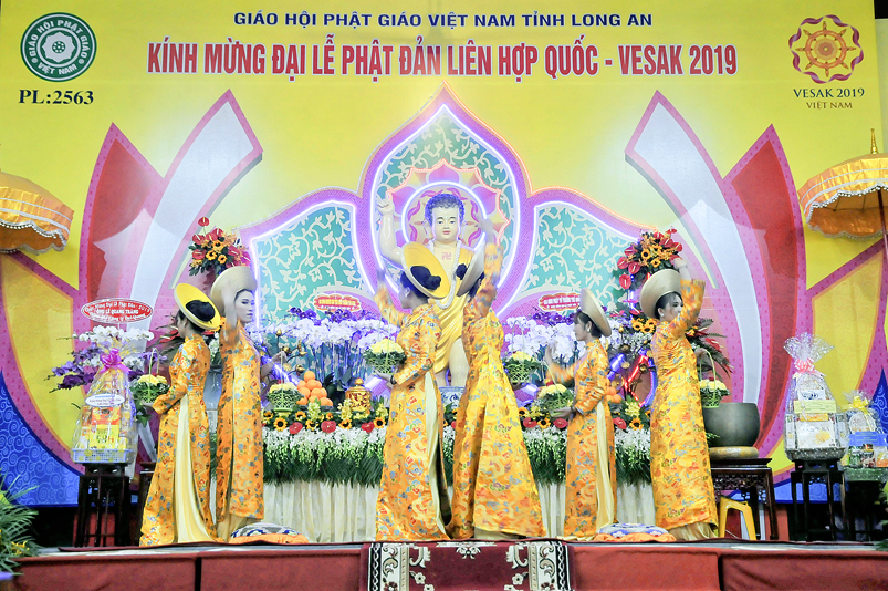 Nội dung chính chương trình gồm: ngoài những nghi thức hành chính truyền thống của Phật giáo, chương trình có: Tuyên đoc Thông điệp Phật Đản VESAK 2019 của Tổng Thư ký Liên hiệp Quốc; Tuyên đoc Thông điệp Phật Đản 2019 của Đức Pháp chủ GHPGVN; Diễn văn Đại Lễ Phật đản Phật lịch 2563 của Hòa thượng Chủ tịch Hội Đồng Trị sự Trung ương GHPGVN; Phát biểu của lãnh đão Chính quyền tỉnh Long An; Nghi thức cúng dường Phật Đản; Thả bong bóng cầu nguyện hòa bình.