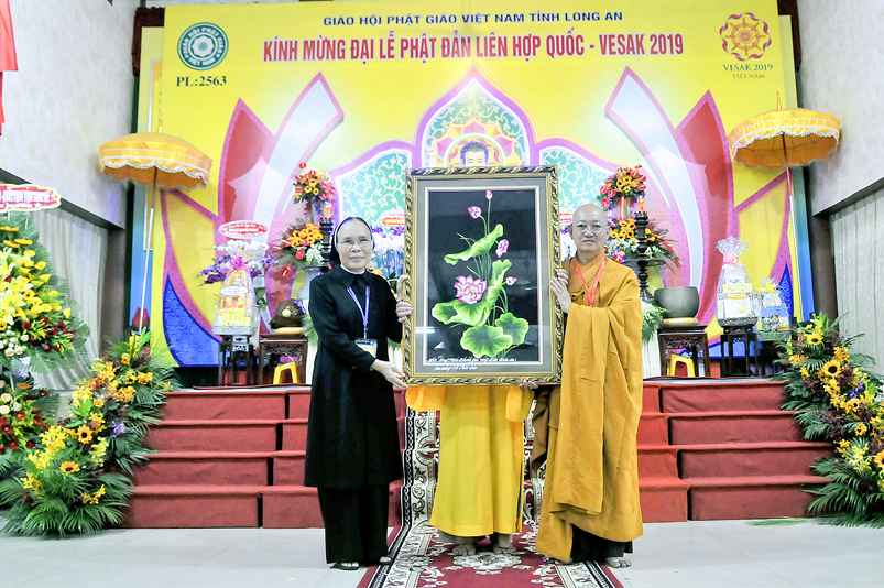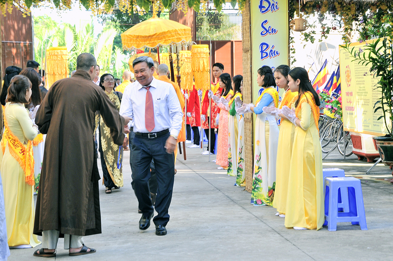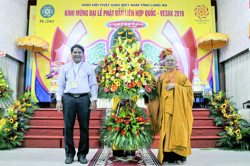 Tôn giáo bạn tham dự có: Linh mục Nguyễn Văn Nhạn – Đại diện Tòa Giám mục Mỹ Tho tại tỉnh Long An, Phó Chủ tịch Ủy ban Đoàn kết Công giáo tỉnh Long An; bà Trần Thị Bạch Tuyết – Kiểm soát Ban Trị sự Tịnh Độ Cư Sĩ Phật hội tỉnh Long An; Giáo sư Thượng Minh Thanh- Trưởng ban Đại diện Hội thánh Cao Đài Ban Chỉnh đạo tỉnh Long An; bà Đinh Thị Mát – Phó Tổng phụ trách Hội dòng Mến Thánh giá Mỹ Tho; bà Huỳnh Thị Kim Chi – Trưởng ban Đại diện Phật giáo Hòa Hảo tỉnh Long An; cùng trên 30 đại biểu tôn giáo bạn về tham dự và hơn 1000 Phật tử trong tình đồng về tham dự Đại lễ.