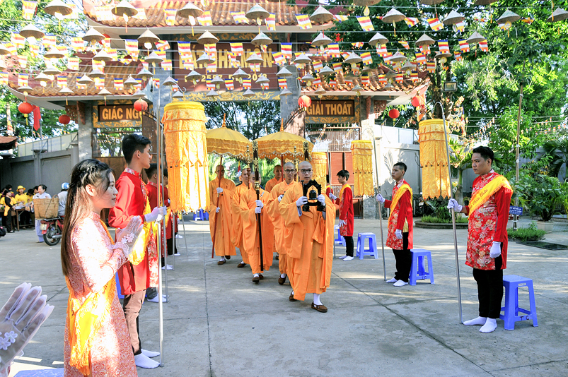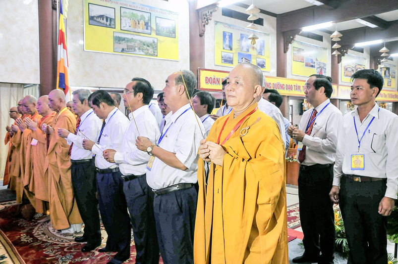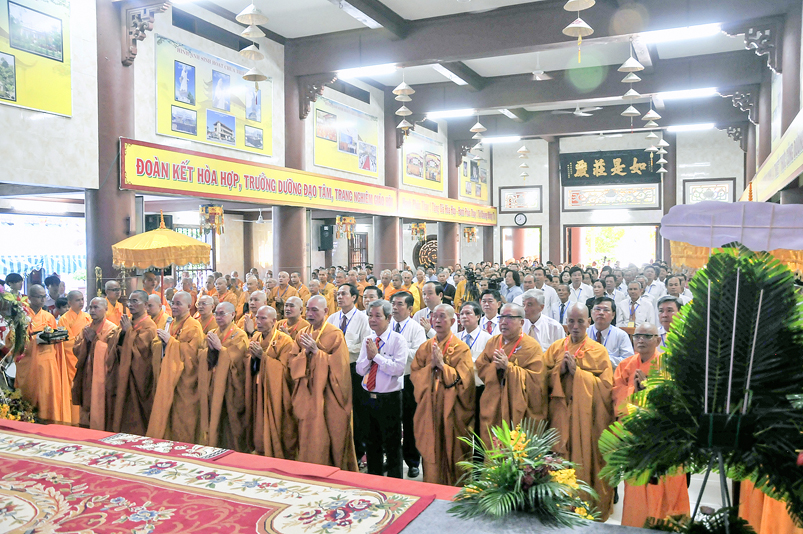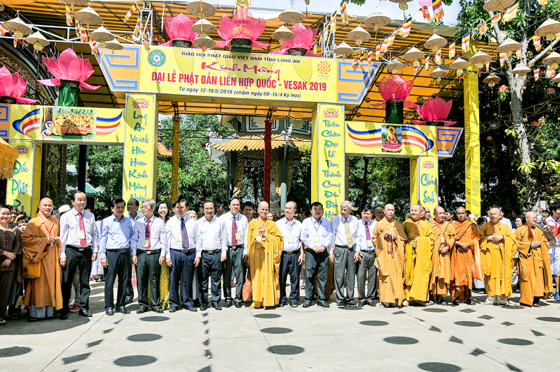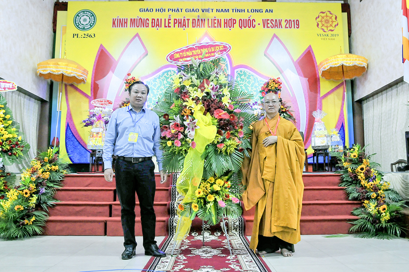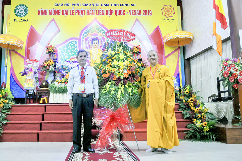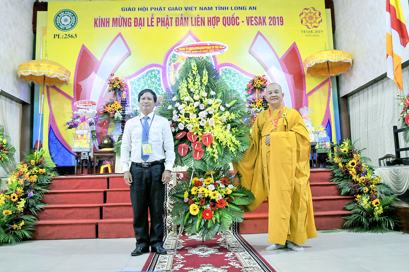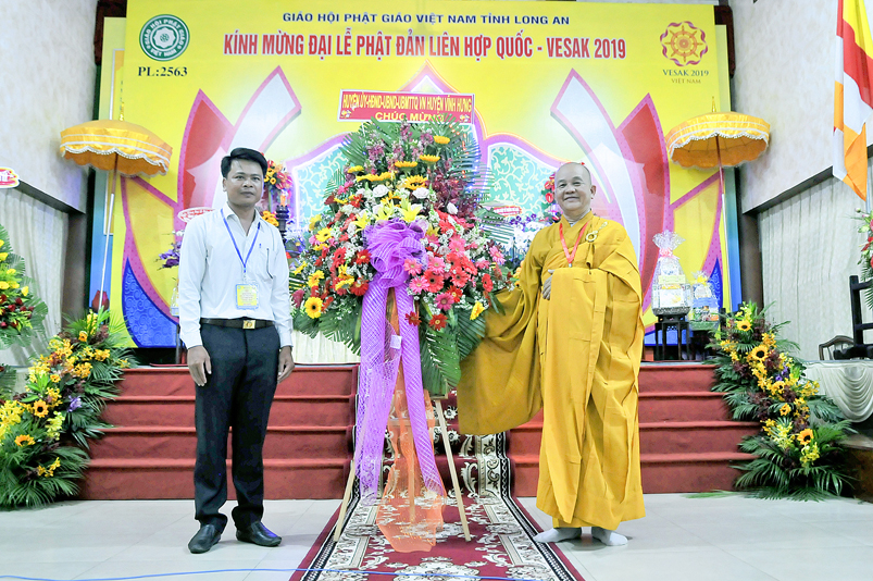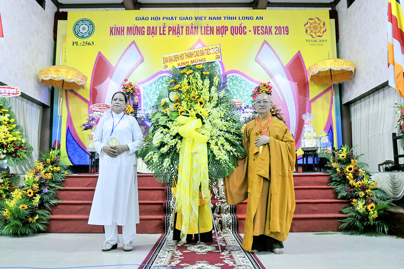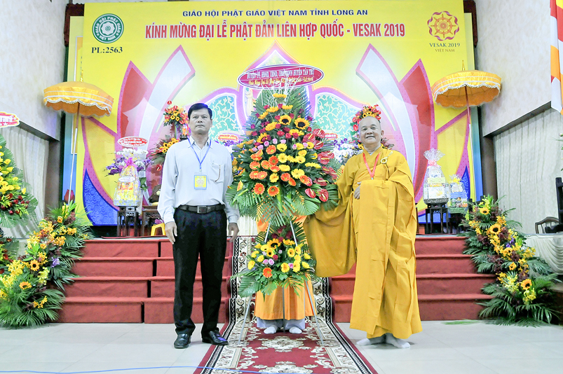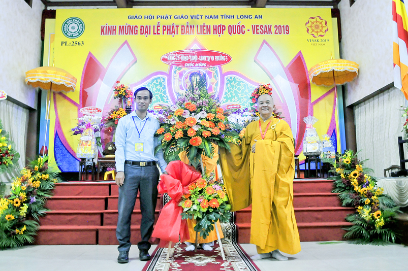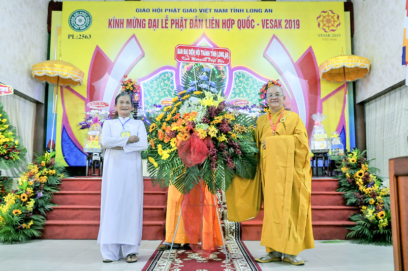 Chứng minh và tham dự Đại lễ: Hòa thượng (HT) Thích Thiện Huệ – Chứng minh BTS GHPGVN tỉnh Long An; HT. Thích Huệ Hồng – Chứng minh BTS GHPGVN tỉnh Long An; HT. Thích Minh Thiện – Uỷ viên HĐTS, Phó Ban Hoằng pháp Trung ương GHPGVN, Trưởng Ban Trị sự GHPGVN tỉnh Long An, Trưởng ban Tổ chức Đại lễ; Thượng tọa ( TT) Thích Quảng Tâm – Uỷ viên HĐTS, Phó trưởng Ban Thường trực Ban Trị sự GHPGVN tỉnh Long An; TT. Thích Minh Thọ – Uỷ viên HĐTS, Phó Ban Thường trực Ban Trị sự GHPGVN tỉnh Long An; cùng quý chư Tôn đức Thường trực BTS GHPGVN tỉnh Long An; chư Tôn đức BTS Phật giáo huyện, thị, thành phố và chư Tôn đức Tăng Ni trong toàn tỉnh Long An về tham dự.