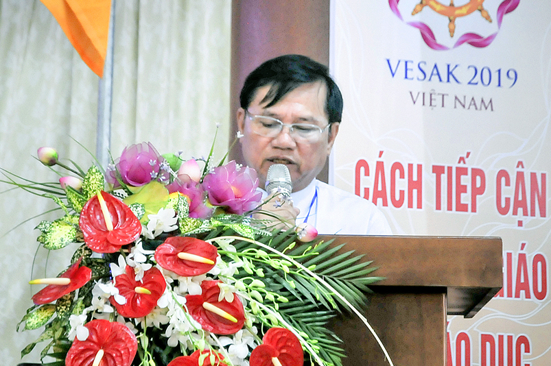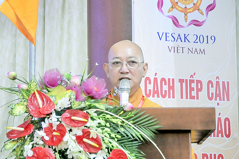 Tiếp nối chương trình, HT. Thích Minh Thiện – Uỷ viên HĐTS, Phó Ban Hoằng pháp Trung ương GHPGVN, Trưởng Ban Trị sự GHPGVN tỉnh Long An, Trưởng ban Tổ chức Đại lễ tuyên đọc Thông điệp Phật Đản 2019 của Đức Pháp chủ GHPGVN. Mở lời, Hòa thượng đã nêu lên những thành tựu của Đại lễ VESAK được tổ chức tại chùa Tam Chúc được Đại biểu và bạn bè Quốc tế ghi nhận. Hòa thượng nói đó là kết tinh của tinh thần dân tộc “ kiên cường – bất khuất – hiếu hòa – hiếu kính” và Trí tuệ – Từ bi cua người con Phật. Sau đấy, Hòa thượng tuyên đọc thông điệp Phật đản của đức Pháp Chủ GHPGVN.