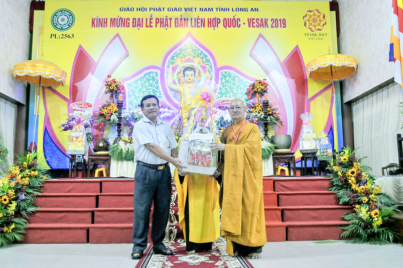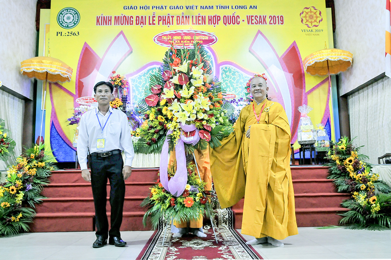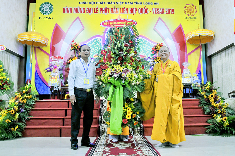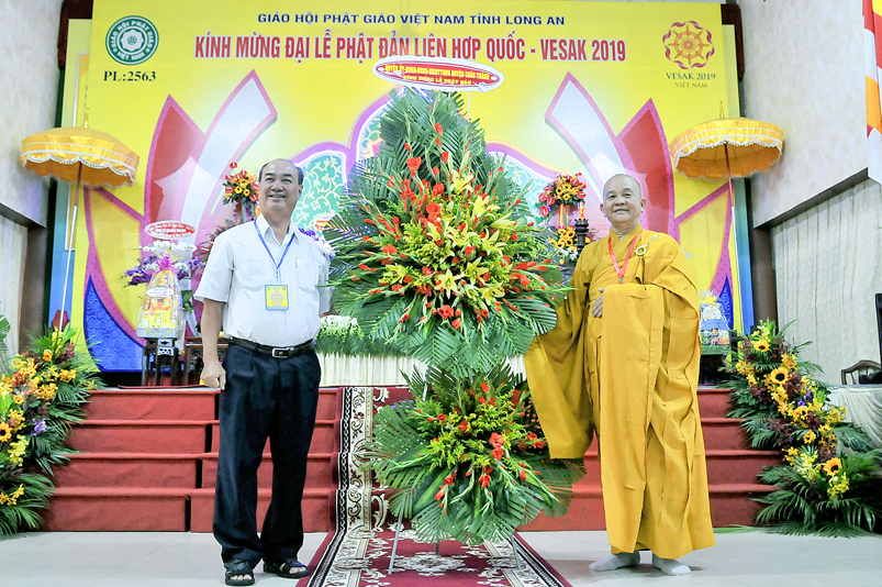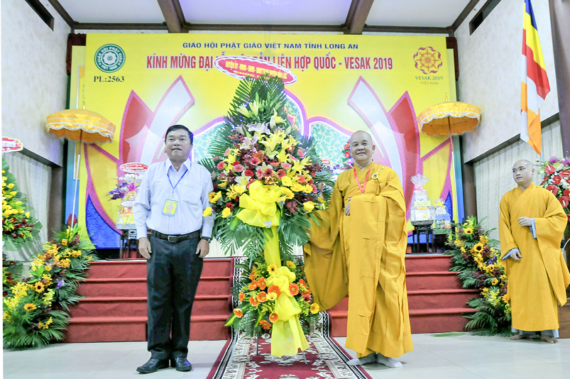 Ông Nguyễn Văn Bon – Tỉnh ủy viên, Giám đốc Sở Nội vụ tỉnh Long An đã đại diện Chính quyền phát biểu trong buổi lễ: Ông đã có nhiều lời khen ngợi về những thành quả của Phật giáo Long An trong thời gian qua. Đặc biệt là lãnh vực từ thiện đã xây cầu, xây trường, xây nhà tình nghĩa, tình thương, lãnh vực y tế, an sinh xã hội v.v… ông mong muốn Tăng Ni trong toàn tỉnh thực hiện chủ trương của Trung ương GHPGVN và Pháp luật của Nhà nước.