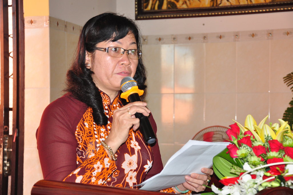 Tiếp theo, Bà Phạm Ngọc Tiệp: Phó Chủ tịch UBMTTQVN tỉnh Long An phát biểu chúc mừng: