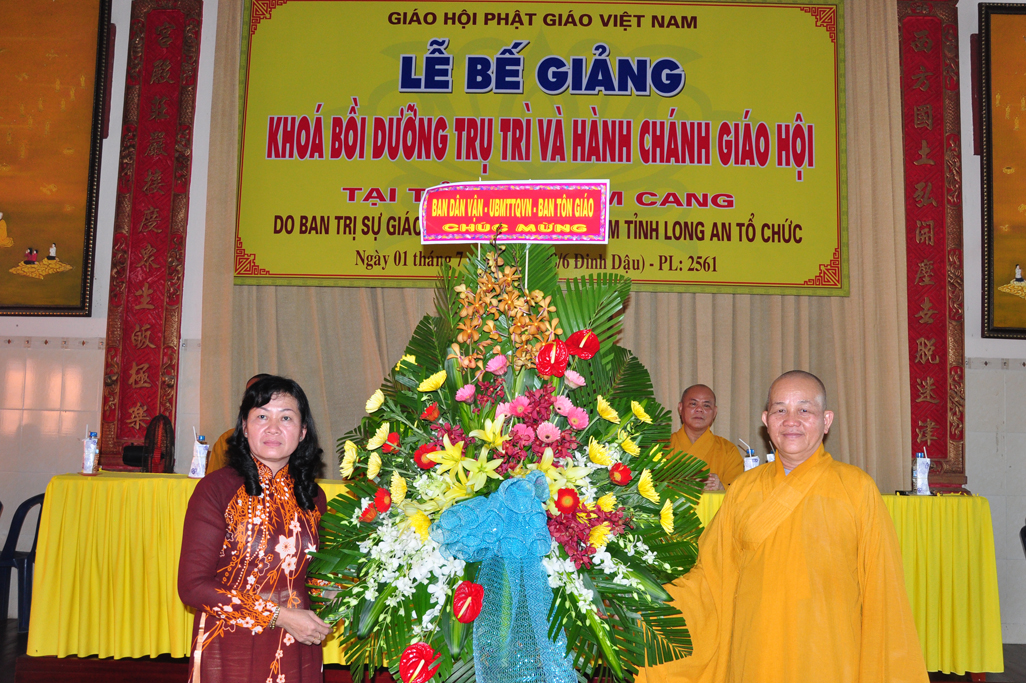 Ban Tổ chức tiếp nhận lẵng hoa chúc mừng của Ban Dân Vận, UBMTTQVN, Ban Tôn giáo tỉnh Long An.