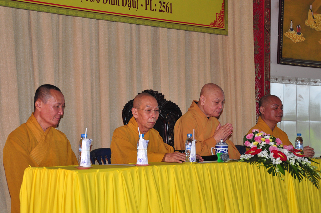 Sau nghi thức niệm Phật cầu gia bị, tuyên bố lý do và giới thiệu thành phần tham dự, ĐĐ Thích Lệ Trí:UV HĐTS, Chánh Thư ký BTS GHPGVN tỉnh Long An báo cáo tổng kết khóa Bồi dưỡng trụ trì và hành chánh giáo hội năm 2017.