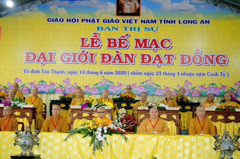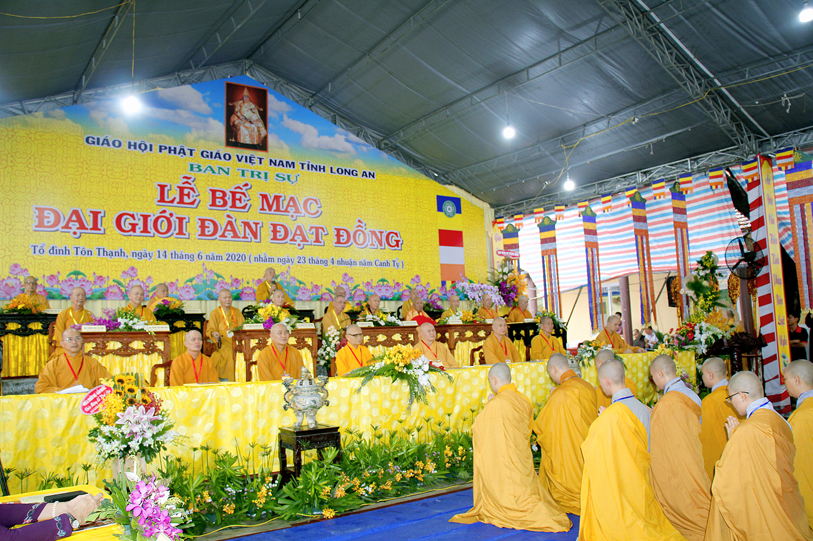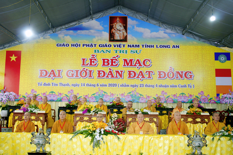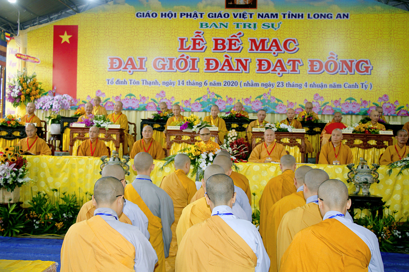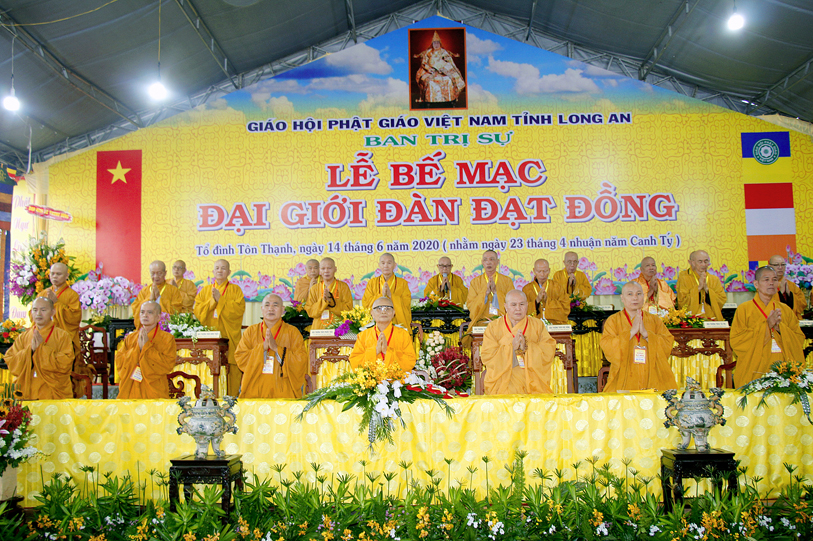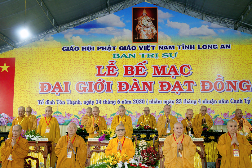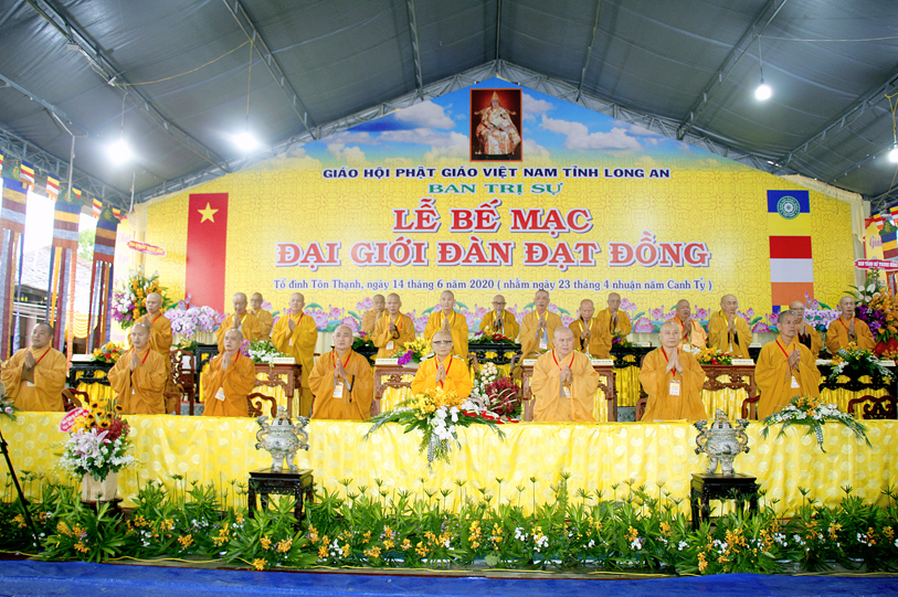 Long An ngày 14/6/2020 (nhằm ngày 23 tháng Tư nhuận năm Canh Tý ), tại Giới trường chùa Tôn Thạnh, xã Mỹ Lộc, huyện Cần Giuộc, Tỉnh Long An, chính thức diễn ra lễ bế mạc Đại Giới Đàn Đạt Đồng – Phật lịch 2564.