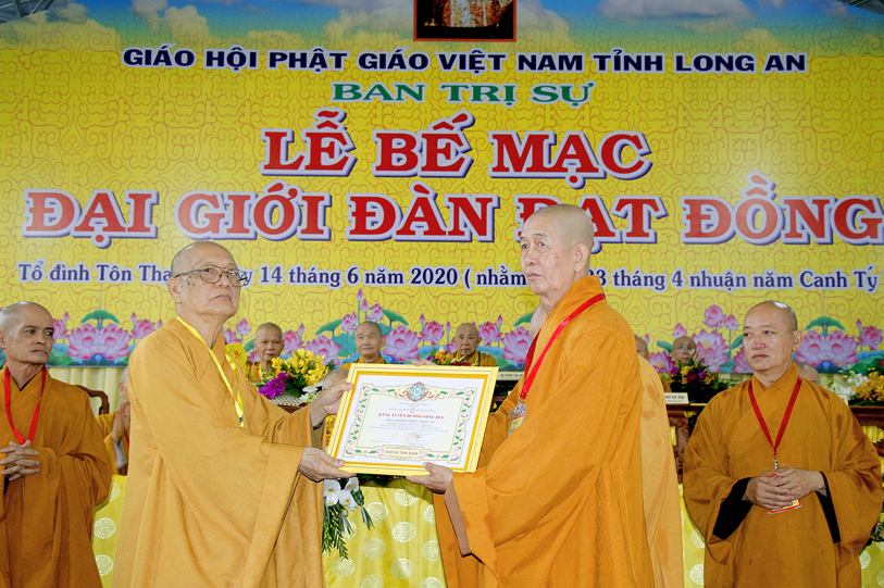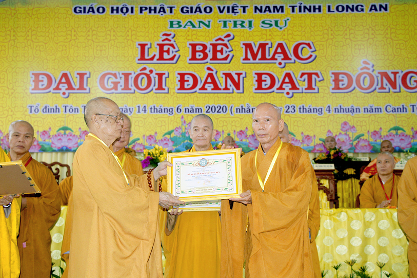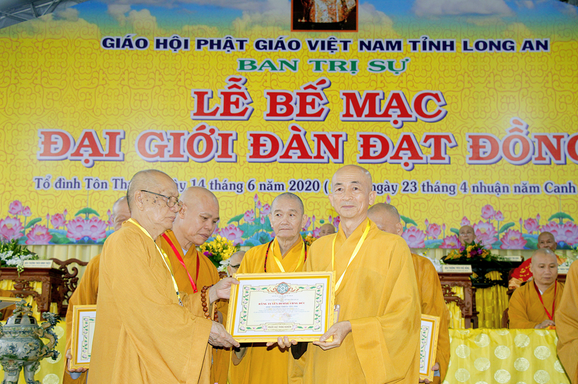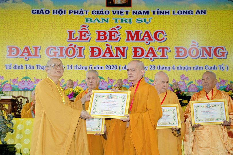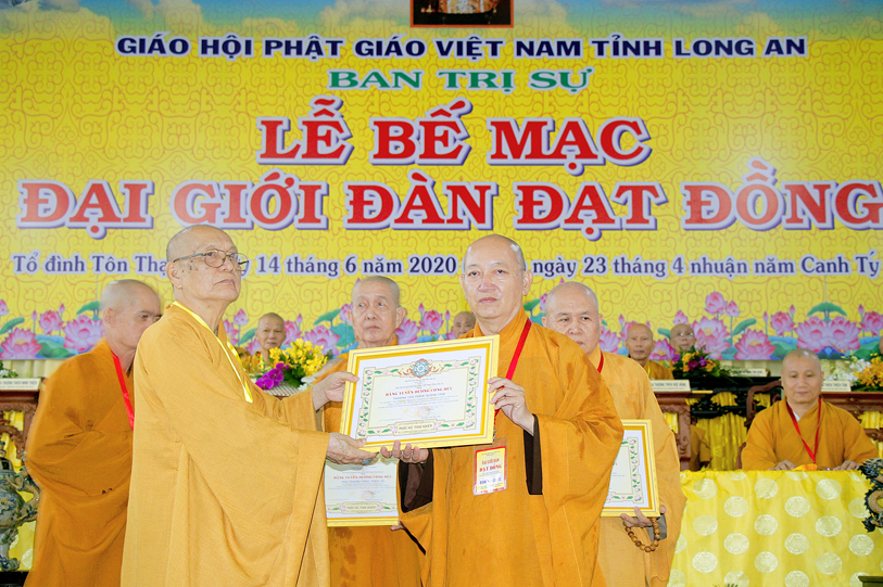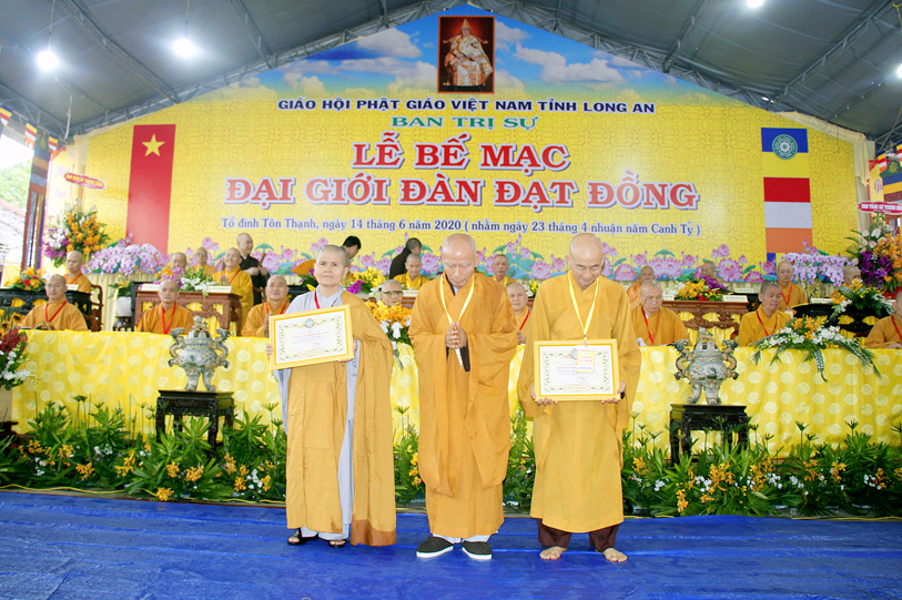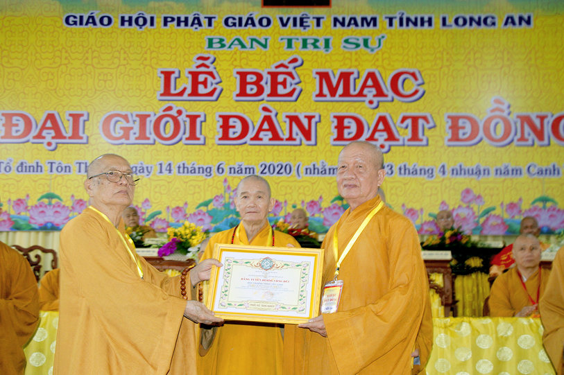 Long An ngày 14/6/2020 (nhằm ngày 23 tháng Tư nhuận năm Canh Tý ), tại Giới trường chùa Tôn Thạnh, xã Mỹ Lộc, huyện Cần Giuộc, Tỉnh Long An, chính thức diễn ra lễ bế mạc Đại Giới Đàn Đạt Đồng – Phật lịch 2564.