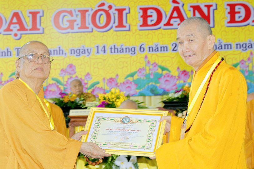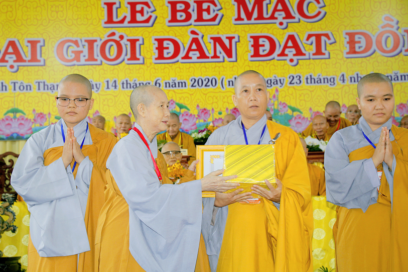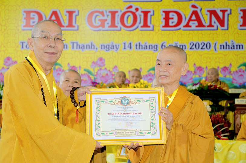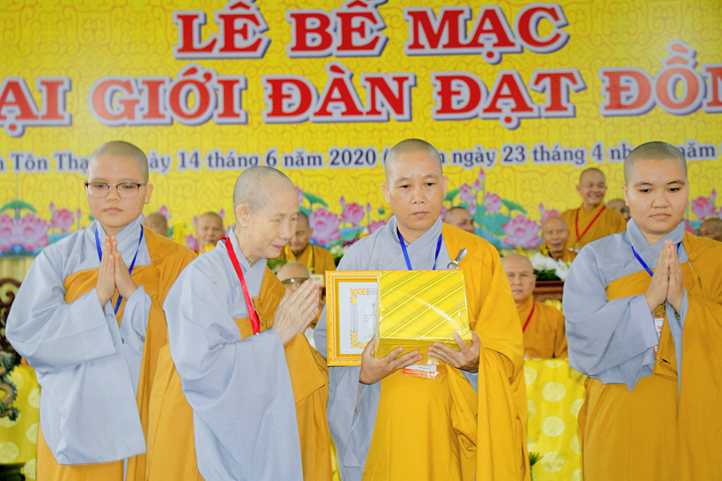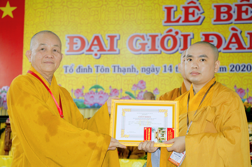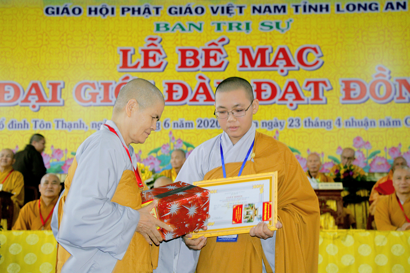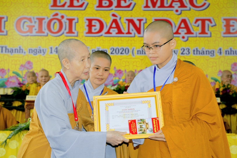Sau báo cáo kết quả tổ chức Đại giới đàn, Ban tổ chức đã trao bằng tuyên dương công đức đến Hội đồng Thập sư Nhị bộ, chư giới tử đạt kết quả cao trong kỳ khảo thí giới đàn, các tổ chức, cá nhân đã phát tâm hộ đàn những ngày qua bằng tịnh tài, tịnh vật, bằng sự công quả thầm lặng v.v.