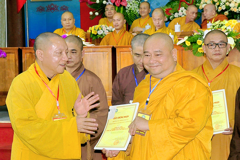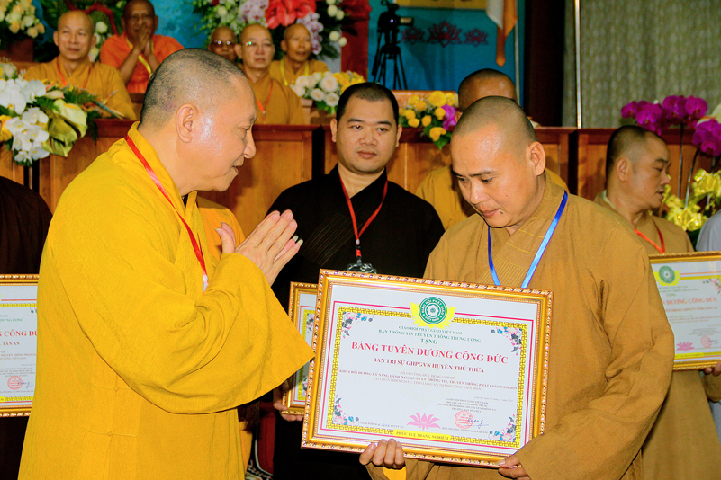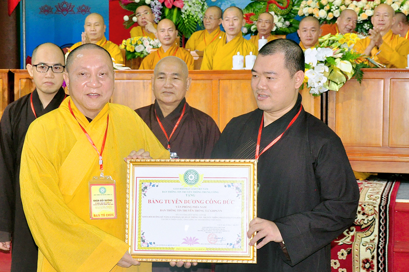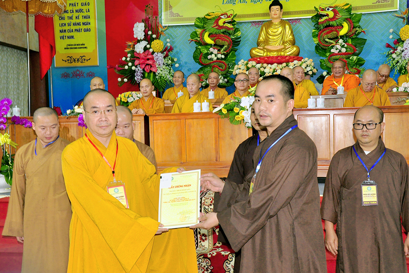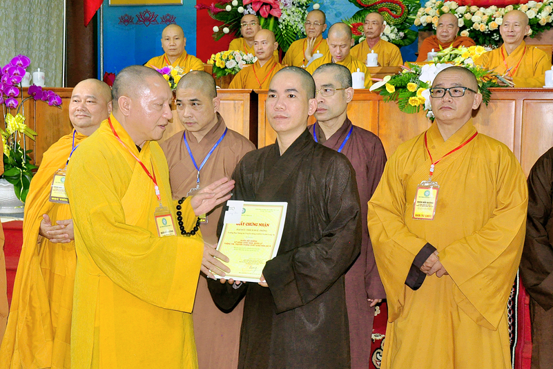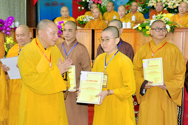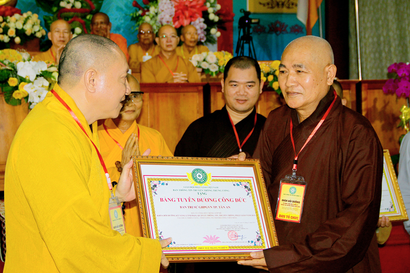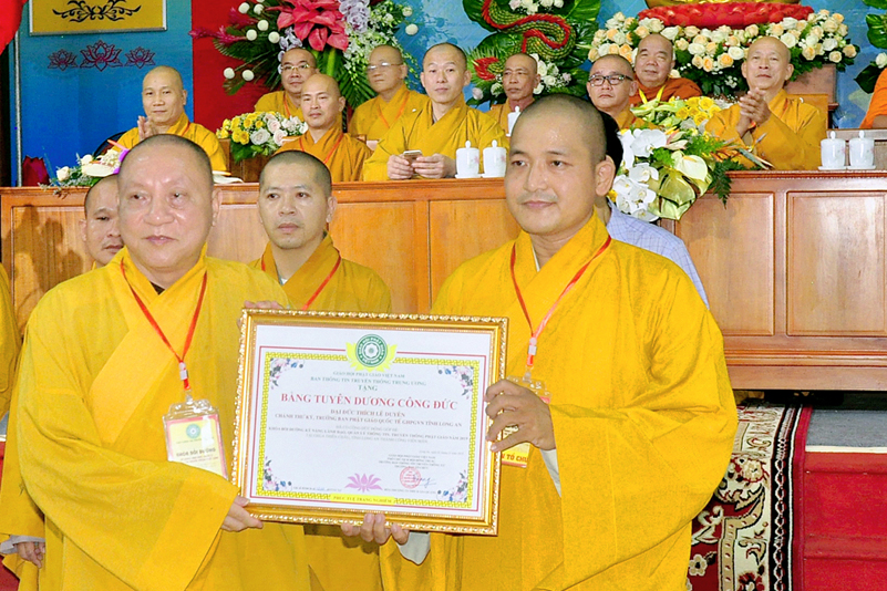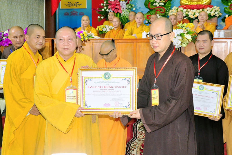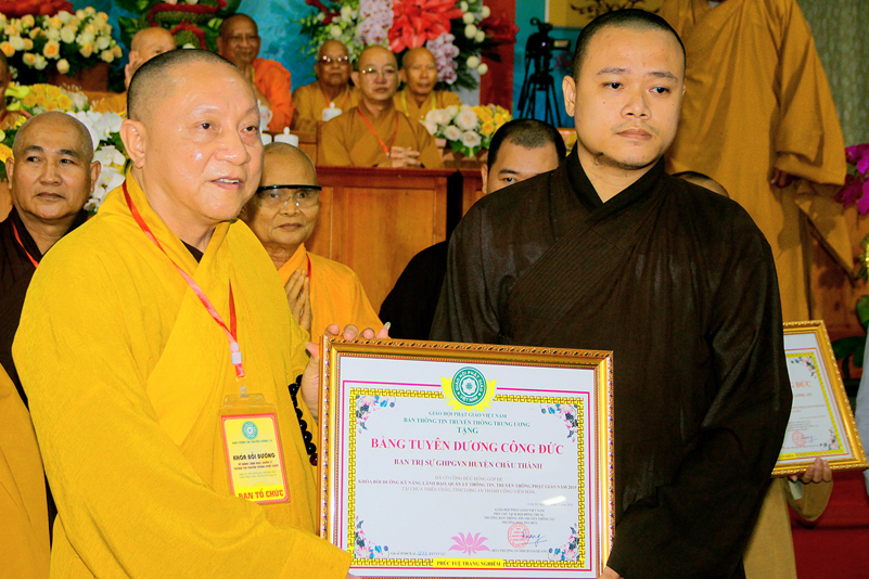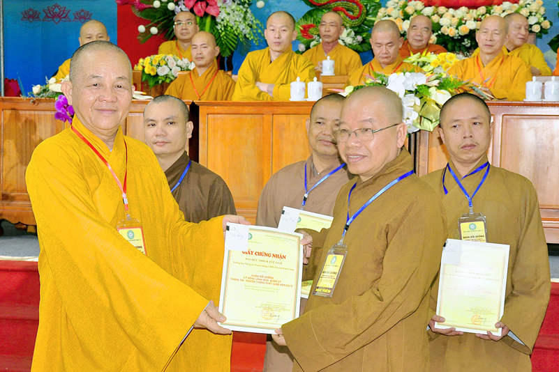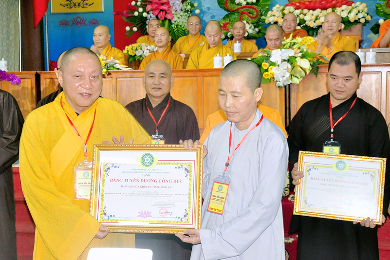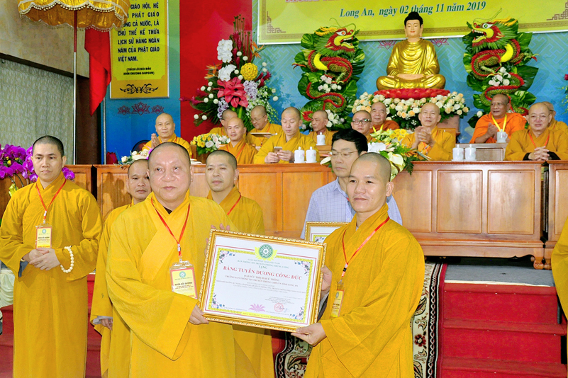 Cuối chương trình là lời cảm tạ. HT. Thích Minh Thiện – Ủy viên HĐTS, Trưởng ban Trị sự Giáo hội Phật giáo Việt Nam (BTS GHPGVN) tỉnh Long An, Phó Thường trực BTC đã tri ân sâu sắc đến HT. Thích Thiện Nhơn – Chủ tịch Hội đồng Trị sự GHPGVN đã thân lâm chứng minh, quan tâm chỉ đạo để Ban tổ chức thực hiện thành công tốt đẹp. Hòa thượng đã tri ân HT. Thích Gia Quang đã tạo điều kiện cho Phật giáo Long An được phối hợp tổ chức. Hòa thượng cảm ơn đến các cấp chính quyền tỉnh Long An đã tạo điều kiện thuận lợi cho BTC. Hòa thượng tri ân đến sự đồng tâm hiệp lực của toàn thể Tăng Ni, Phật tử trong toàn tỉnh để chung tay phối hợp để tổ chức Khóa Bồi dưỡng kỹ năng lãnh đạo, quản lý thông tin truyền thông Phật giáo toàn quốc năm 2019, do Ban Thông tin – Truyền thông Trung ương GHPGVN phối hợp cùng BTS GHPG tỉnh Long An tổ chức.