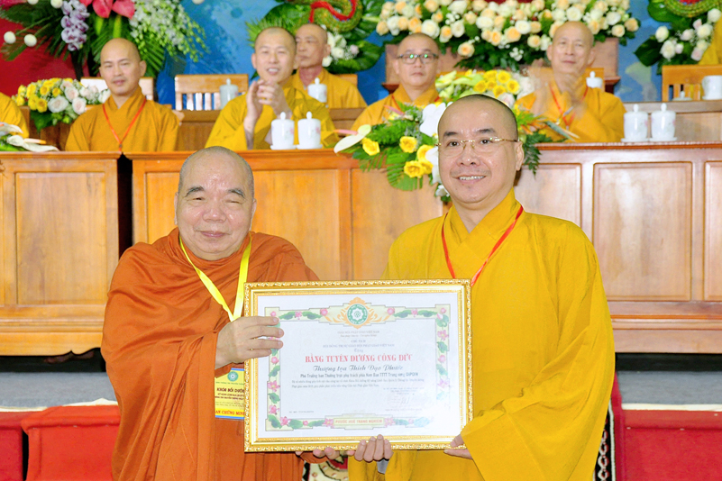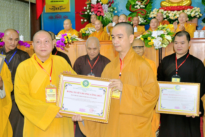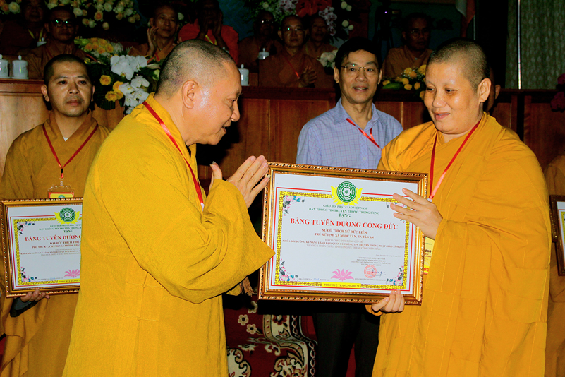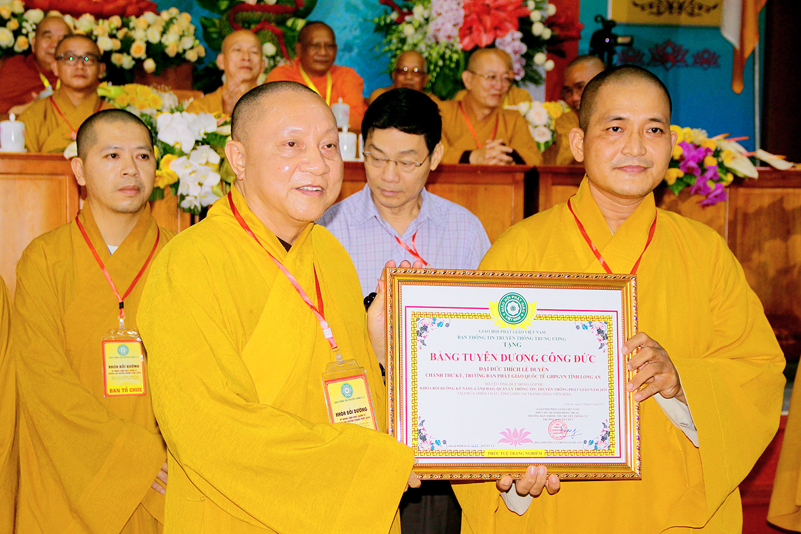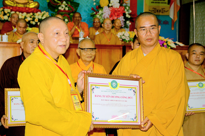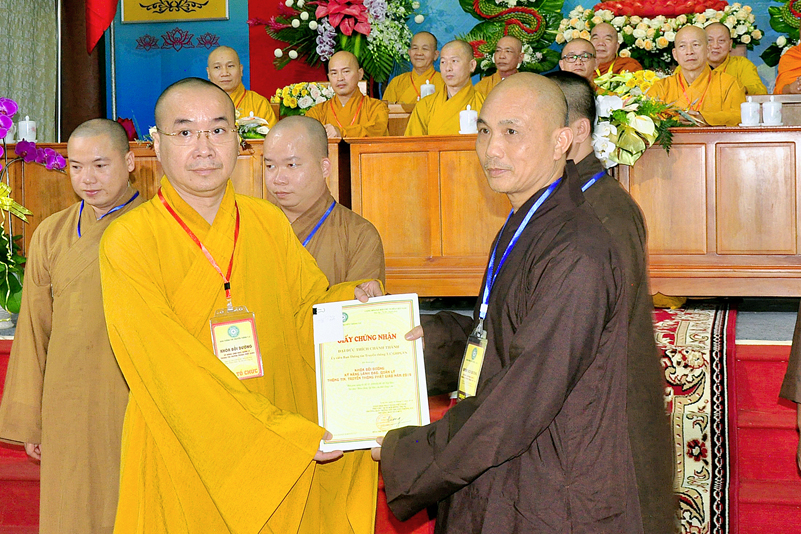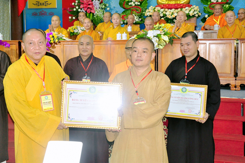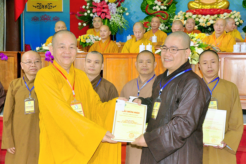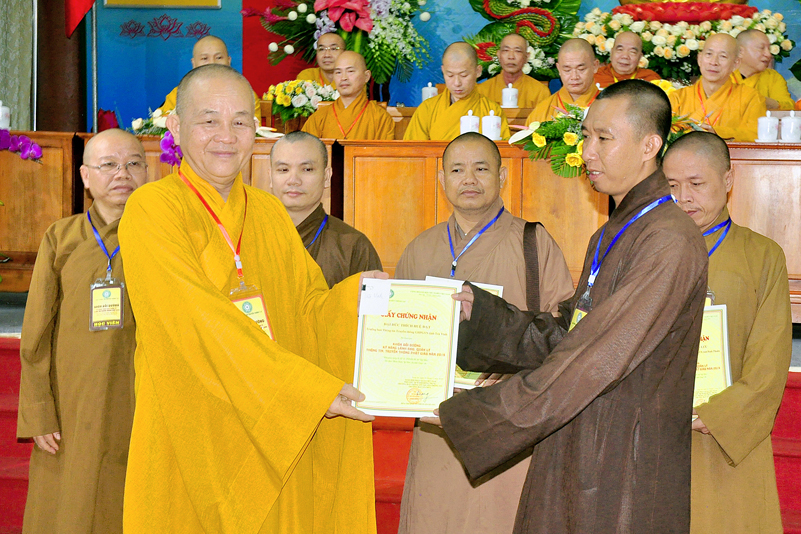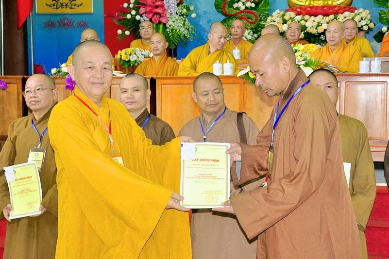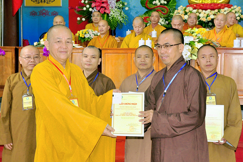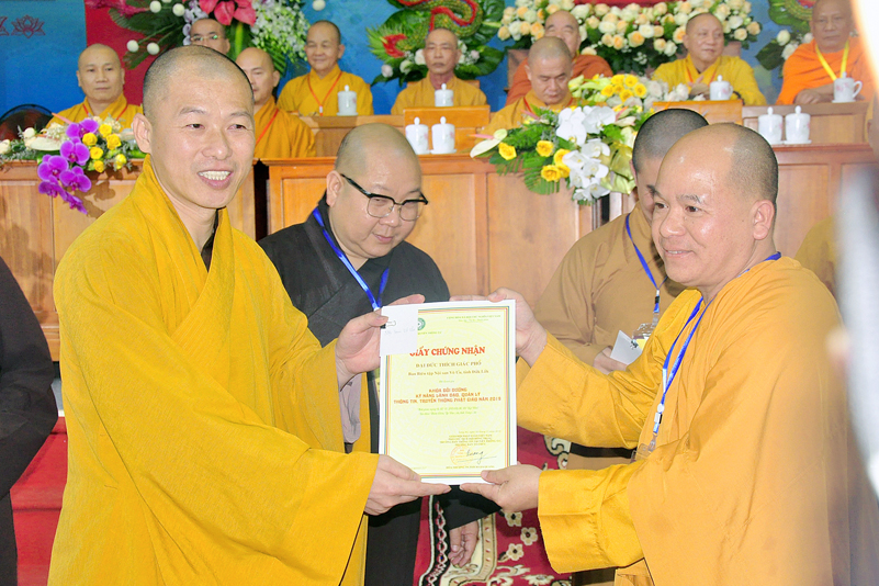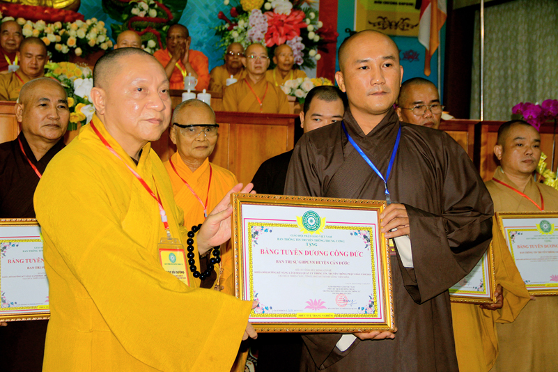 Cuối chương trình là lời cảm tạ. HT. Thích Minh Thiện – Ủy viên HĐTS, Trưởng ban Trị sự Giáo hội Phật giáo Việt Nam (BTS GHPGVN) tỉnh Long An, Phó Thường trực BTC đã tri ân sâu sắc đến HT. Thích Thiện Nhơn – Chủ tịch Hội đồng Trị sự GHPGVN đã thân lâm chứng minh, quan tâm chỉ đạo để Ban tổ chức thực hiện thành công tốt đẹp. Hòa thượng đã tri ân HT. Thích Gia Quang đã tạo điều kiện cho Phật giáo Long An được phối hợp tổ chức. Hòa thượng cảm ơn đến các cấp chính quyền tỉnh Long An đã tạo điều kiện thuận lợi cho BTC. Hòa thượng tri ân đến sự đồng tâm hiệp lực của toàn thể Tăng Ni, Phật tử trong toàn tỉnh để chung tay phối hợp để tổ chức Khóa Bồi dưỡng kỹ năng lãnh đạo, quản lý thông tin truyền thông Phật giáo toàn quốc năm 2019, do Ban Thông tin – Truyền thông Trung ương GHPGVN phối hợp cùng BTS GHPG tỉnh Long An tổ chức.
