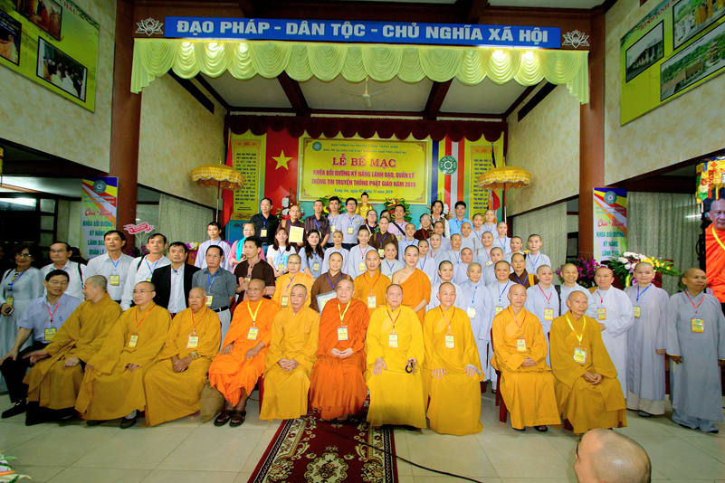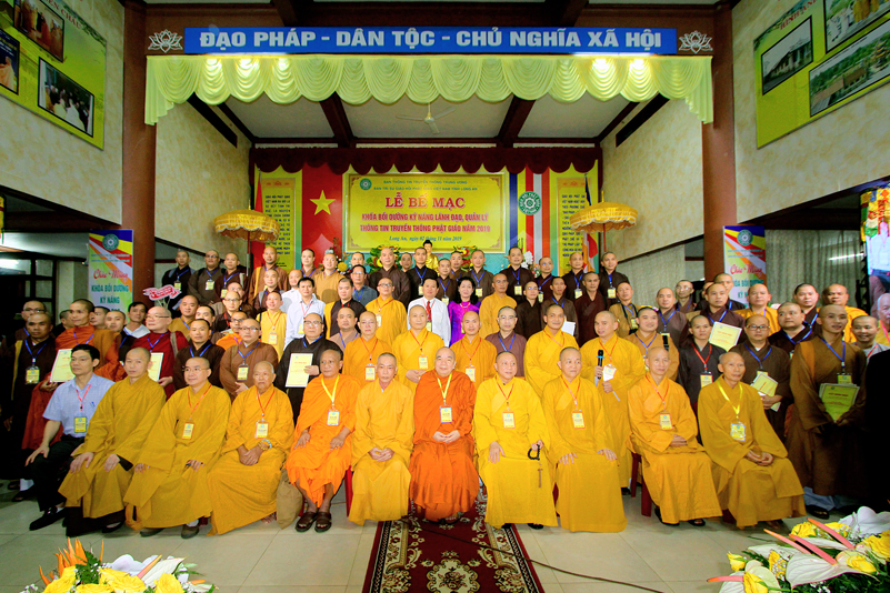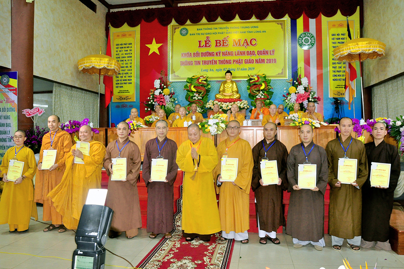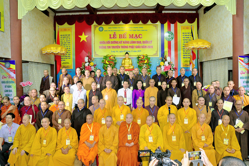Sáng ngày 02/11/2019 (6/10/ Kỷ Hợi), tại chùa Thiên Châu – trụ sở Văn phòng BTS GHPG VN tỉnh Long An, số 101, Huỳnh Văn Nhứt, phường 3, thành phố Tân An, tỉnh Long An đã diễn ra lễ Bế mạc Khóa Bồi dưỡng kỹ năng lãnh đạo, quản lý thông tin truyền thông Phật giáo toàn quốc năm 2019, do Ban Thông tin – Truyền thông Trung ương GHPGVN phối hợp cùng BTS GHPG tỉnh Long An tổ chức.