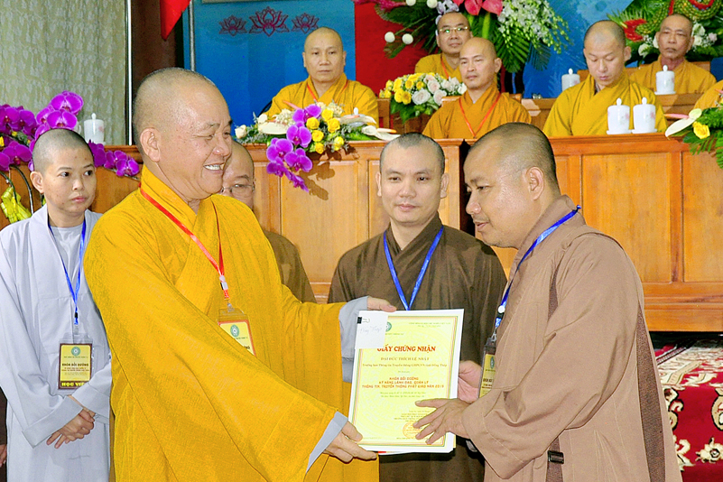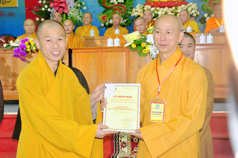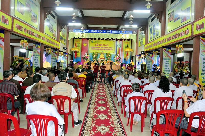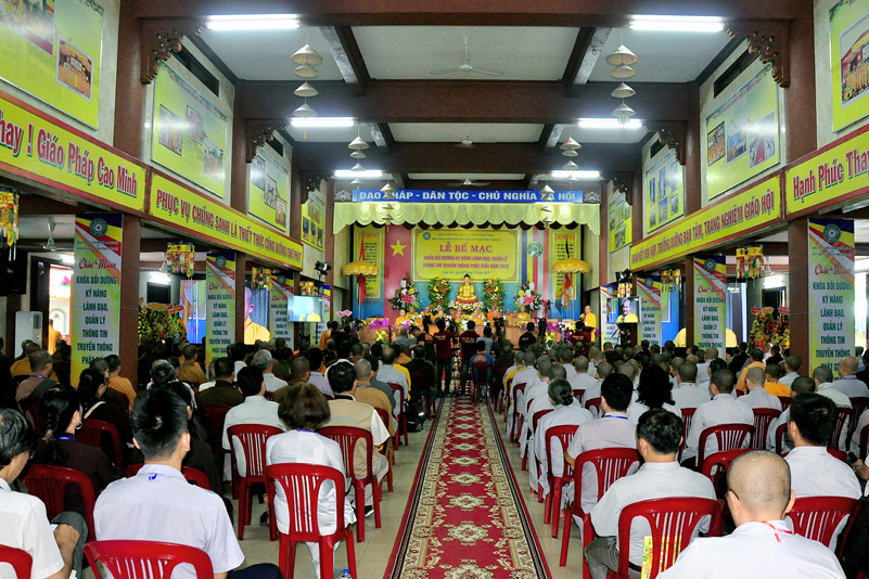 Buổi lễ diễn ra với những nội dụng chính: phát biểu bế mạc, hoa chúc mừng, tặng bằng tuyên dương công đức, phát biểu của lãnh đạo chính quyền, trao chứng chỉ khóa bồi dưỡng và cảm tạ của Ban tổ chức.