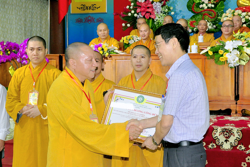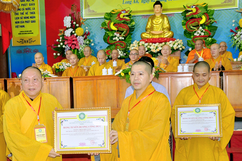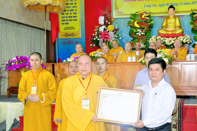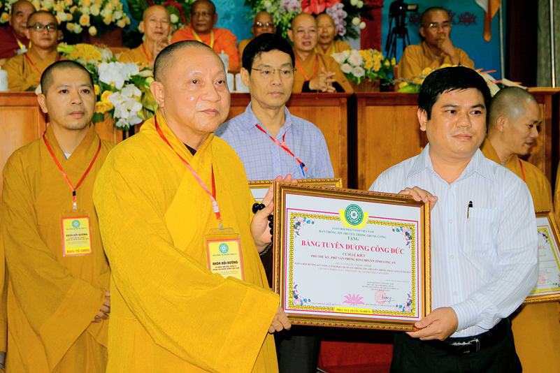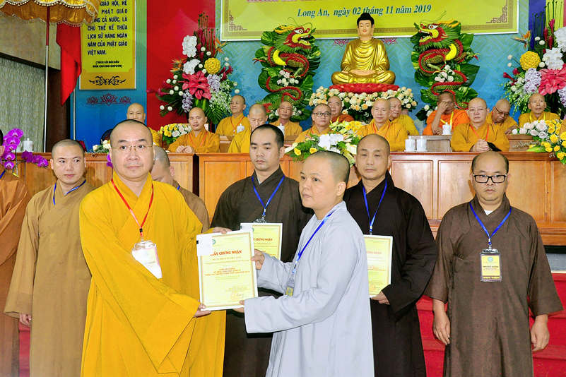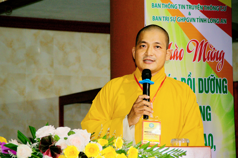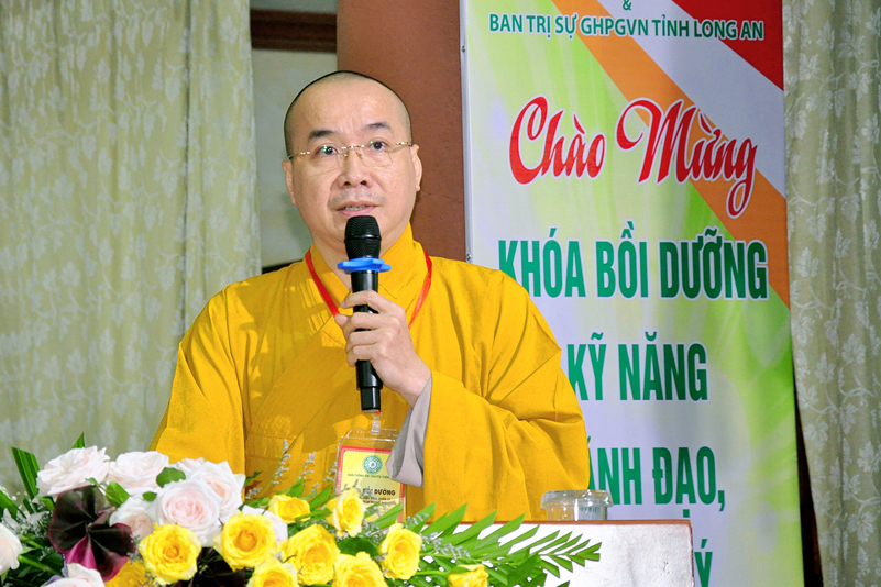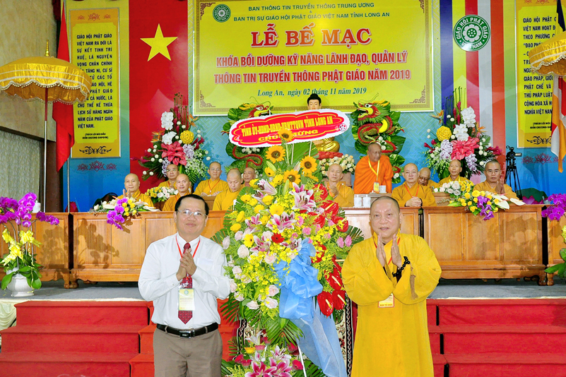 Ông Nguyễn Văn Bon – Giám đốc Sở Nội vụ tỉnh Long An có lời phát biểu chúc mừng khóa tập huấn thành công tốt đẹp. Ông cũng đã trân trọng ghi nhận nhiều đóng góp của Phật giáo đối với đồng bào nhân dân trong tỉnh về các lãnh vực từ thiện, xây nhà tình thương, xây cầu, hỗ trợ học sinh nghèo hiếu học, phát cơm tại các bệnh viện v.v. Và ông cũng trân trọng ghi nhận Phật giáo đóng vai trò quan trọng trong việc đoàn kết các tôn giáo.