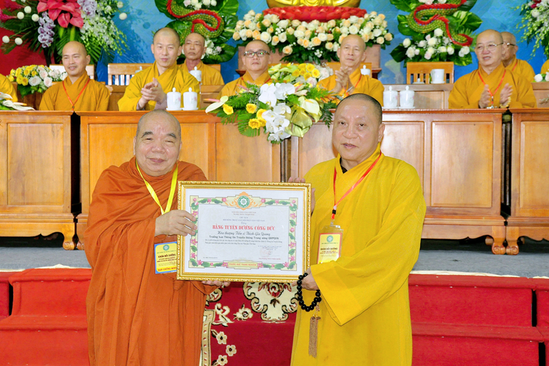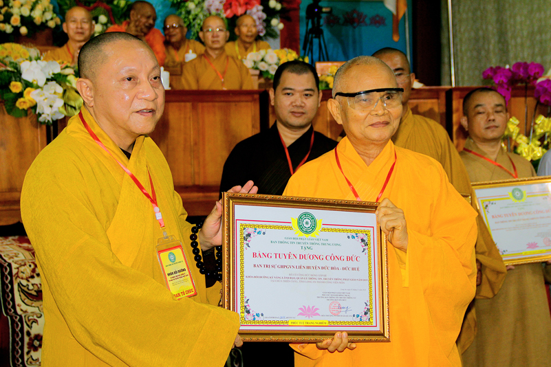 Quang lâm chứng minh buổi lễ có: HT. Thích Thiện Tâm – Phó Chủ tịch HĐTS, Phó trưởng Ban Thường trực Ban Phật giáo Quốc tế GHPGVN; HT. Thích Gia Quang – Phó Chủ tịch HĐTS, Trưởng ban Thông tin Truyền Thông TƯ GHPGVN, Trưởng ban Tổ chức (BTC); HT.Danh Lung – Ủy viên Thư ký Hội đồng Trị sự, Phó Văn phòng 2 Trung ương GHPGVN; HT. Thích Thiện Huệ, Chứng minh Ban Trị sự GHPGVN tỉnh Long An; HT. Thích Huệ Hồng Chứng minh Ban Trị sự GHPGVN tỉnh Long An; HT. Thích Minh Thiện – Ủy viên HĐTS, Trưởng ban Trị sự Giáo hội Phật giáo Việt Nam (BTS GHPGVN) tỉnh Long An, Phó Thường trực BTC; TT. Thích Đạo Phước – Phó Thường Ban Thông tin Truyền Thông TƯ GHPGVN, Phó ban Tổ chức cùng chư Tôn đức HĐTS; Ban ngành viện Trung ương GHPGVN, chư Tôn đức lãnh đạo các Ban Trị sự GHPGVN tỉnh/thành phố và Ban Thông tin Truyền thông GHPGVN 63 tỉnh trong cả nước đồng về tham dự.