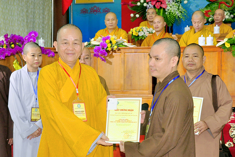 Mở đầu Lễ Bế Mạc, HT. Thích Gia Quang – Phó Chủ tịch HĐTS, Trưởng ban Thông tin Truyền Thông TƯ GHPGVN, Trưởng ban Tổ chức đã nhấn mạnh tầm quan trọng của Truyền thông Phật giáo trong sứ mệnh Hoằng pháp. Khóa tập huấn lần thứ III của Ban Thông tin Truyền thông Trung ương là sự cố gắng của ban để bồi dưỡng kiến thức, nâng cao kỹ năng truyền thông cho các học viên để các học viên ngày càng tốt hơn nữa trong công việc chuyên môn của mình. Hòa thưỡng cám ơn đến các diễn giả, Tỉnh ủy, chính quyền tỉnh Long An, Ban trị sự Phật giáo Long An đã phối hợp, tạo điều kiện, giúp đỡ để khóa học thành tựu viên mãn.