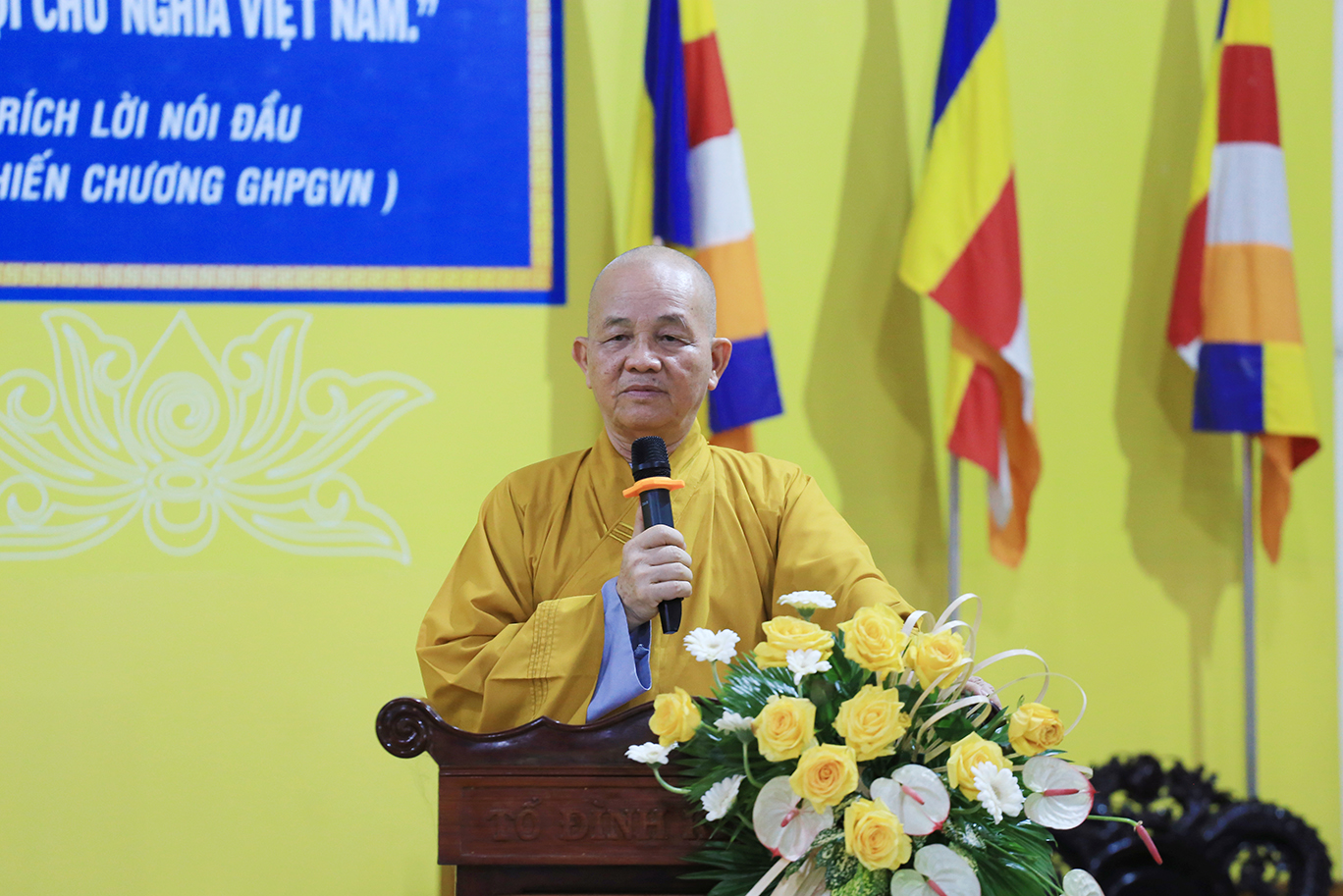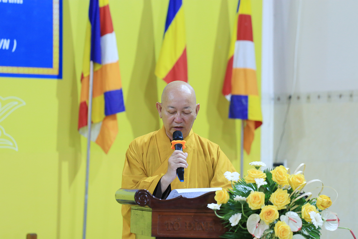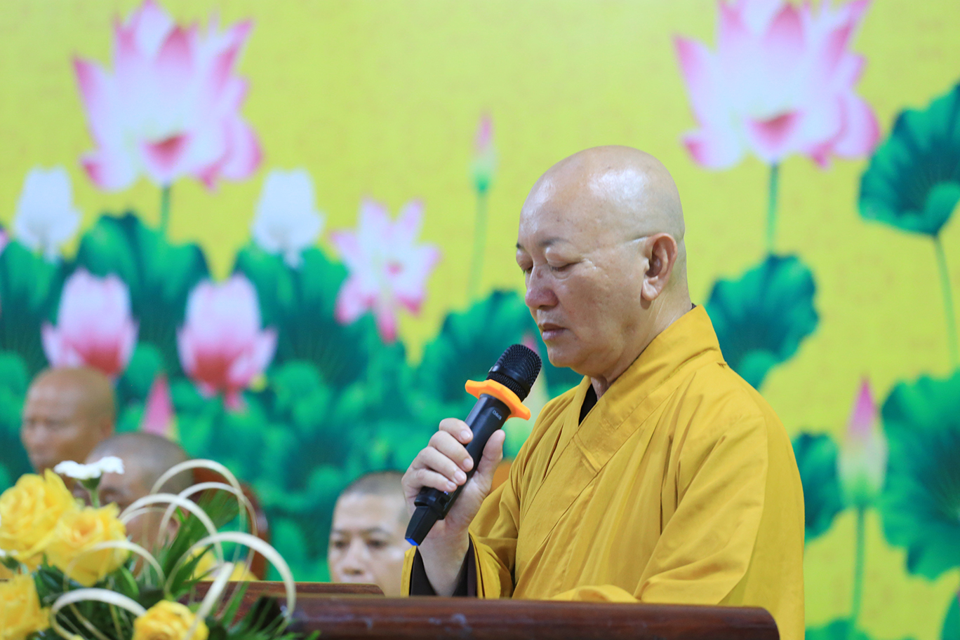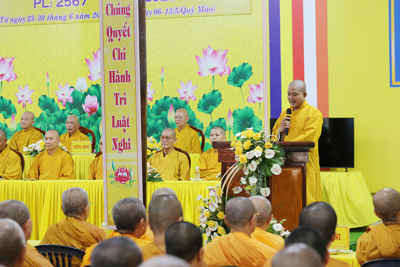 Thay mặt Ban Tổ chức, ĐĐ. Thích Lệ Duyên báo cáo kết quả Khóa Bồi Dưỡng Trụ Trì Và Hành Chính Giáo Hội Năm 2023. Theo đó, khóa học diễn ra từ ngày 23-30/6/2023 (nhằm ngày 6-13/5/Quý Mão) tại Chùa Kim Cang, ấp Bình Cang, xã Bình Thạnh, huyện Thủ Thừa, tỉnh Long An với 420 Tăng Ni tham dự. Lễ Khai mạc được cung nghinh HT. Thích Thiện Huệ – Thành viên HĐCM, Chứng minh BTS GHPGVN tỉnh Long An; HT. Thích Thiện Nhơn – Chủ tịch HĐTS; HT. Thích Thiện Pháp – Phó Chủ tịch Thường trực HĐTS; HT. Thích Thiện Thống – Phó Chủ tịch HĐTS.