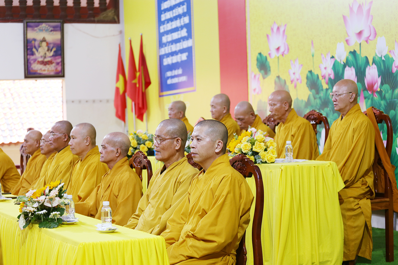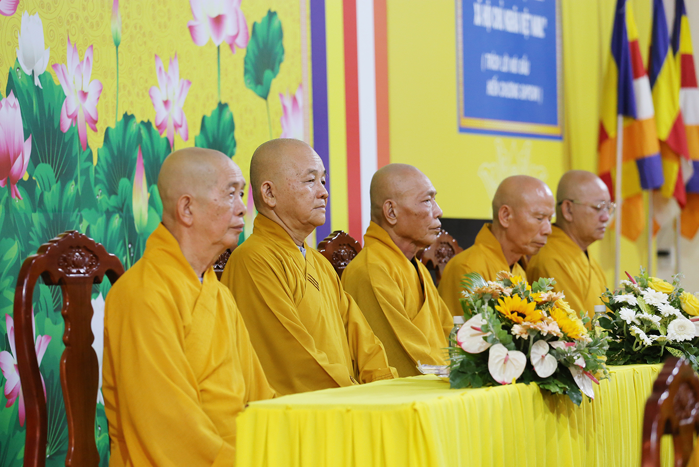 Quang lâm chứng minh và tham dự buổi lễ có: HT. Thích Thiện Huệ – Thành viên HĐCMTƯ GHPGVN, Chứng minh BTS GHPGVN tỉnh Long An; HT. Thích Huệ Hồng, HT. Thích Thiện Tài – đồng Chứng minh BTS GHPGVN tỉnh Long An; HT. Thích Minh Thiện – UV HĐTS, Phó ban Hoằng pháp TƯ, Trưởng BTS GHPGVN tỉnh Long An, Trưởng ban Tổ chức; TT. Thích Quảng Tâm – UV HĐTS, Phó ban Từ thiện Xã hội TƯ, Phó Trưởng ban Thường trực BTS GHPGVN tỉnh Long An; Chư tôn đức Phó BTS GHPGVN tỉnh: TT. Thích Minh Thọ, TT. Thích Lệ Trí, TT. Thích Đức Hoàng, ĐĐ. Thích Lệ Duyên, ĐĐ. Thích Lệ Ngôn; ĐĐ. Thích Thiện Danh – Phó Thư ký kiêm Chánh Văn phòng BTS GHPGVN tỉnh; Chư tôn đức Thường trực BTS GHPGVN tỉnh Long An, các huyện, thị, thành phố; Chư tôn đức Tăng ni tham dự khóa học.