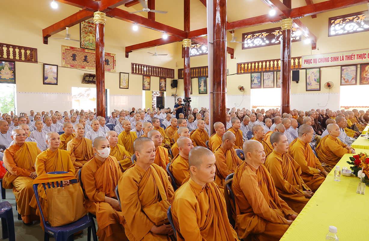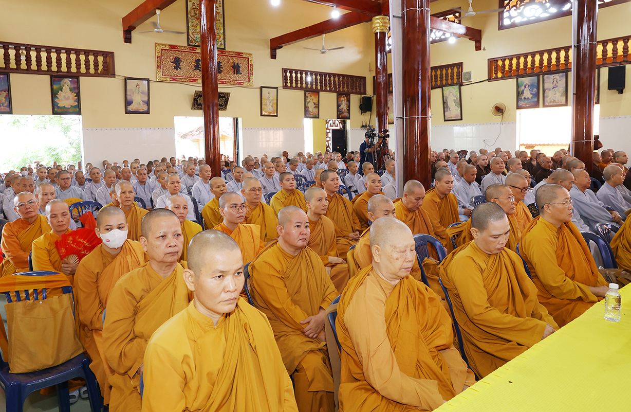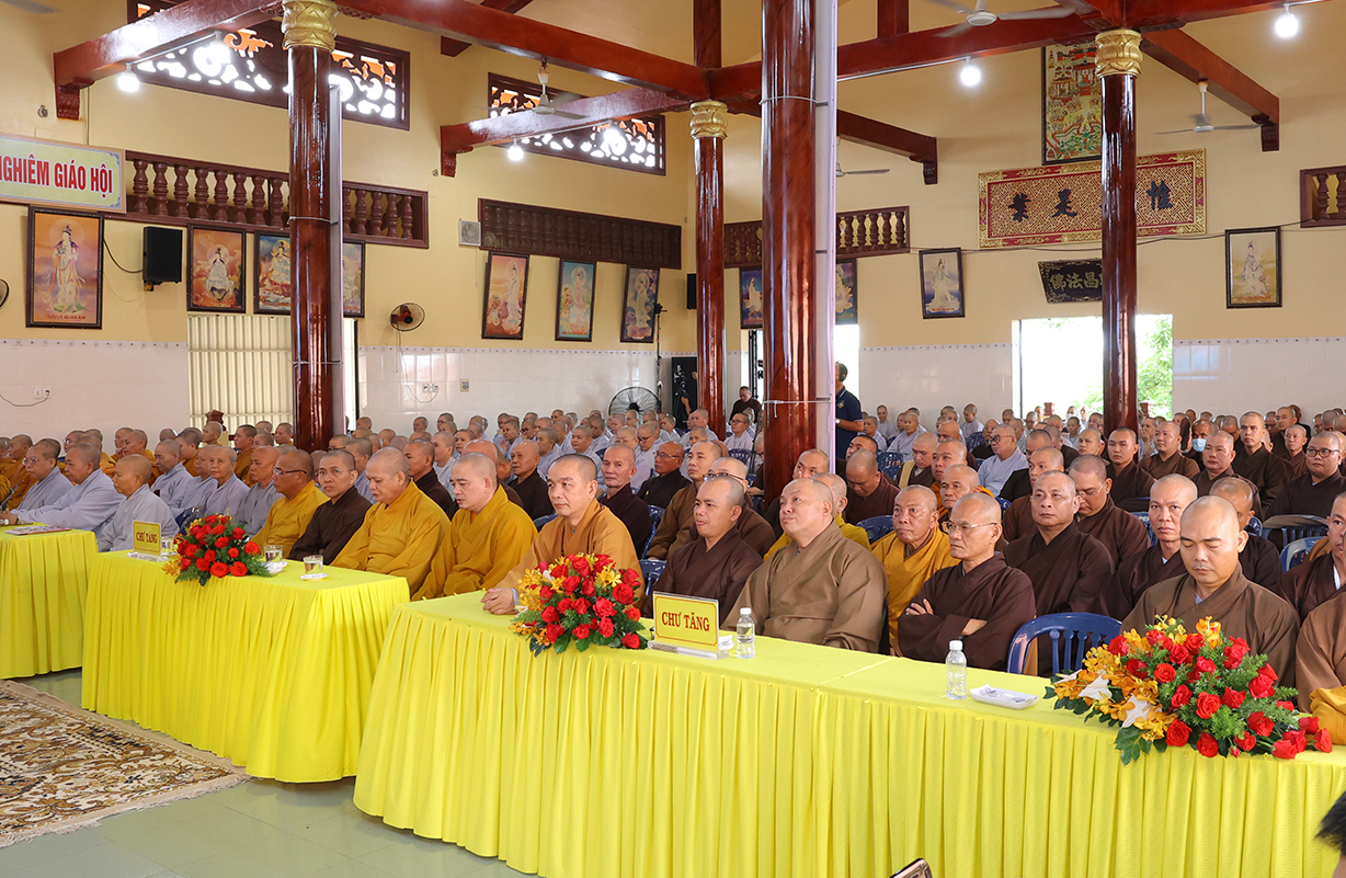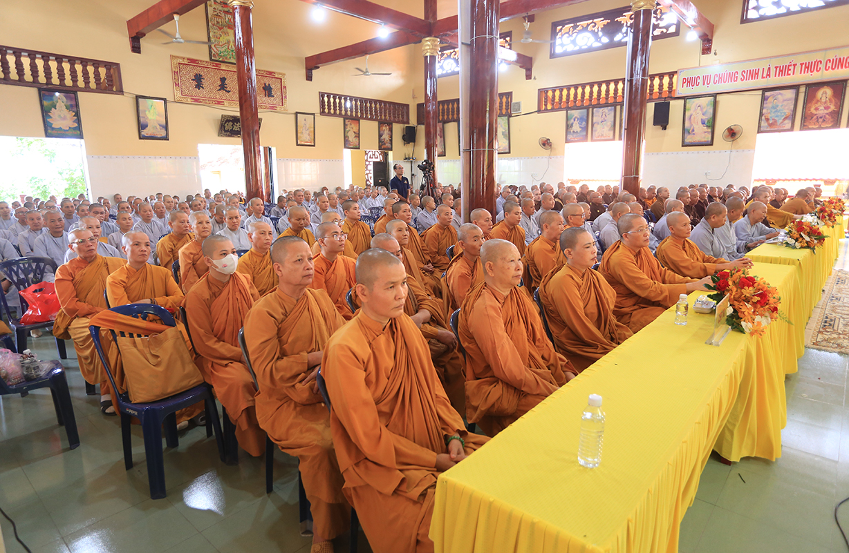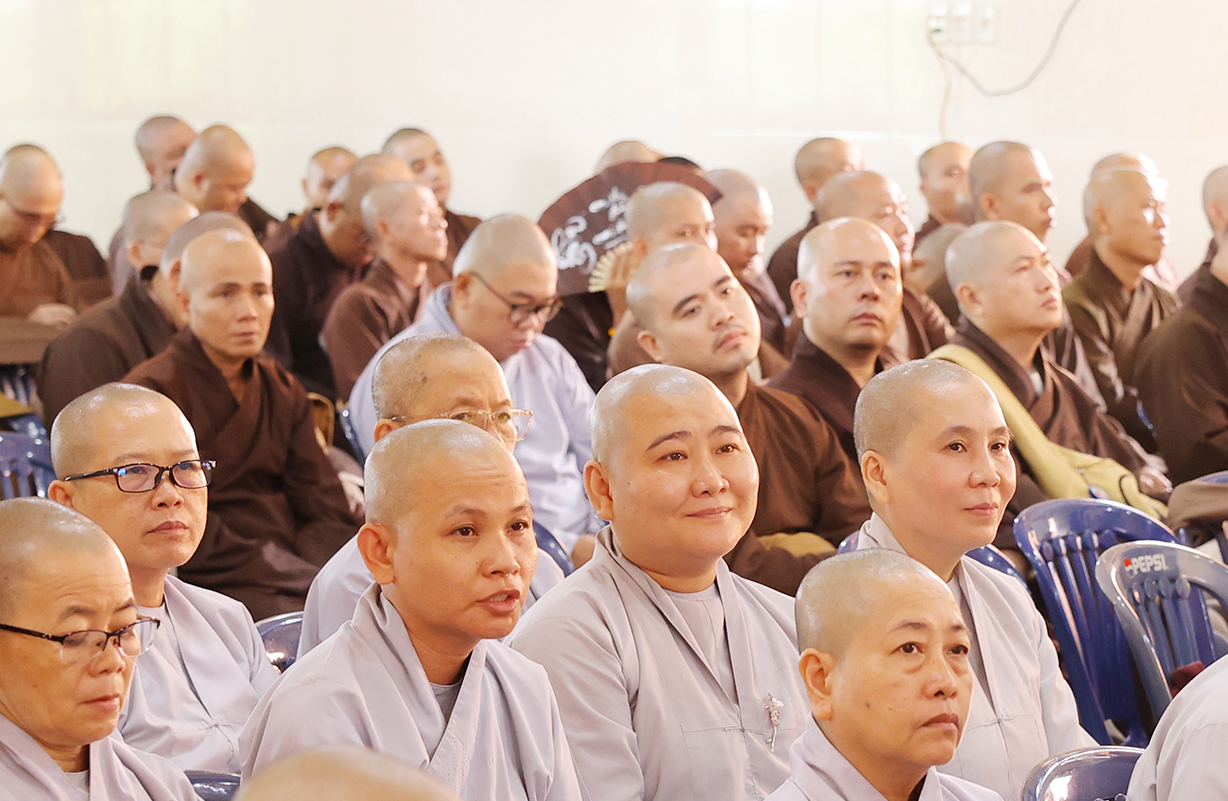 Theo đó, Sau lễ khai mạc, Chư Tôn đức giáo phẩm Hội đồng Trị sự GHPGVN, Ban Trị sự GHPGVN tỉnh Long An và báo cáo viên của đại diện Ban Tôn giáo, giảng viên Trường đại học FPT, Trường Đại học Khoa học Xã hội và Nhân văn thuyết giảng và triển khai  nhiều chuên đề như: Hòa thượng Thích Thiện Thống, Phó Chủ tịch Hội đồng Trị sự, Phó Trưởng ban kiêm Chánh Thư ký Ban Tăng sự TƯ, triển khai “Quy chế Hoạt động Ban Tăng sự TƯ”; Thượng tọa Thích Tâm Hải, Trưởng ban TTTT GHPGVN Tp HCM, Tổng biên tập Báo Giác Ngộ, chia sẻ “Một số vấn đề về truyền thông Phật giáo hiện tại”.Ông Nguyễn Văn Mưng, Trưởng ban Tôn giáo tỉnh Long An, triển khai “Luật tín ngưỡng tôn giáo và Nghị định 95”. Đại đức Thích Lệ Ngôn, Phó Trưởng ban kiêm Trưởng ban Hoằng pháp GHPGVN tỉnh, chia sẻ “Việc học Phật pháp và ứng dụng trong đời sống Tăng Ni”.