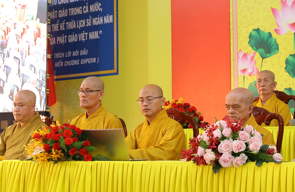 Thượng toạ Thích Lệ Trí, Uỷ viên Hội đồng Trị sự, Phó Trưởng ban Văn hoá TƯ, Phó ban Trị sự kiêm Trưởng ban Giáo dục Phật giáo GHPGVN tỉnh Long An thuyết trình “ Sứ mệnh giáo dục của Trụ trì tại tự viện”. Đỗ Văn Học, Chủ nhiệm bộ môn Văn thư lưu trữ và Quản trị văn phòng Trường Đại học Khoa học Xã hội và Nhân văn Tp Hồ Chí Minh triển khai về “Nghị định 30 về công tác văn thư và kỹ năng soạn thảo văn bản hành chánh”. Thượng toạ Thích Minh Nhẫn, Uỷ viên Thư ký Hội đồng Trị sự, Phó Chánh Văn phòng 2 TƯ, Phó Trưởng ban Thường trực Ban Trị sự GHPGVN tỉnh Kiên Giang, chia sẻ “Sử dụng mạng xã hội tích cực theo tư tưởng đạo đức của Phật giáo và ứng dụng trong công tác hoằng pháp trong thời đại kỷ nguyên số”. Thạc sĩ Lê Anh Tiến, Giảng viên Trường Đại học FPT, Tổng Giám đốc công ty cổ phần công nghệ Chatbot Việt Nam, thuyết trình chủ đề “Ứng dụng AI tạo sinh trong dạy học”. Đại đức Thích Lệ Duyên, Phó Trưởng ban, Chánh Thư ký Ban Trị sự GHPGVN tỉnh Long An; Đại đức Thích Thiện Danh, Phó Thư ký, Chánh Văn phòng Ban Trị sự GHPGVN tỉnh Long An và cư sĩ Lệ Kiệt, Phó Thư ký, Phó Văn phòng Ban Trị sự GHPGVN tỉnh Long An “Hướng dẫn thủ tục hành chánh Giáo hội tại tỉnh Long An”. Thượng toạ Thích Nhật Từ, Uỷ viên Thường trực Hội đồng Trị sự, Phó Viện trưởng Thường trực Học viện Phật giáo Việt Nam tại Tp Hồ Chí Minh, với pháp thoại “Kỹ năng quản trị Tự viện”. Nhà báo Huỳnh Diệu, Phó Thư ký toà soạn Báo Giác Ngộ, chia sẻ “Kỹ năng cơ bản viết tin, bài cho báo, trang thông tin điện tử”. Hoà thượng Thích Viên Giác, Cố vấn Ban Hoằng pháp GHPGVN Tp HCM, thuyết giảng chủ đề “Nhiệm vụ của Trụ trì”.