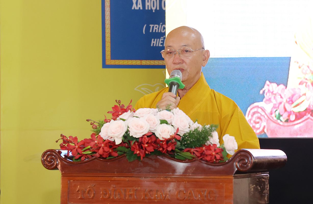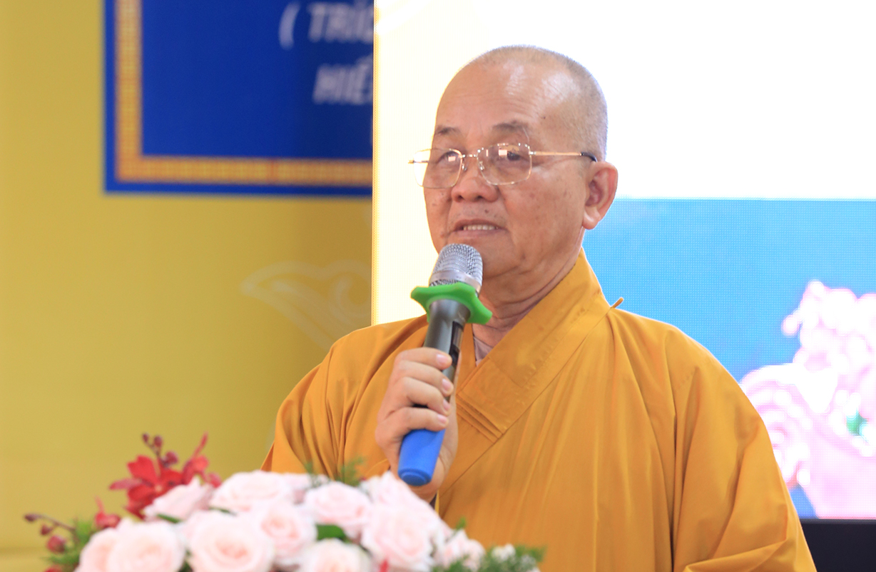 Hòa thượng Thích Minh Thiện có lời phát biểu chỉ đạo tại buổi lễ: Hòa thượng nhấn mạnh vai trò của vị trụ trì trong thực tại và vô cùng quan trọng, Hòa thượng nêu ra các nội dung đã được Chư Tôn đức và giảng sư đã triển khai, đòi hỏi chư tôn đức khóa sinh cần phải lĩnh hội, thực tập và ứng dụng vào quá trình hoằng pháp lợi sinh, Ngài nhắc nhở Chư Tôn đức Tăng Ni phải luôn luôn kế thừa, lưu giữ và phát huy truyền thống văn hóa Phật giáo tại Việt Nam, phù hợp với tôn chỉ hiến chương Giáo hội, đa dang với truyền thống bộ phái, pháp môn hành trì của Phật giáo, bên cạnh việc tiếp Tăng độ chúng, giáo dục, hoằng pháp, ứng phó đạo tràng, phù hợp với mọi thời đại, xây dụng tự viện Phật giáo trở thành môi trường giáo dục tốt đẹp, định hướng con người hiểu rõ về đạo Phật, thực thi lời Phật dạy trong cuộc sống để có lối sống lành mạnh, đạo đức, văn hóa, xây dựng Phật giáo luôn phát triển hùng mạnh, hộ trì Tam Bảo mãi trường tồn tại thế gian, theo lời kinh Chuyển Pháp Luân và các bài Kinh quan trọng mà Đức Phật đã truyền dạy.