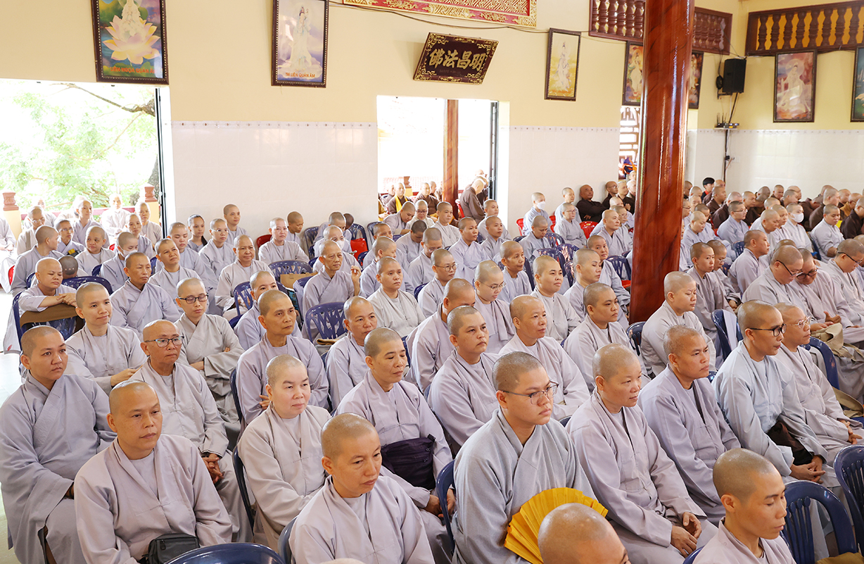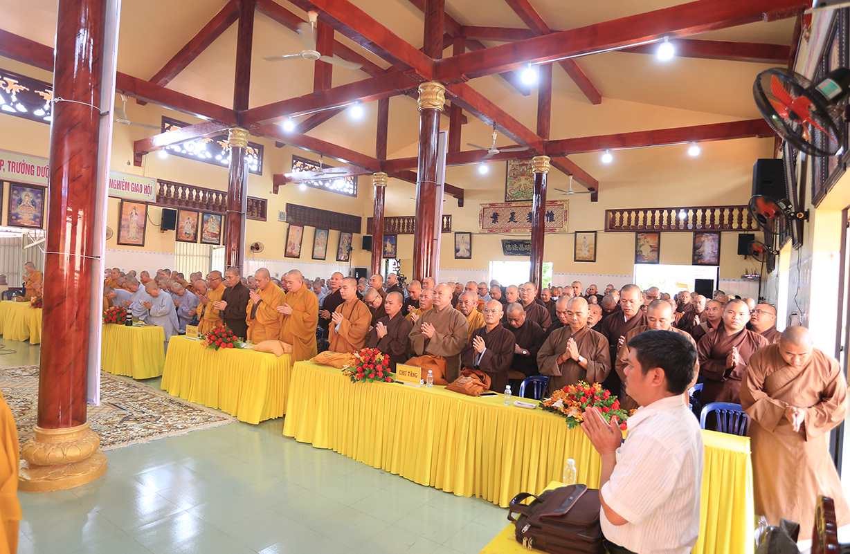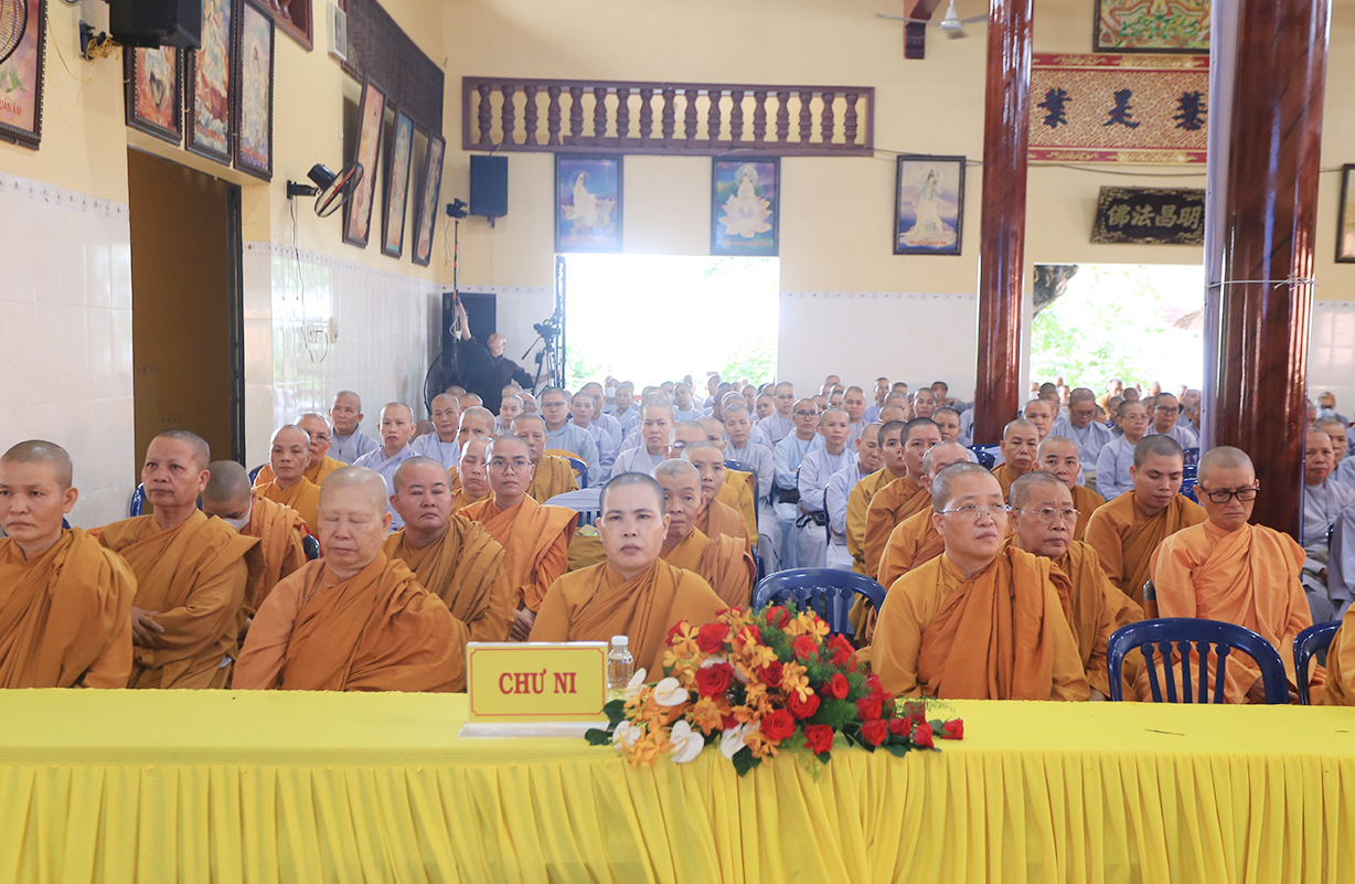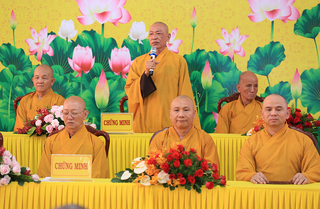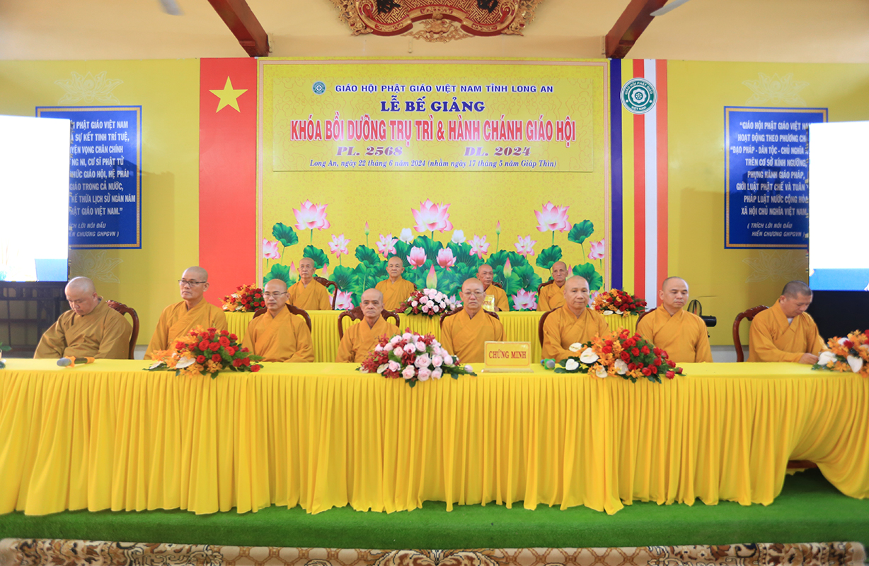 Chứng minh buổi lễ, Hòa thượng Thích Thiện Huệ – Thành viên Hội đồng Chứng minh, Chứng minh Ban Trị sự GHPGVN tỉnh Long An ban lời đạo từ: Hòa thượng tán dương công đức Hòa thượng Trưởng Ban tổ chức đã luôn nhất quán trong con đường lãnh đạo giáo hội, tổ chức khoas học hằng năm nhằm bồi dưỡng và đào tạo Tăng Ni tỉnh nhà để thực hiện đúng theo quy chế của giáo hội và pháp luật của nahf nước, bên cạnh đó tán dương Chư tôn đức đã sắp xếp thời gian tại Tự viên và công tác Phật sự tại địa phương để hòa thành tốt khóa học, Ngài sách tấc Tăng Ni trong toàn tỉnh luôn đoàn kết chung tay, tôn trọng tổ chức Phật giáo của mình để xây dựng Phật giáo tỉnh nhà luôn phát triển tốt đẹp.