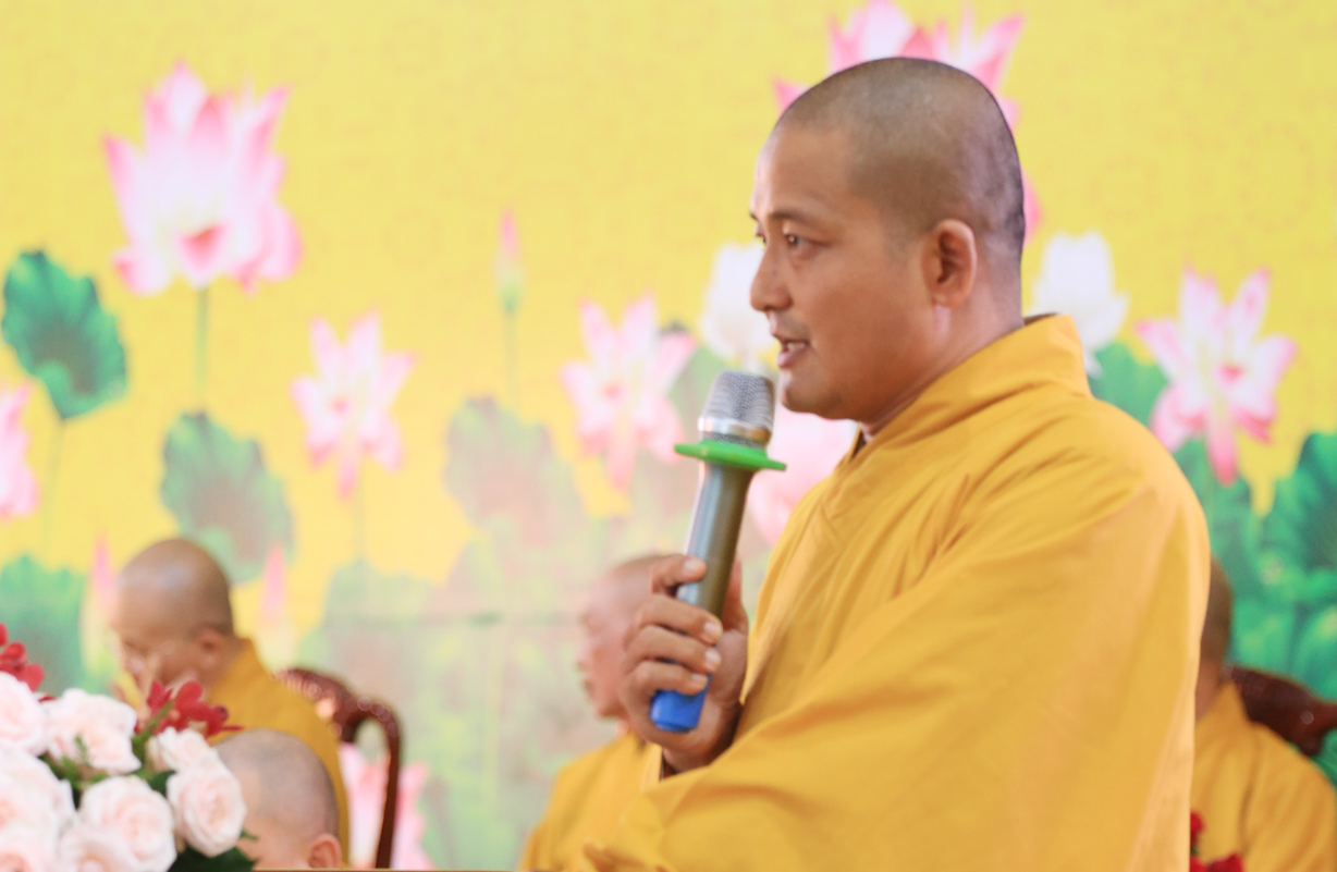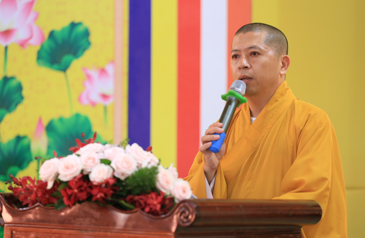 Thượng tọa Thích Quảng Tâm – Phó Trưởng ban Tổ chức phát biểu cảm tạ. Buổi lễ bế mạc kết thúc trên tinh thần hoan hỷ,  đoàn kết, hòa hợp, thanh tịnh.