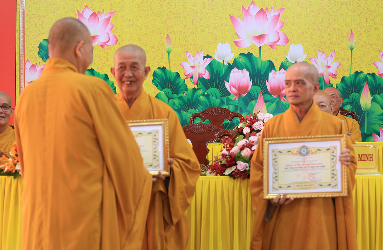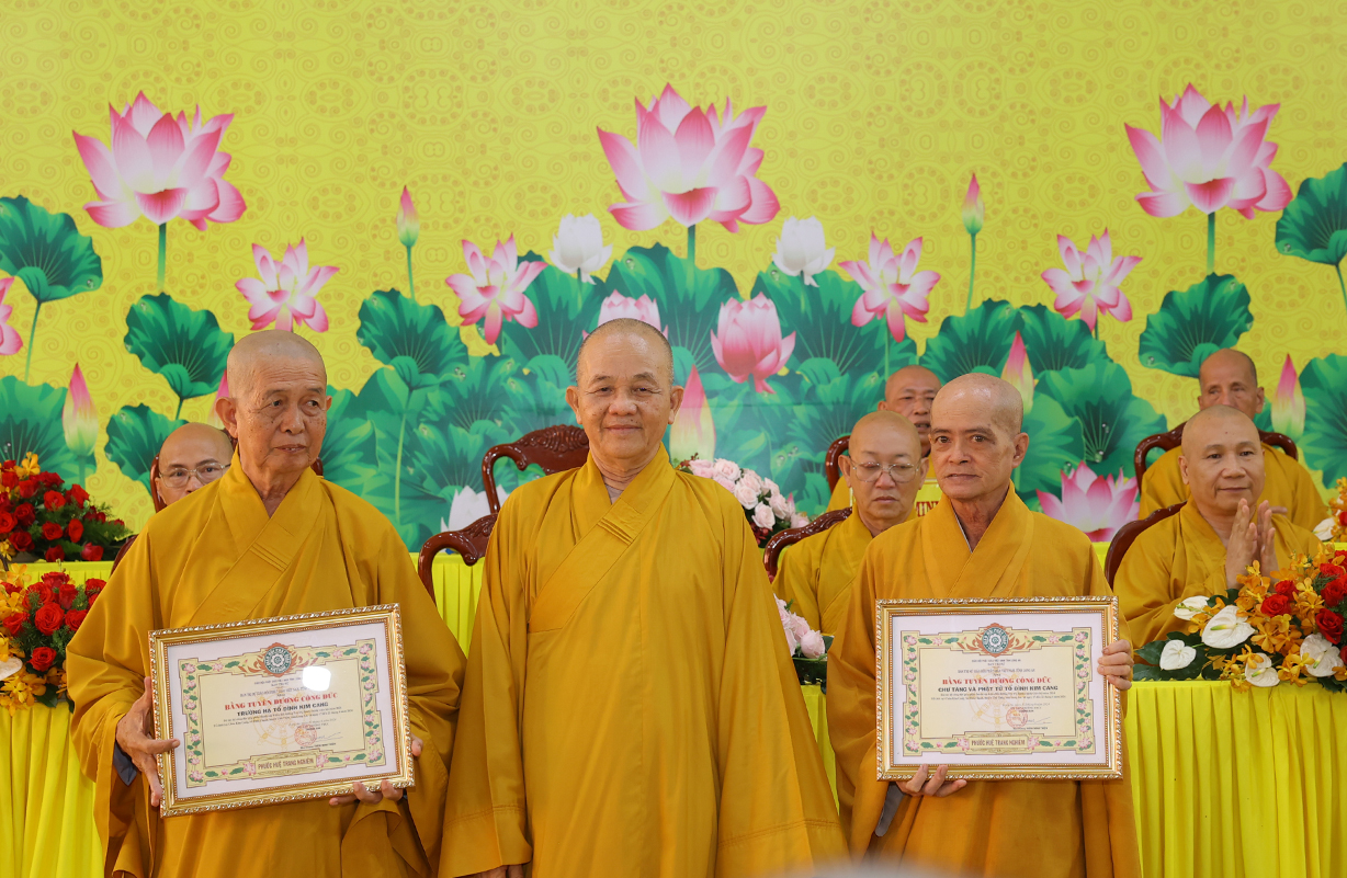 Ghi nhận sự đóng góp tích cực của Chư tôn đức và quý Phật tử, Ban Trị sự GHPGVN tỉnh Long An đã tặng Bằng Công Đức đến 2 tập thể tiêu biểu: Chư Tăng và Phật tử Tổ đình Kim Cang, Trường hạ Tổ đình Kim Cang.