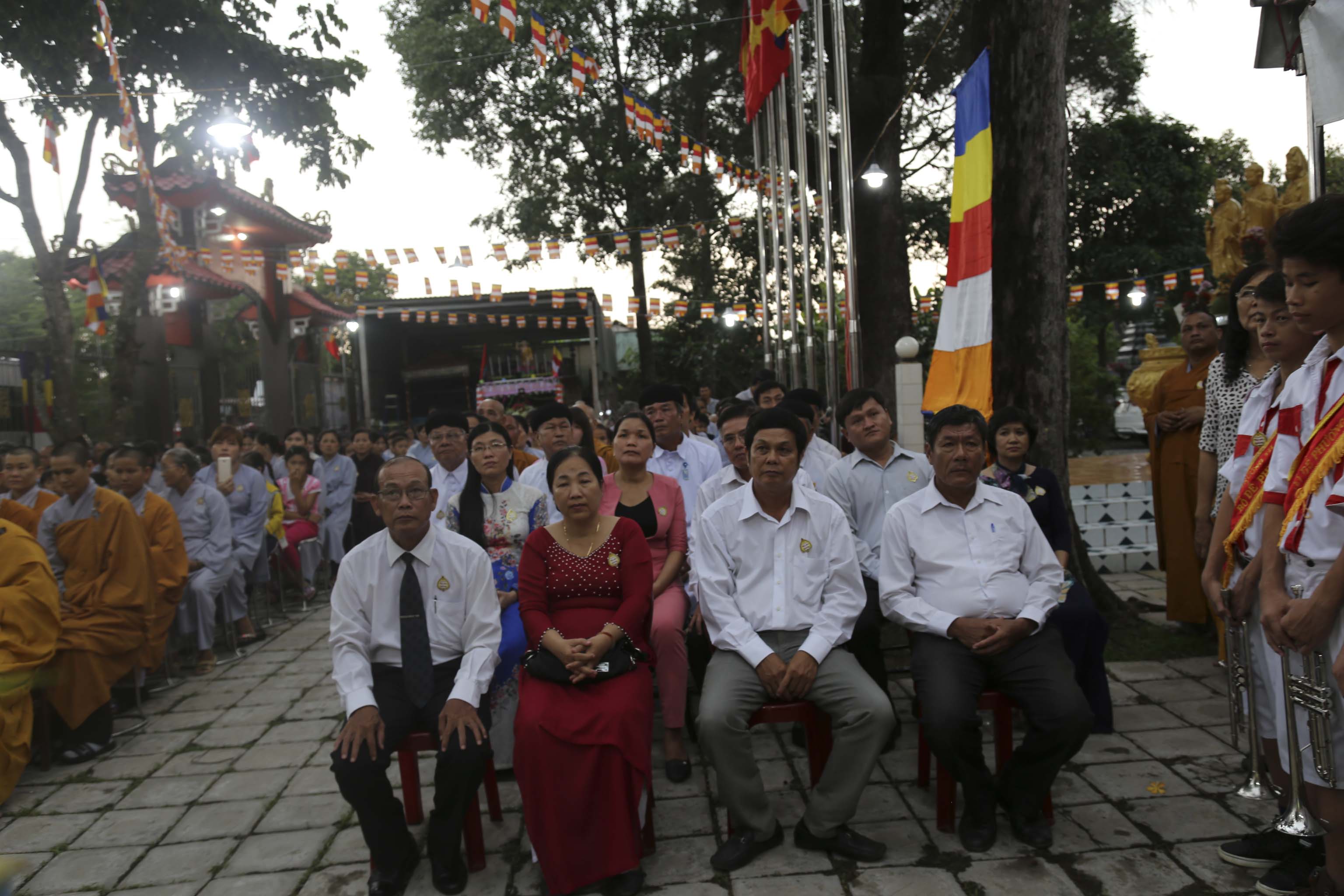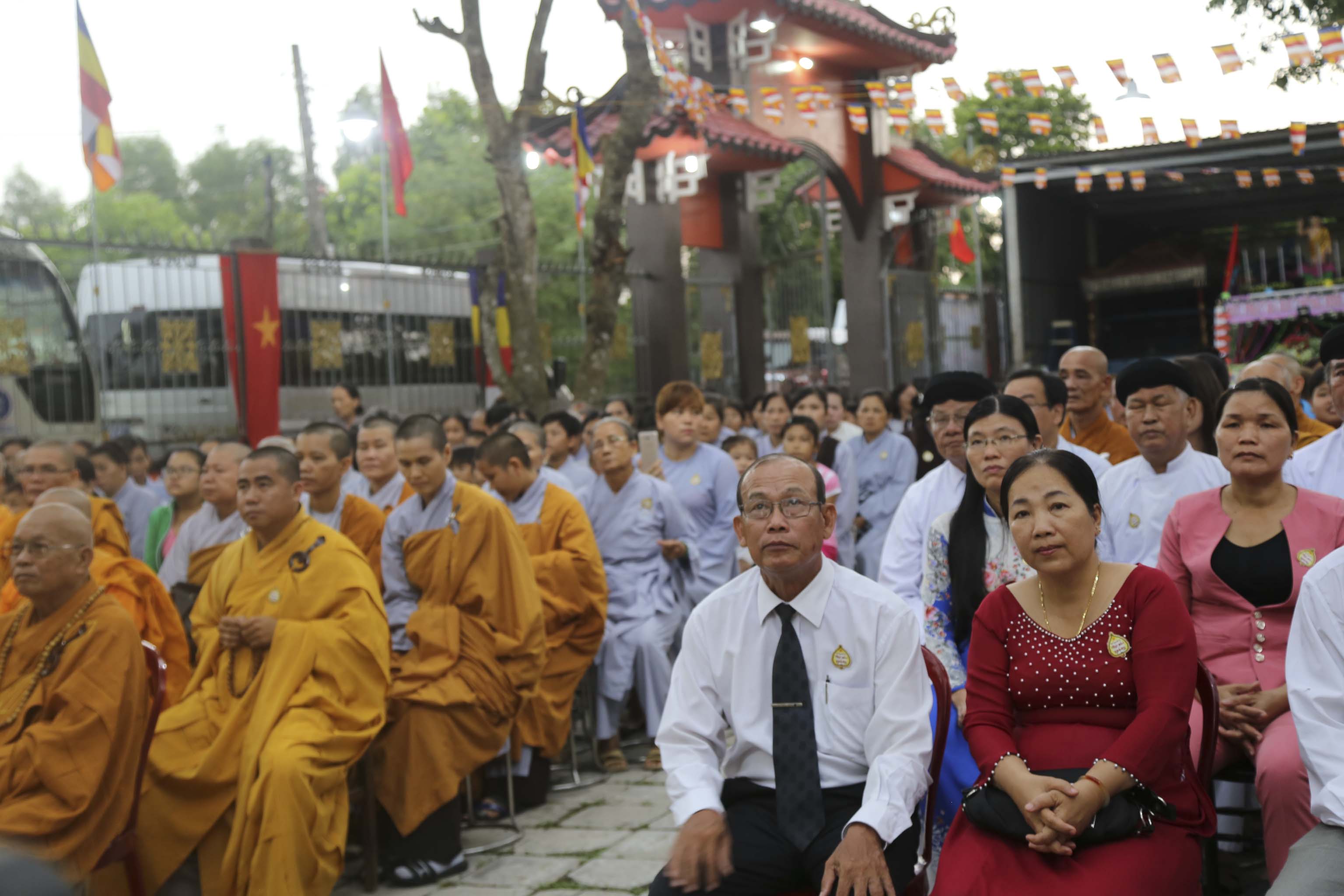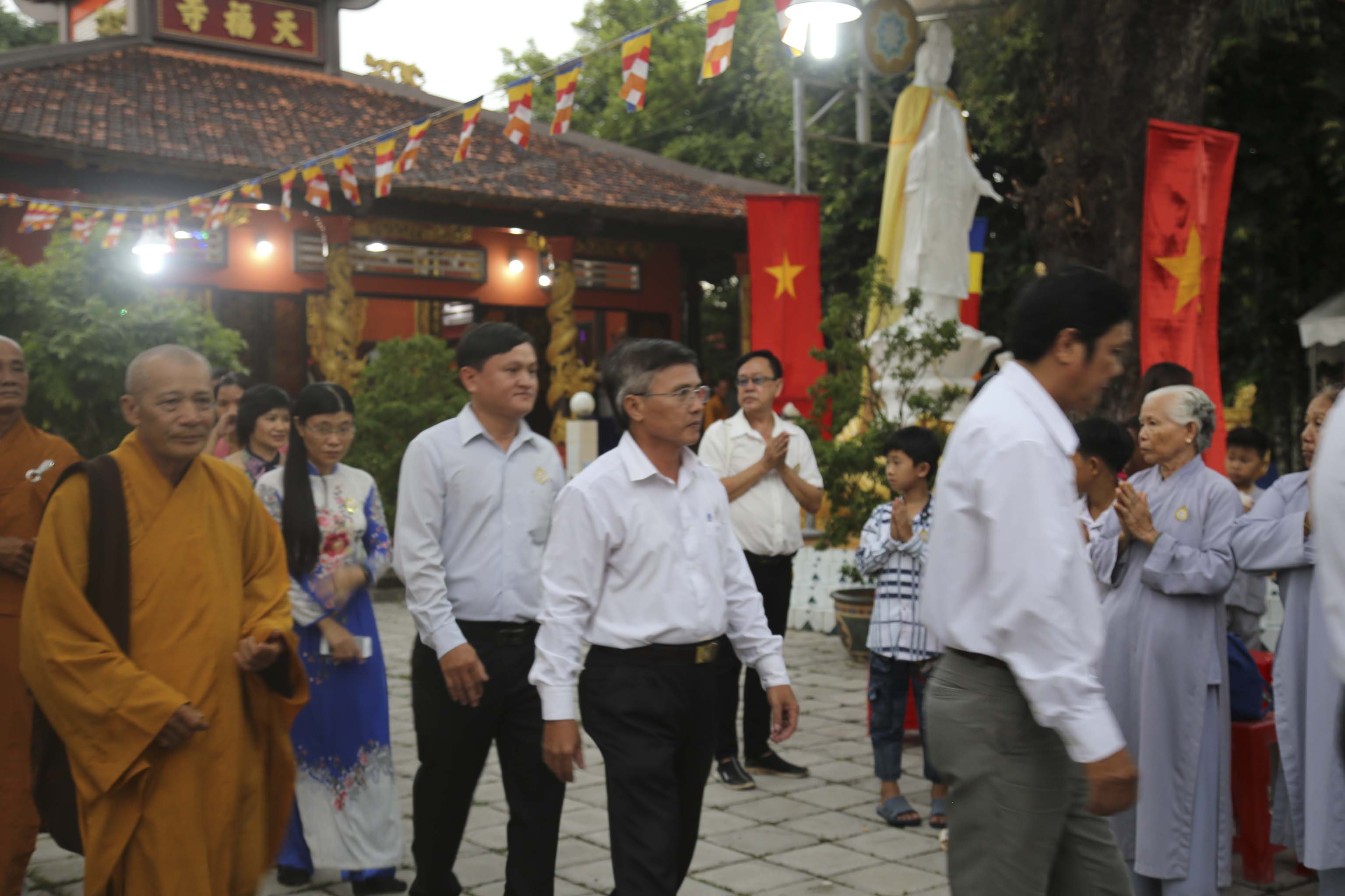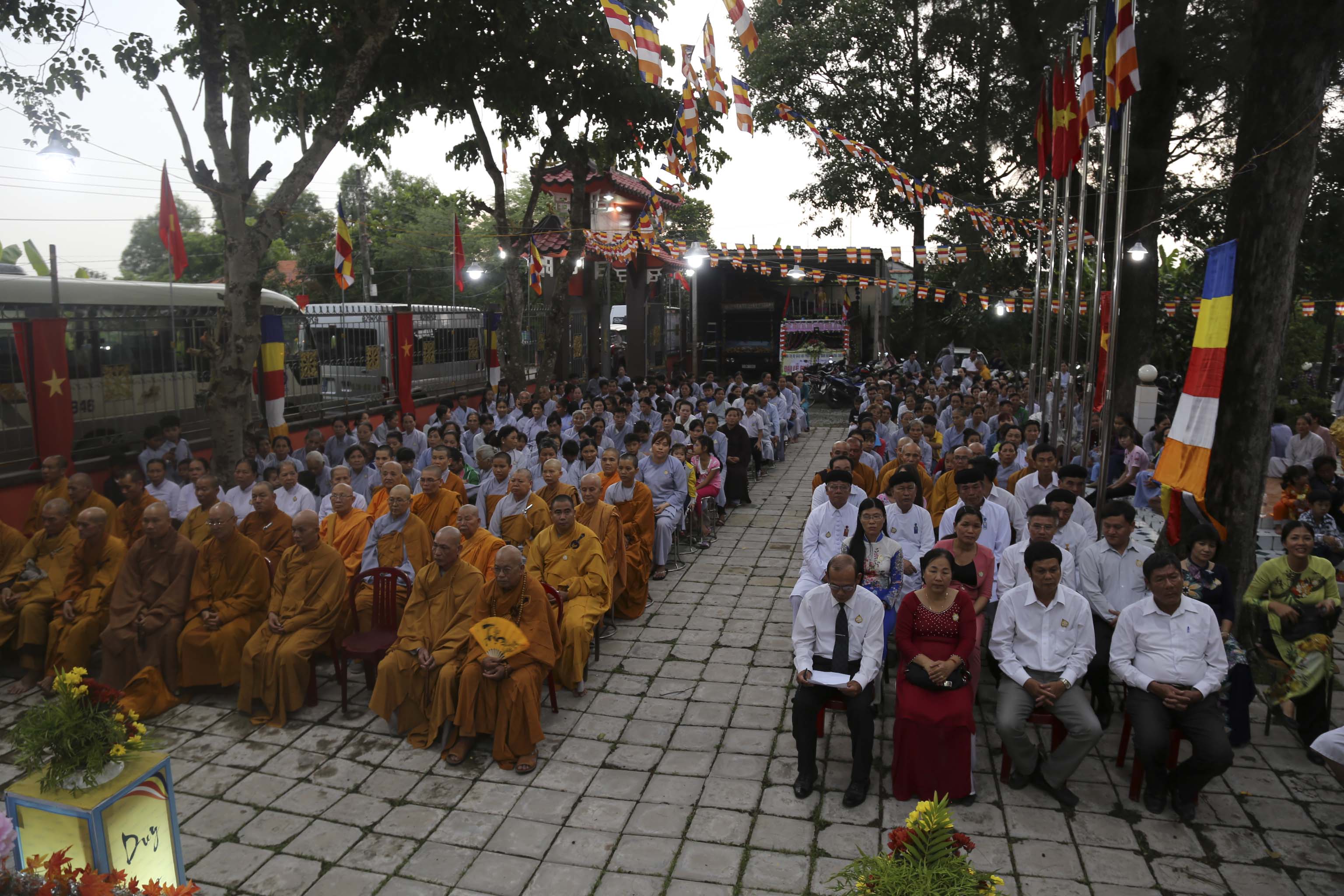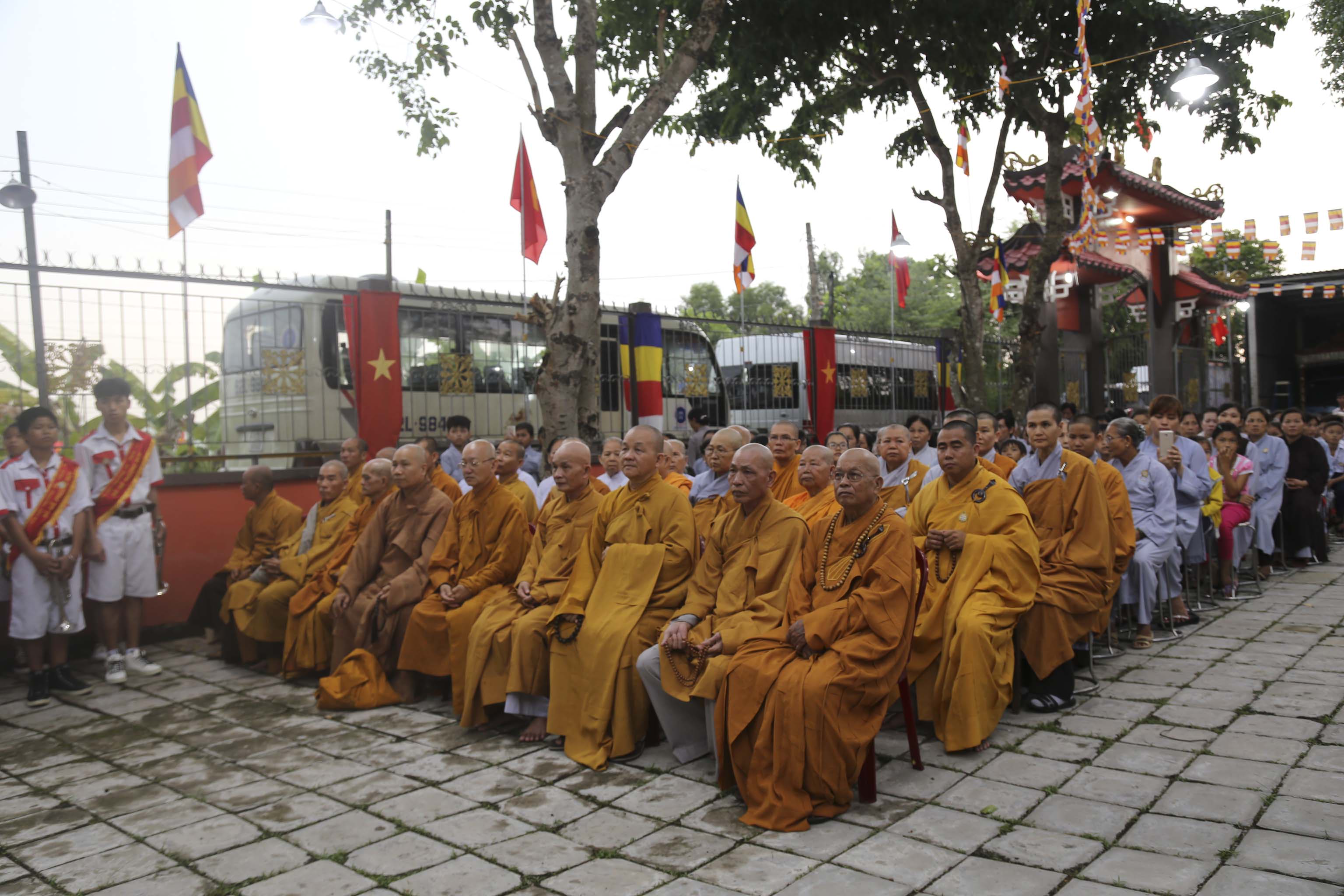 Vào lúc 16g, chư Tôn đức Tăng Ni và hơn 300 Phật tử huyện nhà đồng vân tập về chùa Thiên Phước. Đúng 17g, Ban nghi lễ trân trọng cung thỉnh chư Tôn đức Giáo phẩm quang lâm hội trường chứng minh Lễ khai mạc. Các Phật tử đồng trang nghiêm hai hàng cung nghinh quý Ngài.
