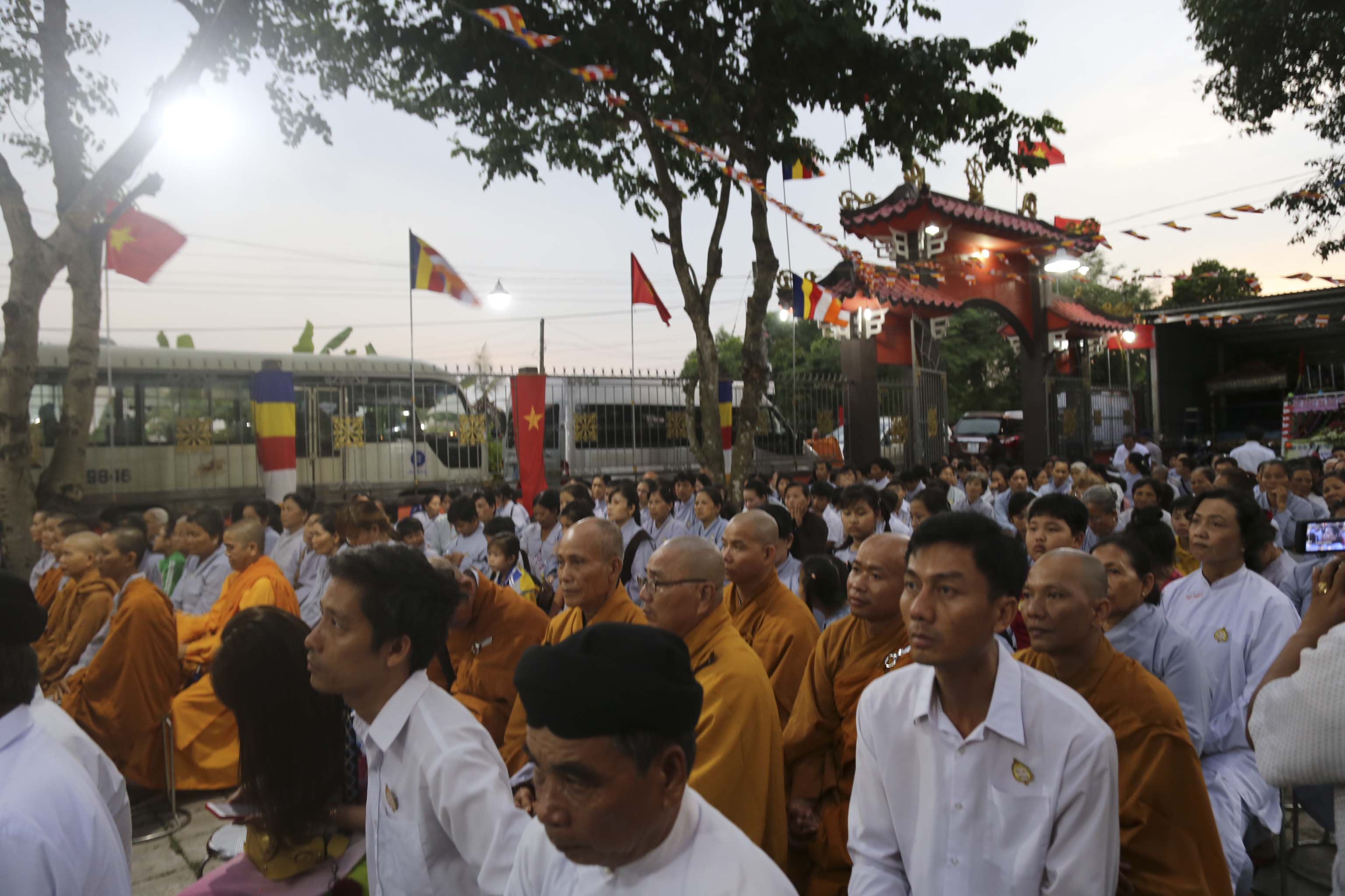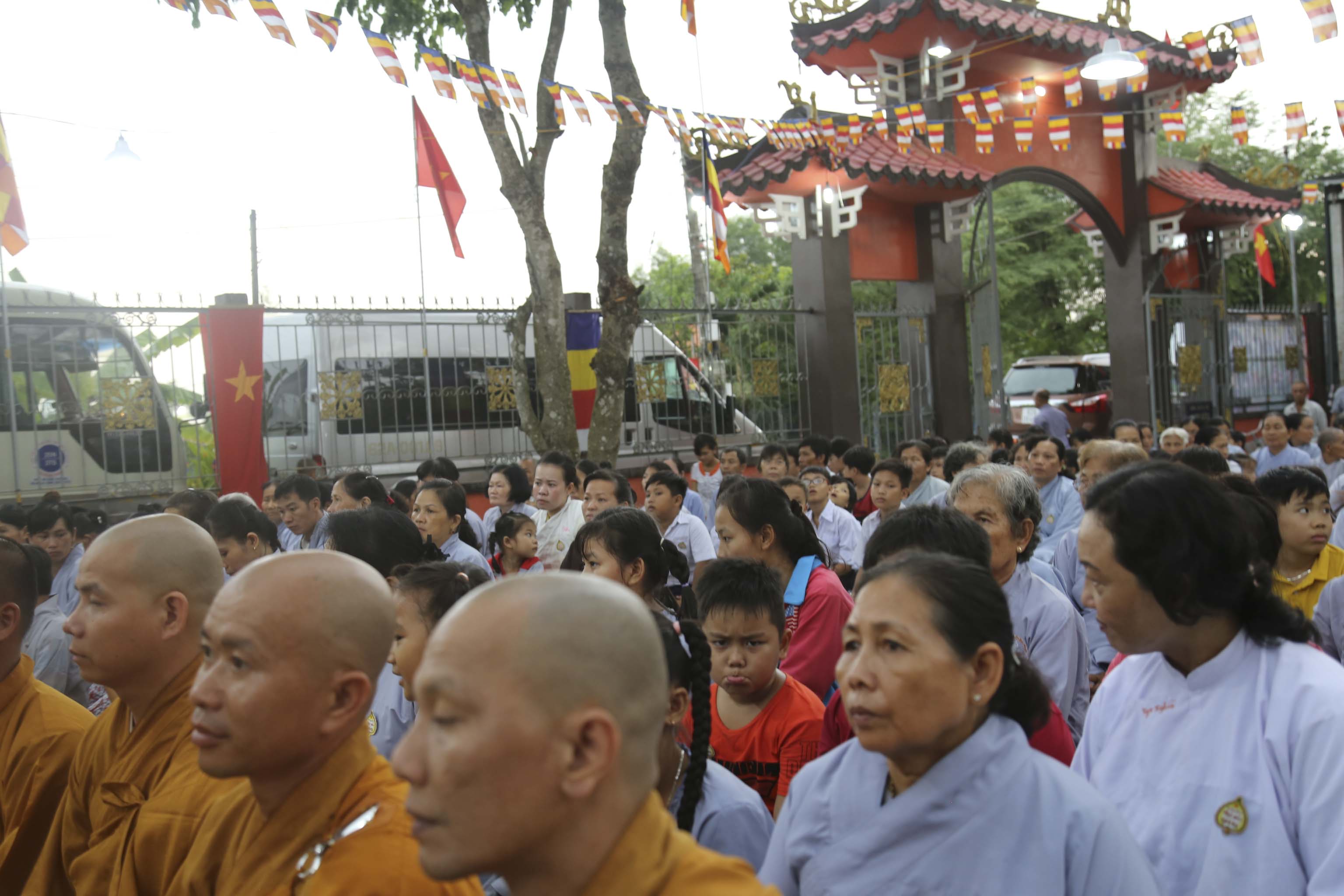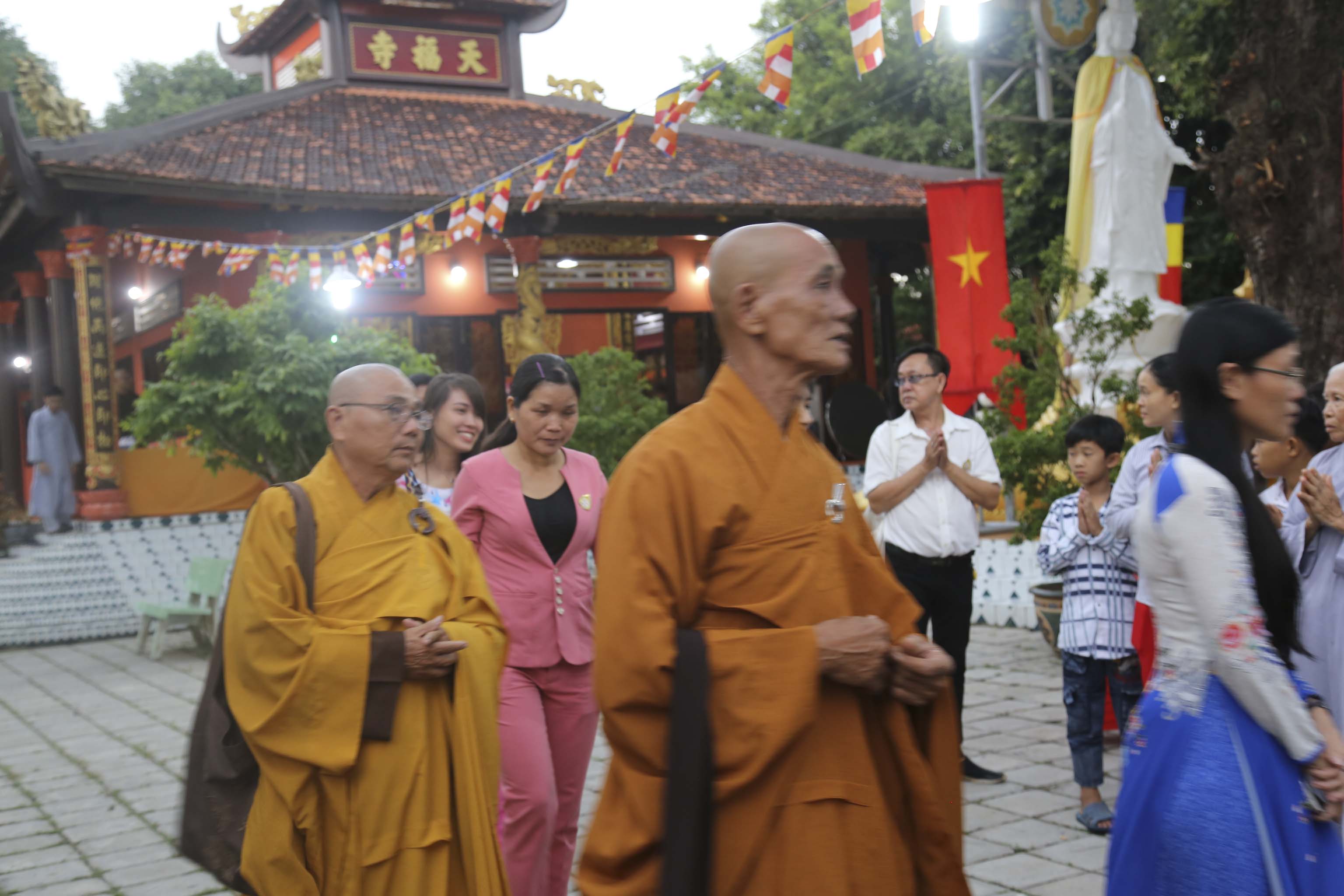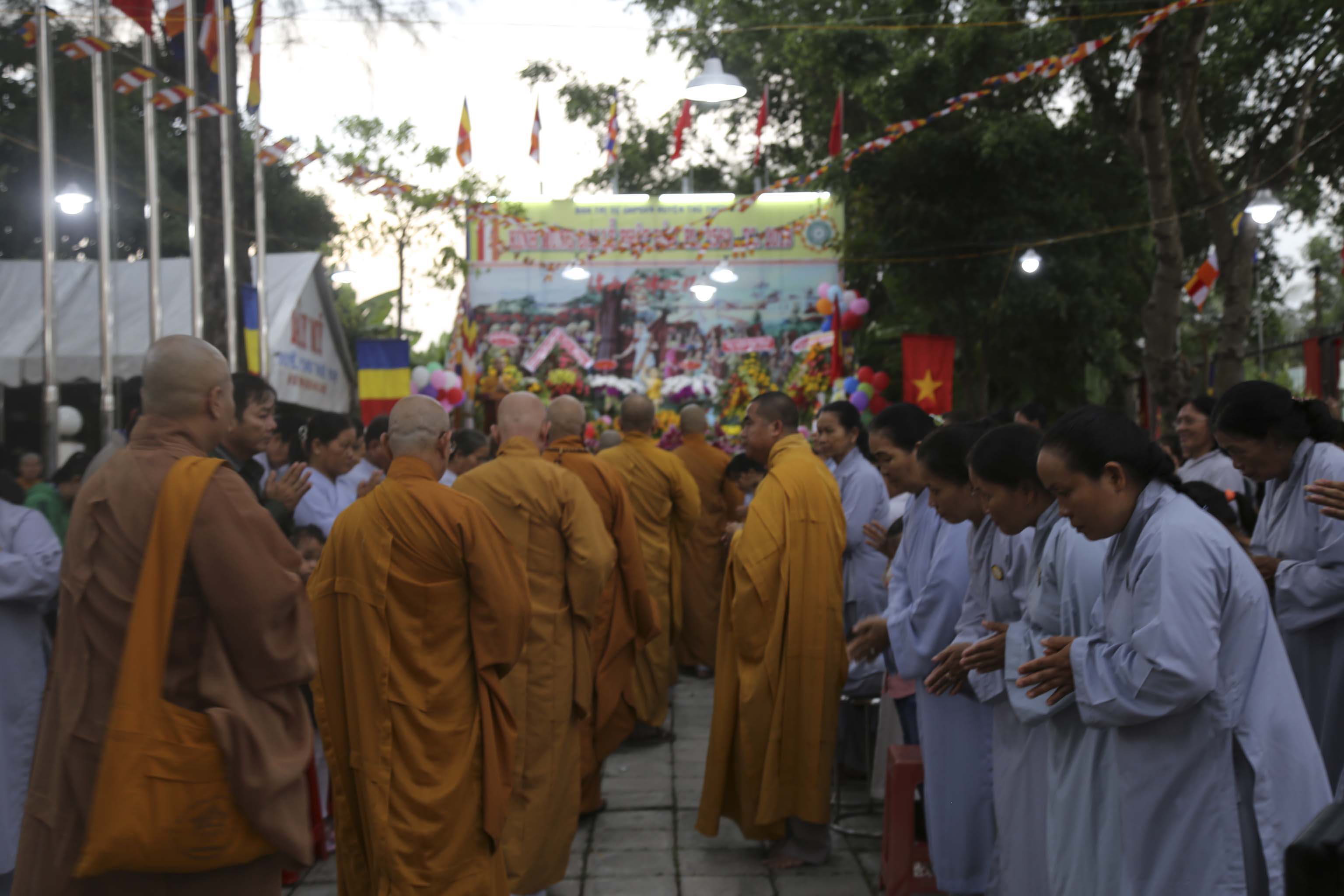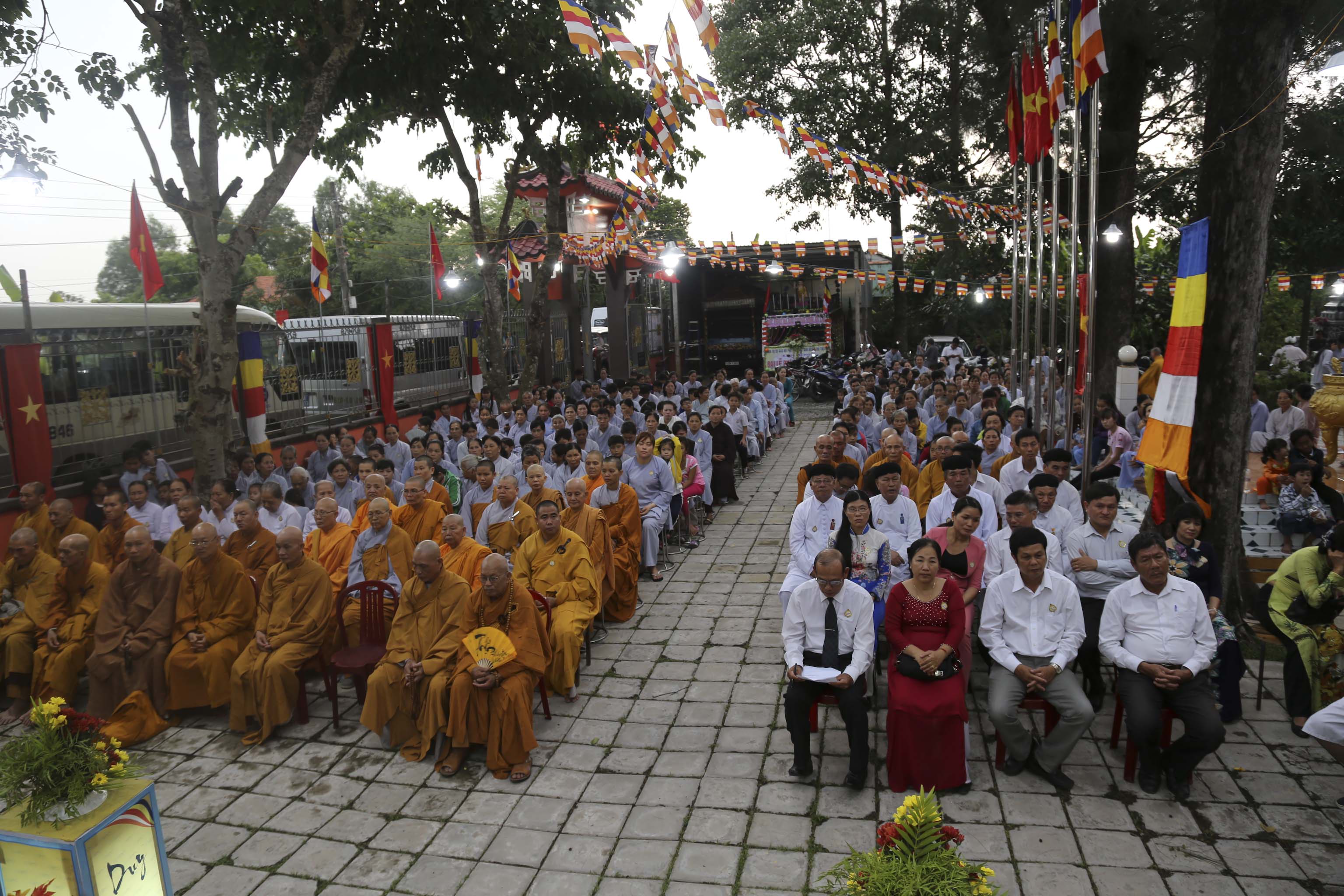 Vào lúc 16g, chư Tôn đức Tăng Ni và hơn 300 Phật tử huyện nhà đồng vân tập về chùa Thiên Phước. Đúng 17g, Ban nghi lễ trân trọng cung thỉnh chư Tôn đức Giáo phẩm quang lâm hội trường chứng minh Lễ khai mạc. Các Phật tử đồng trang nghiêm hai hàng cung nghinh quý Ngài.