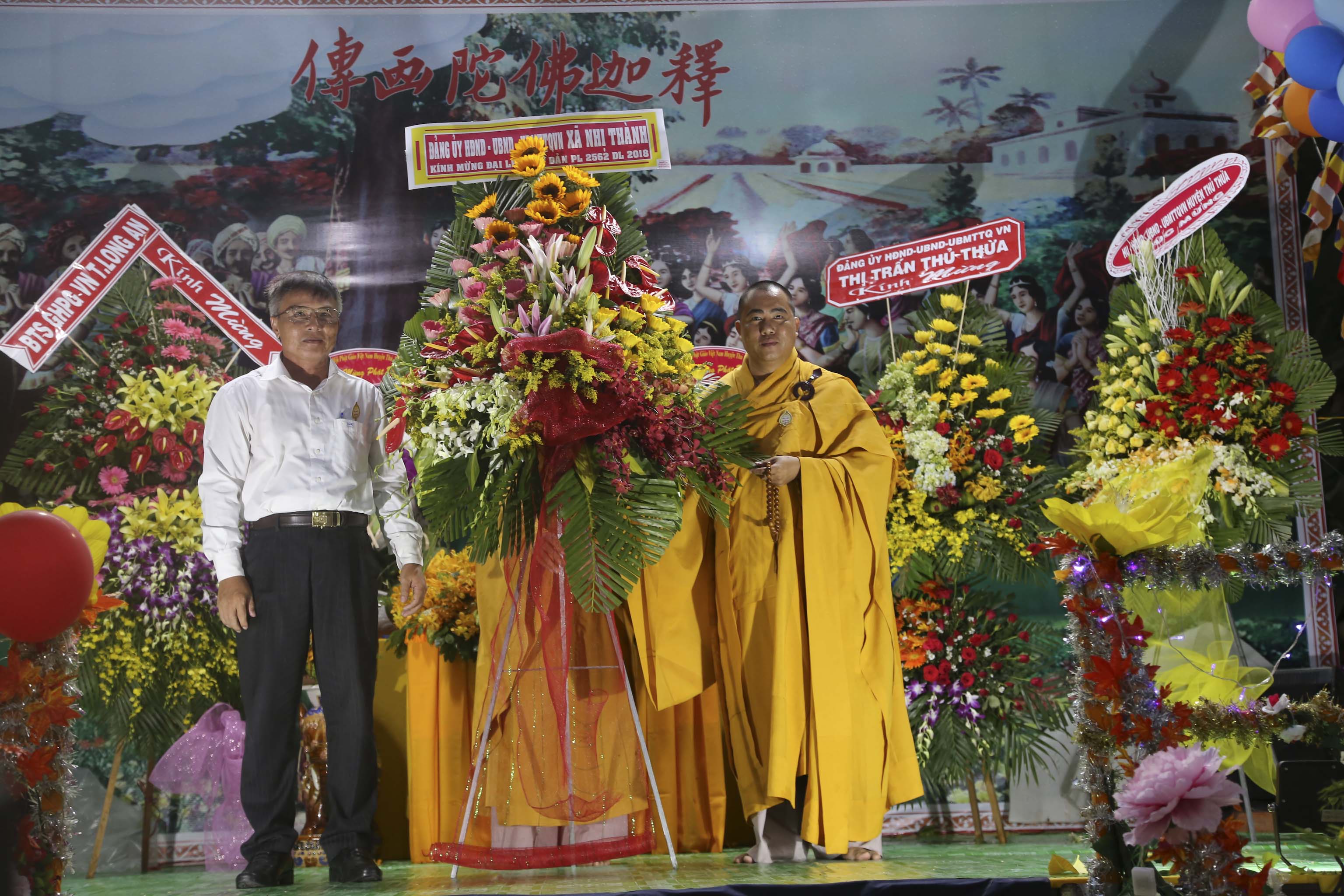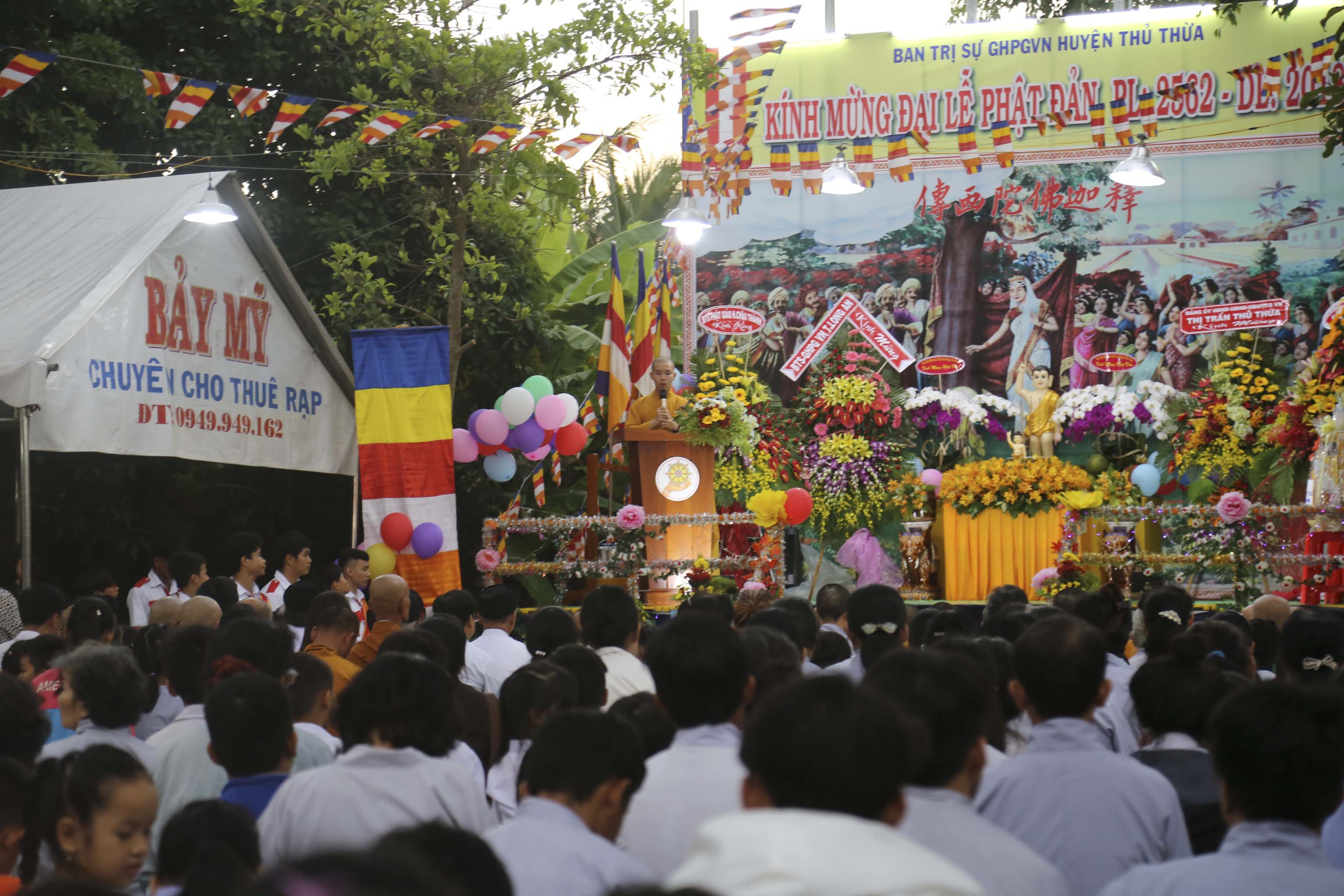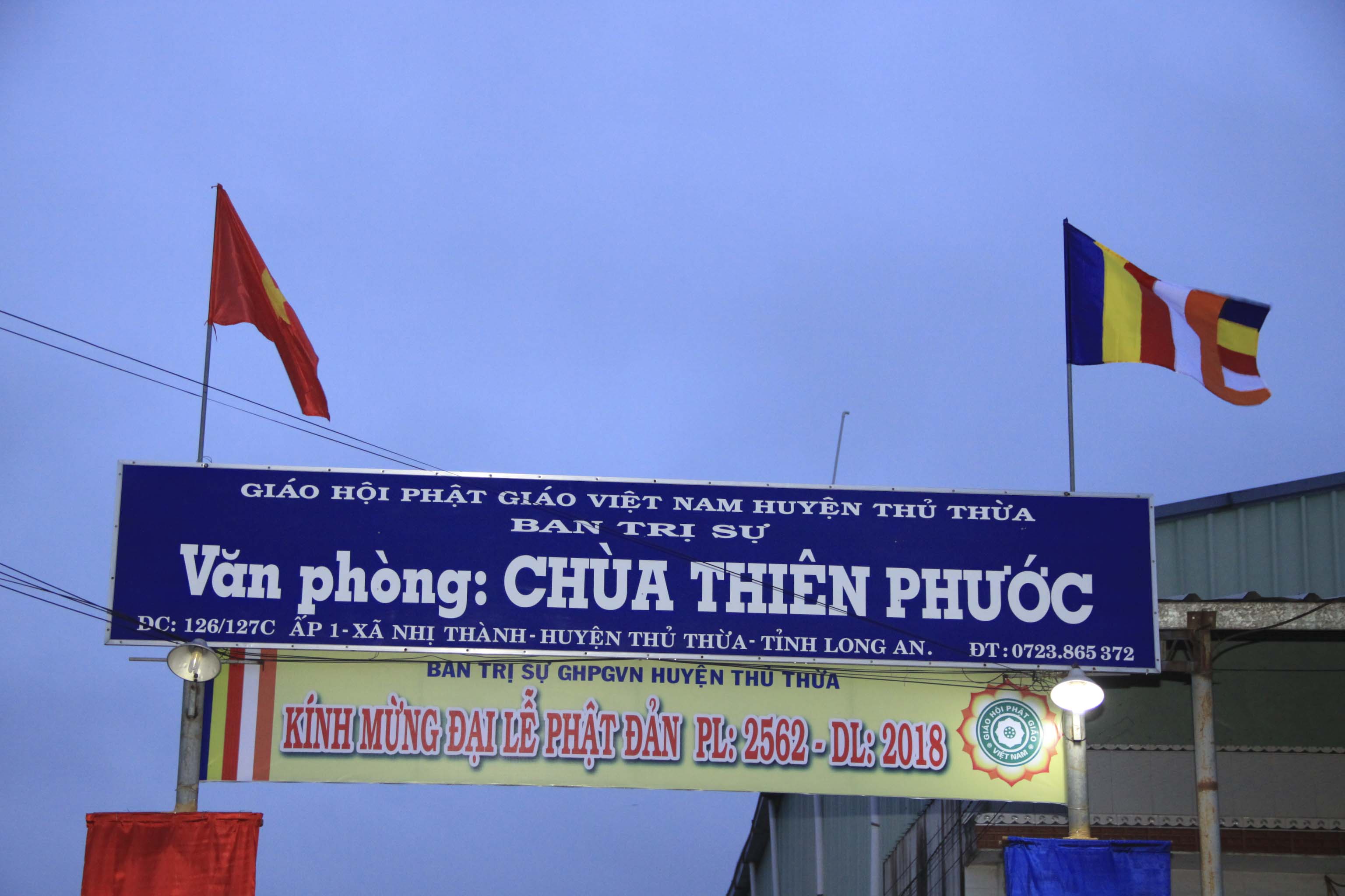 Chiều ngày 27/5/ 2018 (13/4/ Mậu Tuất), Ban Trị sự GHPGVN huyện Thủ Thừa long trọng tổ chức Đại lễ Kính mừng Đức Phật Đản sanh tại Hội trường chùa Thiên Phước, xã Nhị Thành, huyện Thủ Thừa, tỉnh Long An.