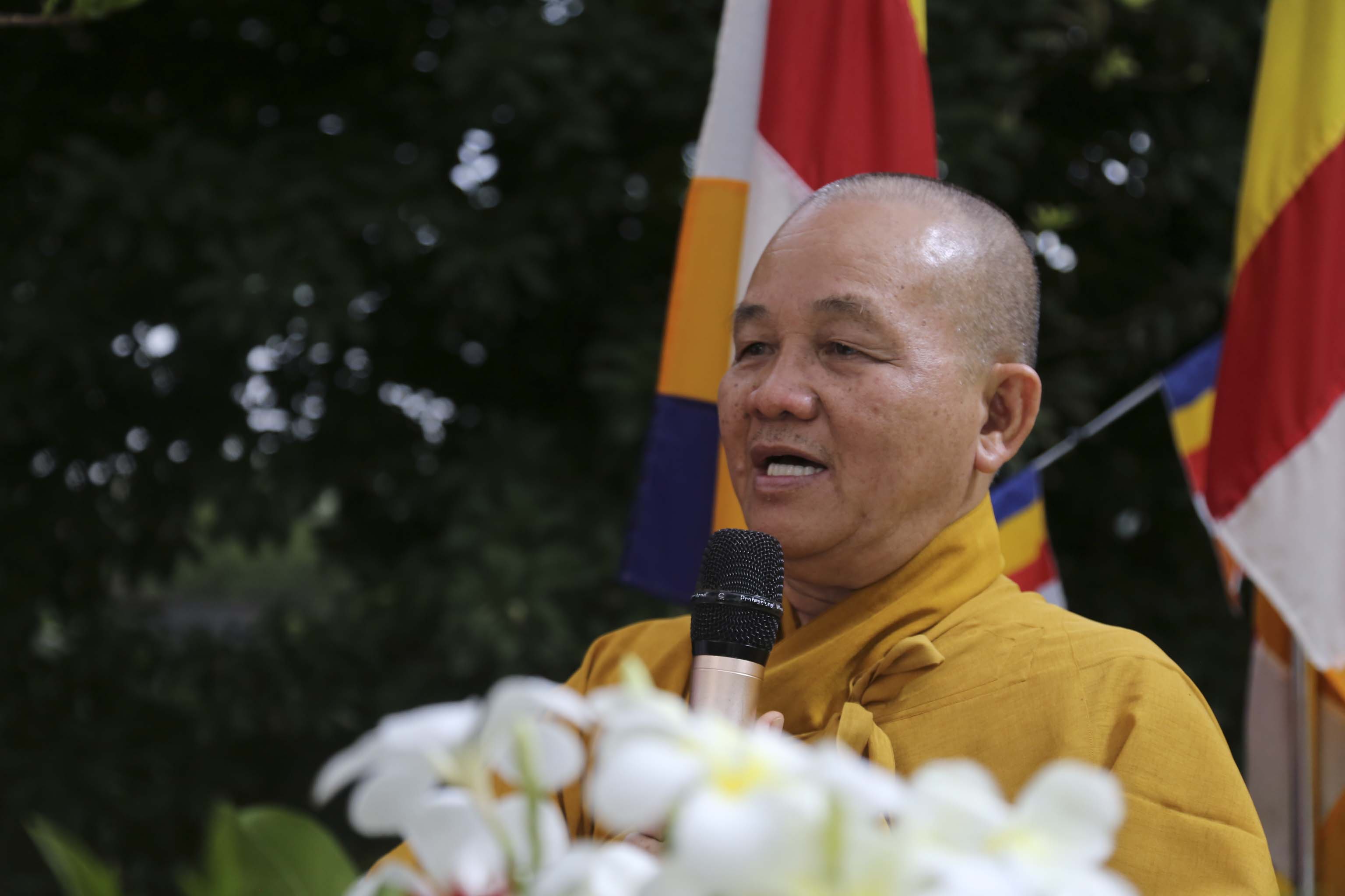 Trong giây phút trang trọng này, Ban tổ chức cũng đã cung thỉnh TT. Thích Quảng Tâm Phó ban thường trực BTS GHPGVN tỉnh Long An tuyên đọc lời Diễn văn kính mừng Phật đản của Hòa thượng Chủ tịch HĐTSTWW GHPGVN. Toàn thể chư Tăng Ni và Phật tử huyện Thủ Thừa đều trân trọng lắng nghe.
