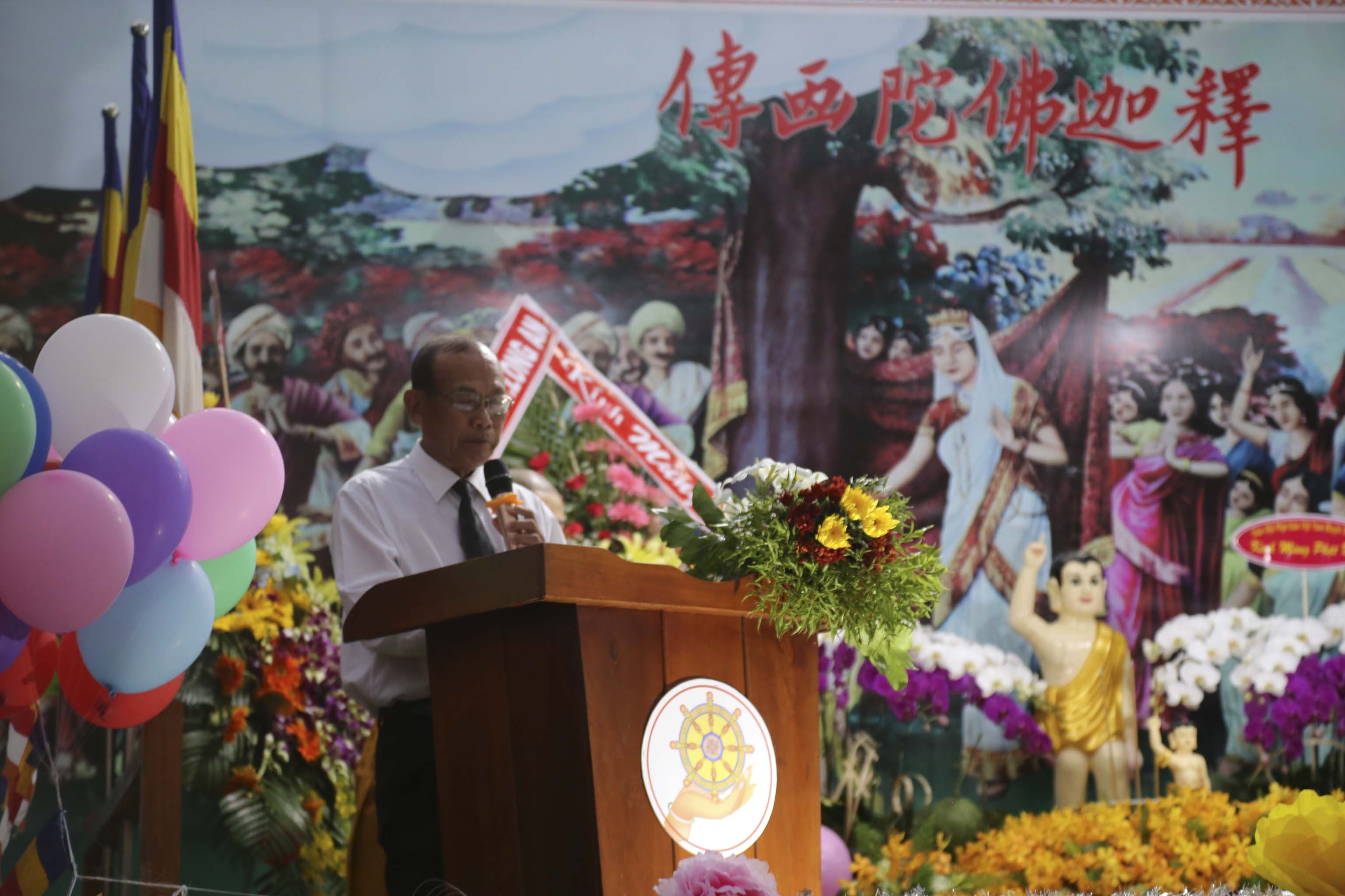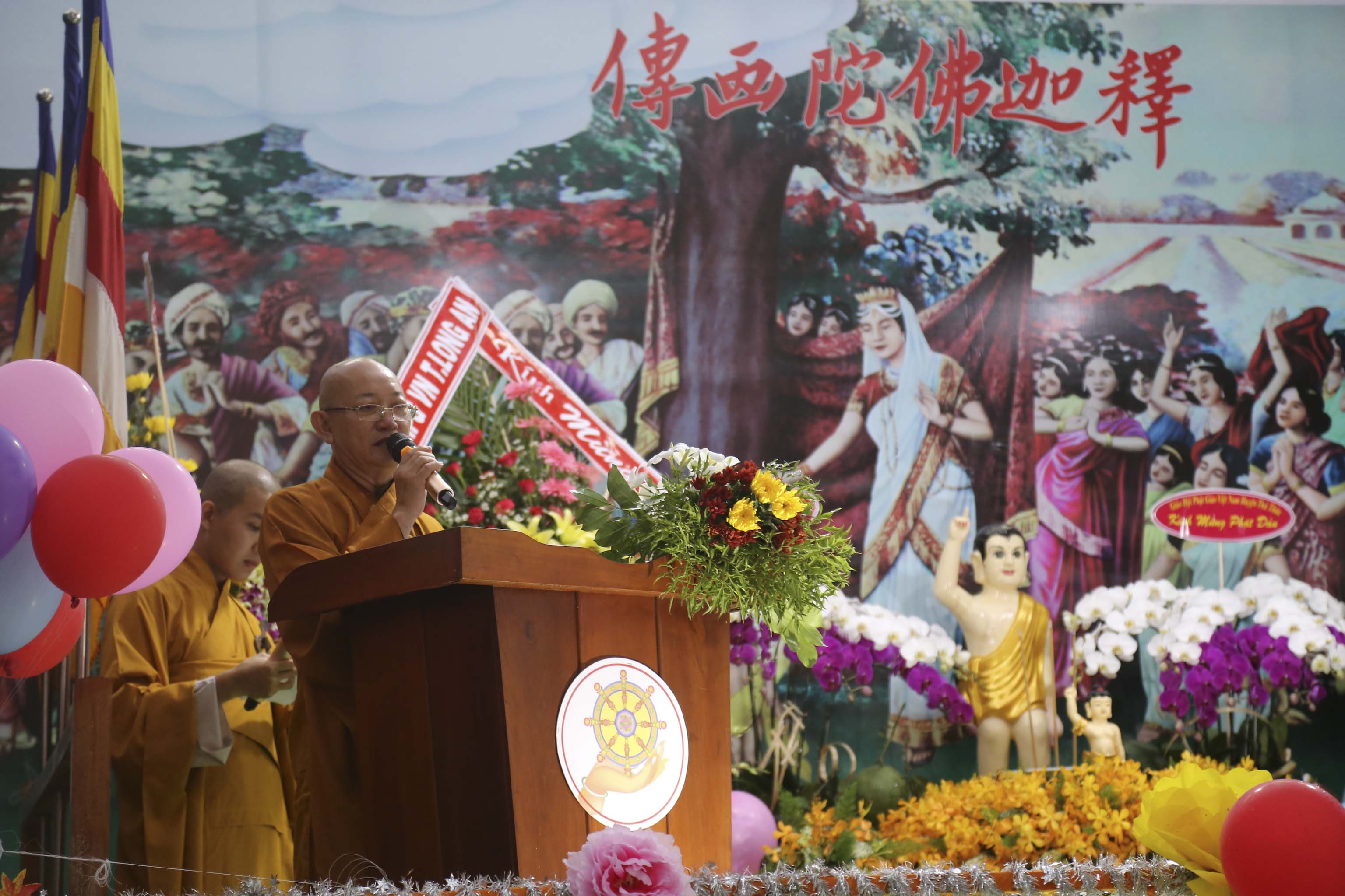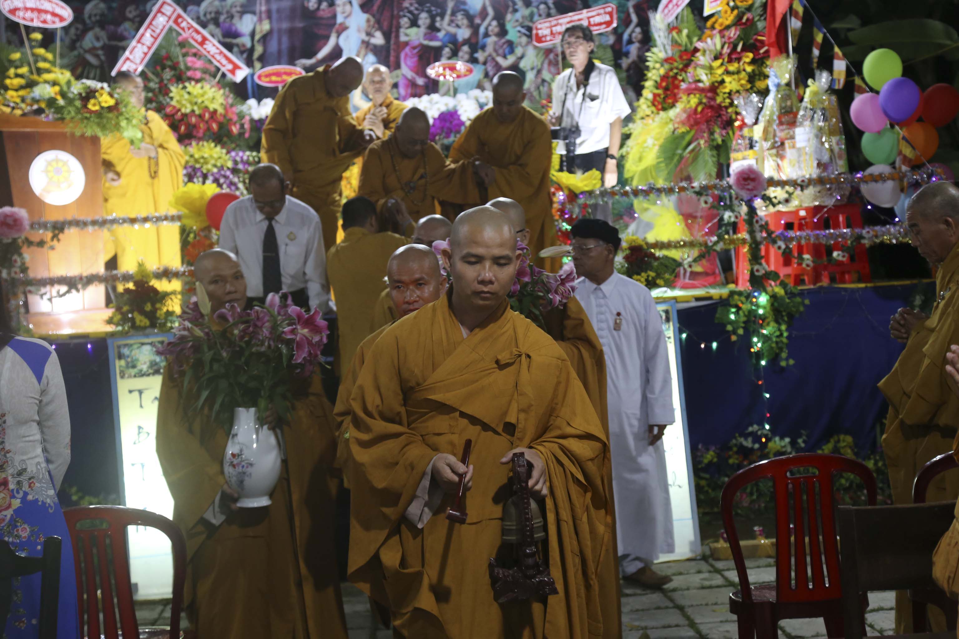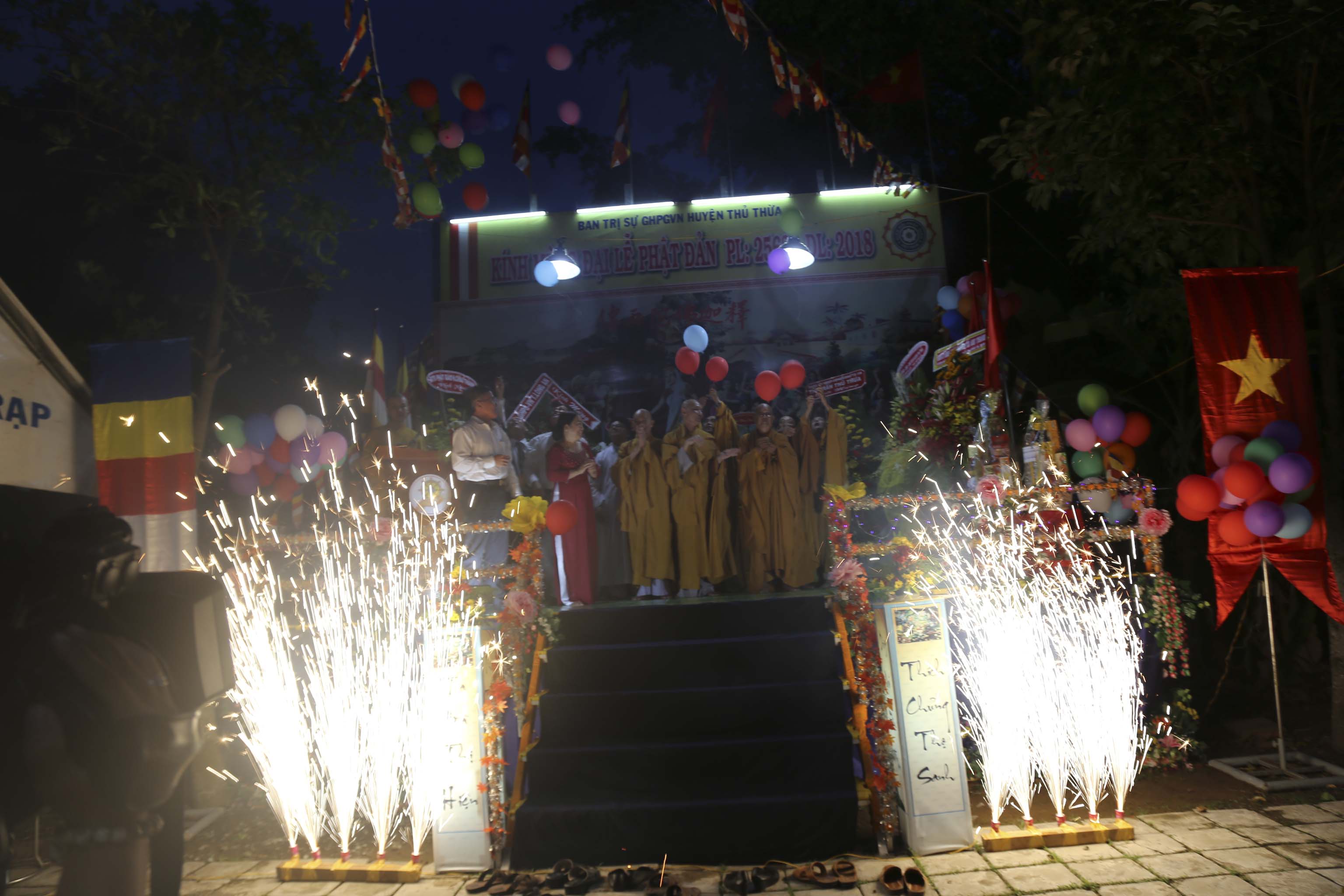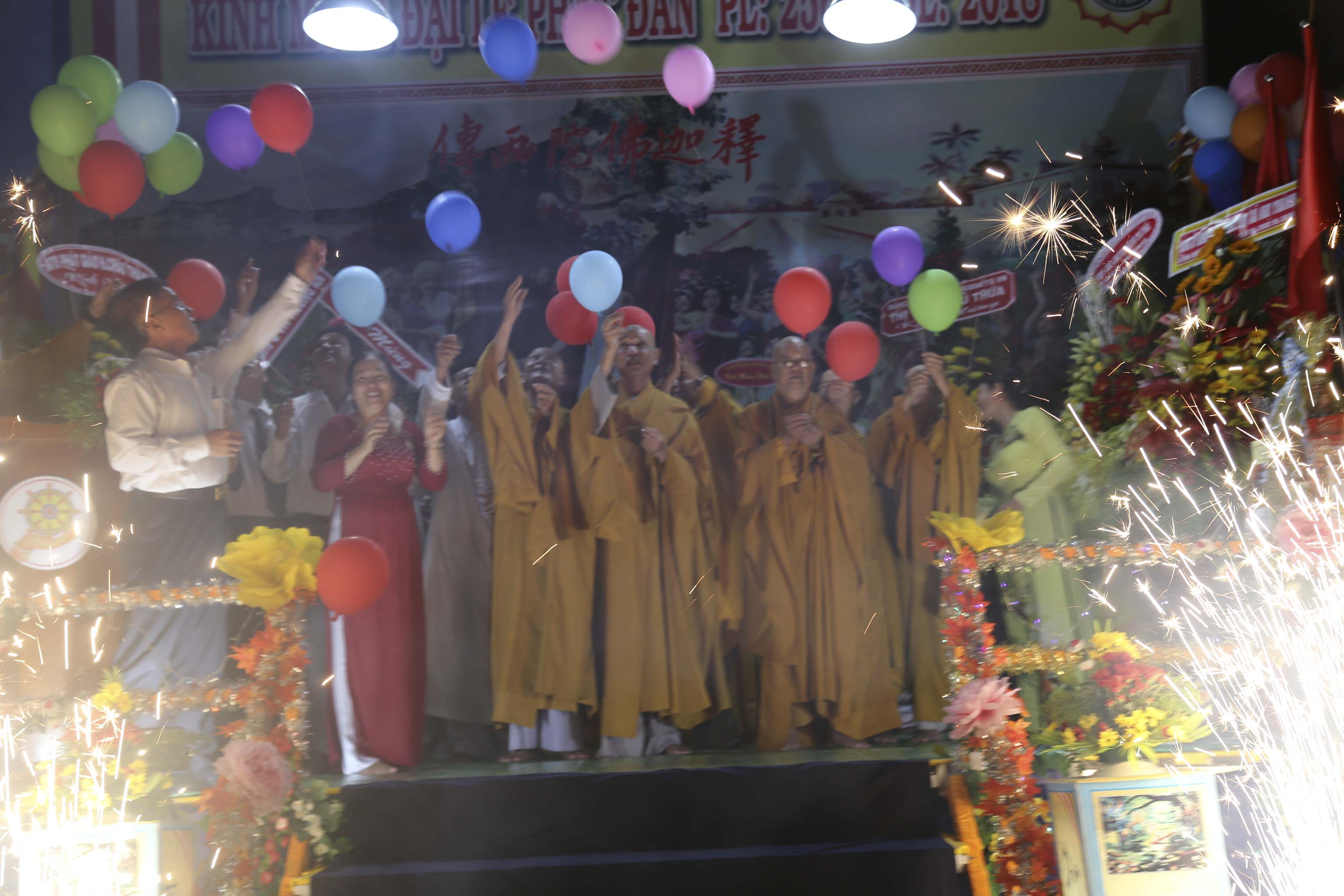 Mừng ngày Đức Từ phụ Đản sanh, hướng nguyện cầu đất nước thanh bình, trăm họ nhà nhà ấm no hạnh phúc, Ban tổ chức kính thỉnh chư Tôn đức Giáo phẩm chứng minh cùng quý vị quan khách đồng thả bong bóng cầu nguyện. Mỗi chiếc bong bóng bay trong không trung mang theo lời hứa hẹn vạn sự đều hanh thông tốt đẹp.