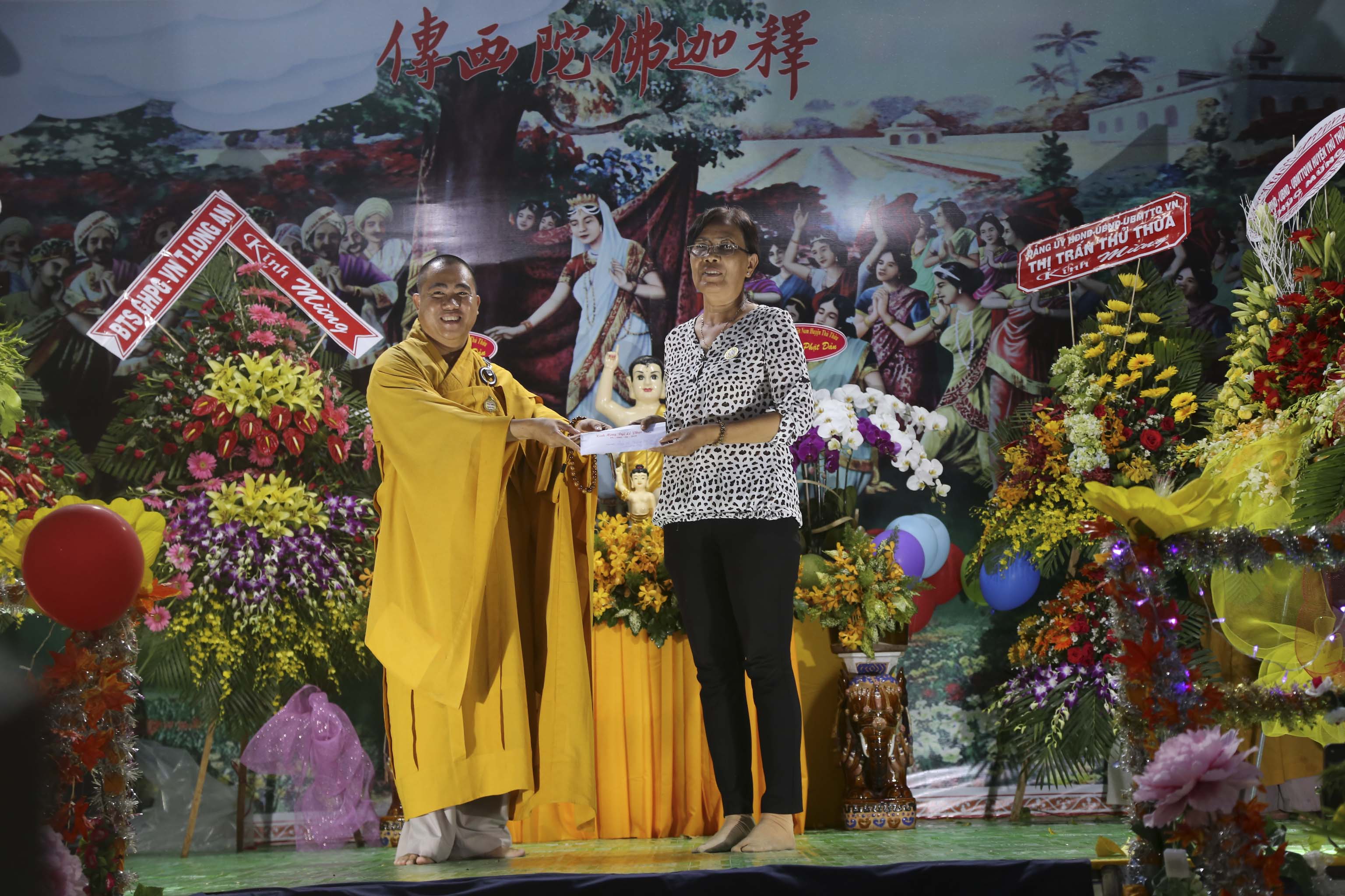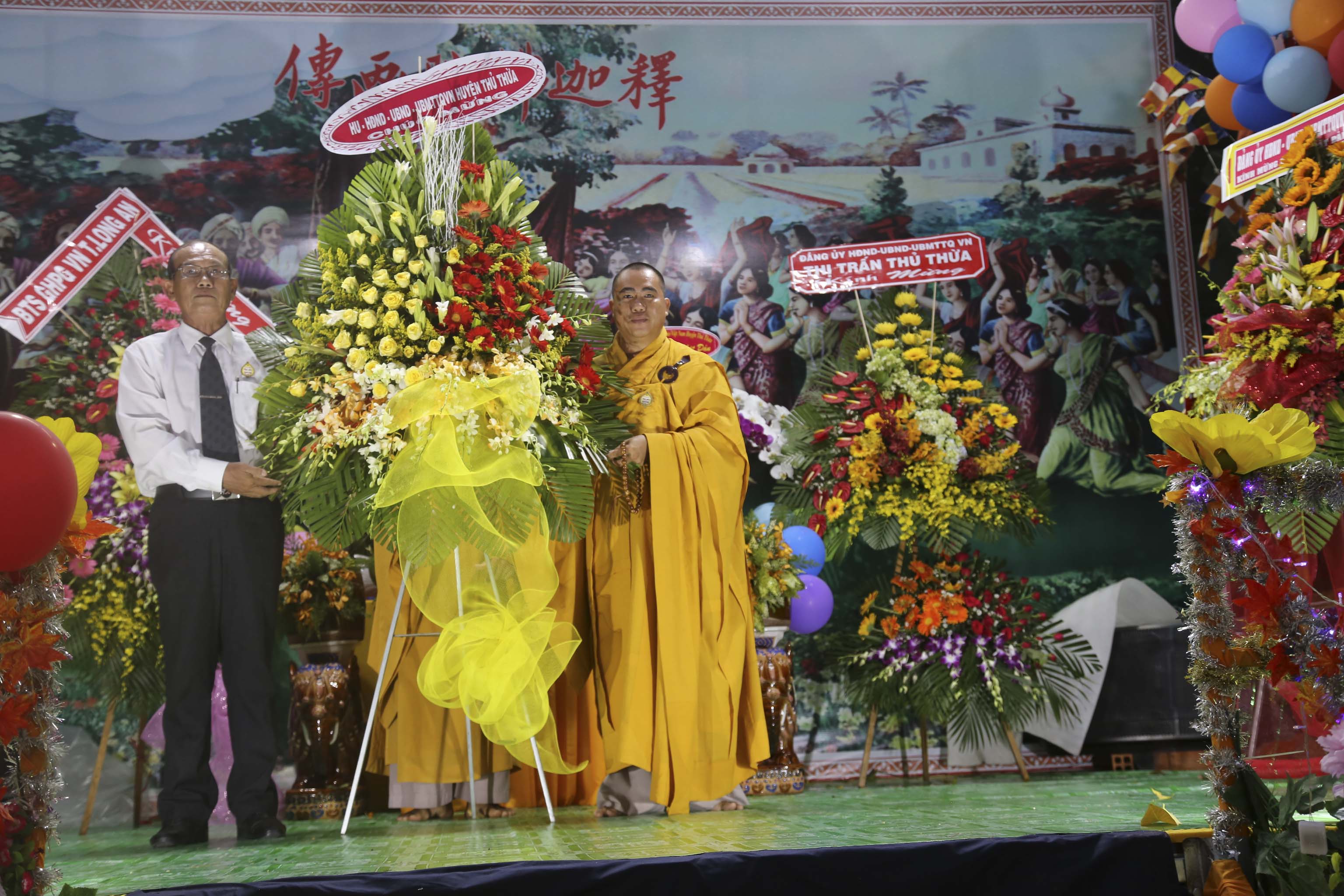 Chào mừng buổi lễ thiêng liêng đầy ý nghĩa nhân văn này, Quý vị lãnh đạo Tỉnh ủy – Hội đồng nhân dân- Ủy ban Nhân dân- Ủy ban Mặt trận Tổ quốc VN tỉnh Long An cũng đã kính thư chúc mừng Đại lễ, chia sẻ niềm vui cùng chư Tăng Ni Ban Trị sự Phật giáo huyện Thủ Thừa, do Ông Nguyễn Văn Thắm tuyên đọc.